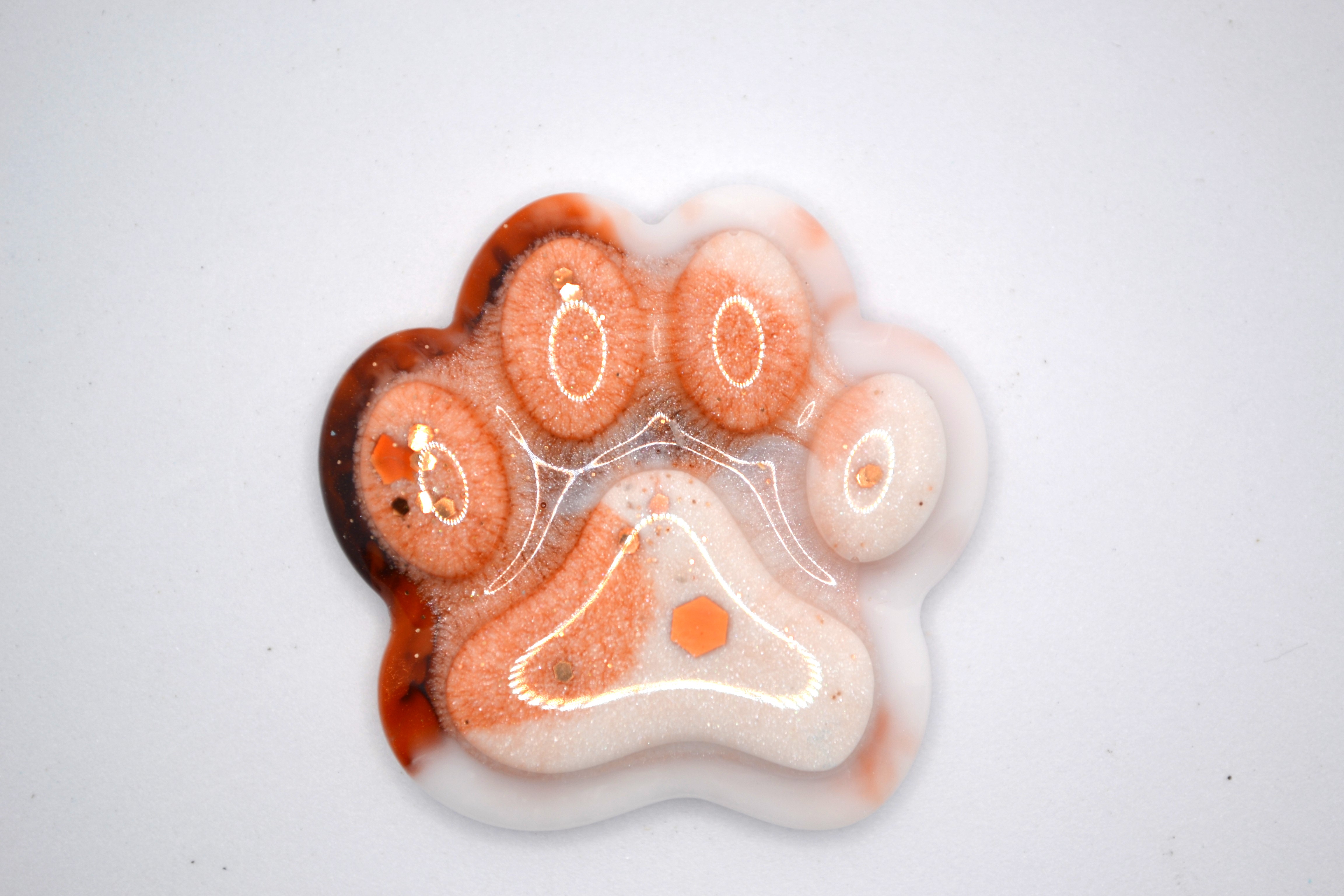 Nøglering, pote, brun og hvid med glitter