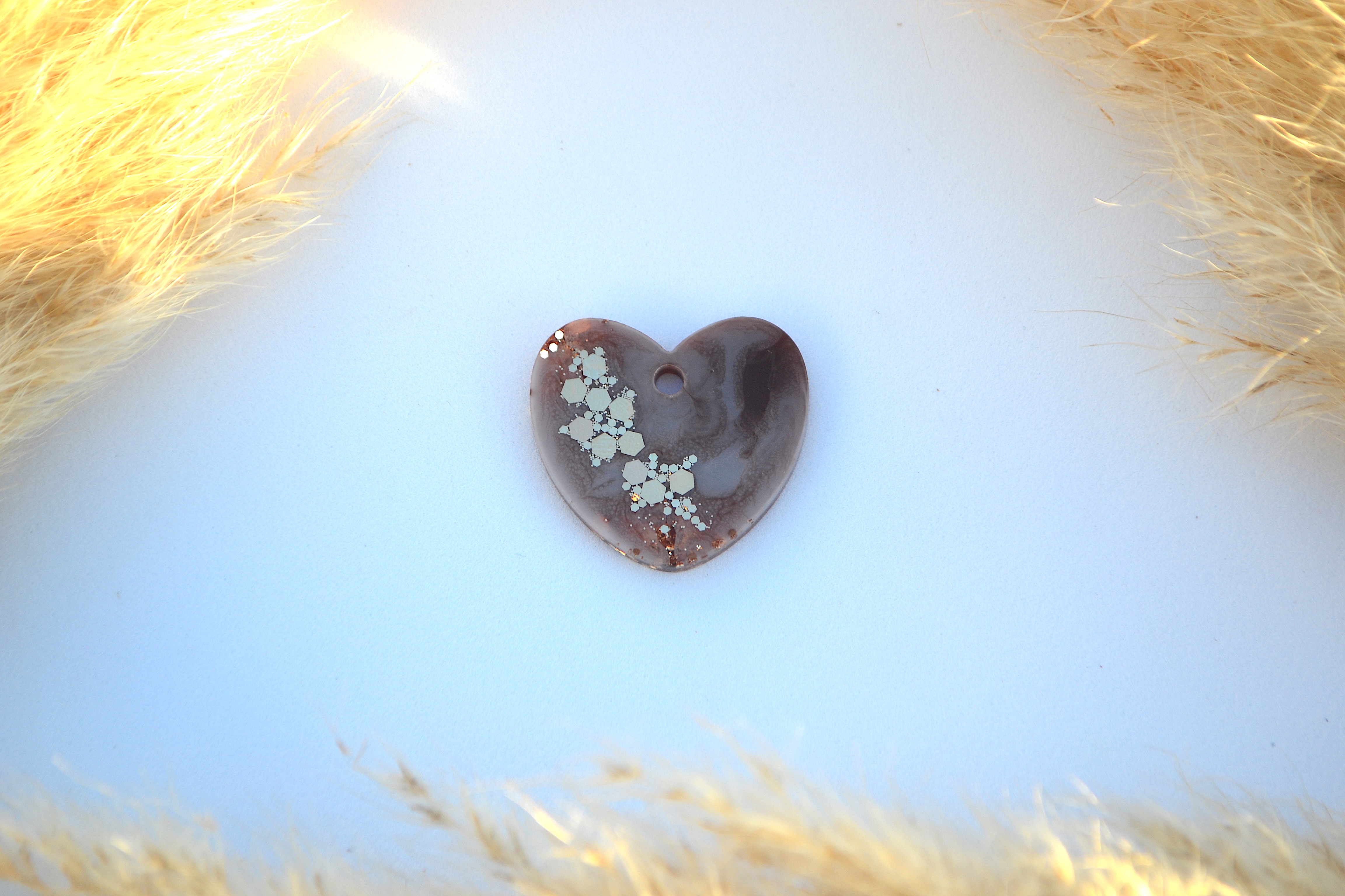 Hundetegn, stort hjerte, brun, hvid og guldflager