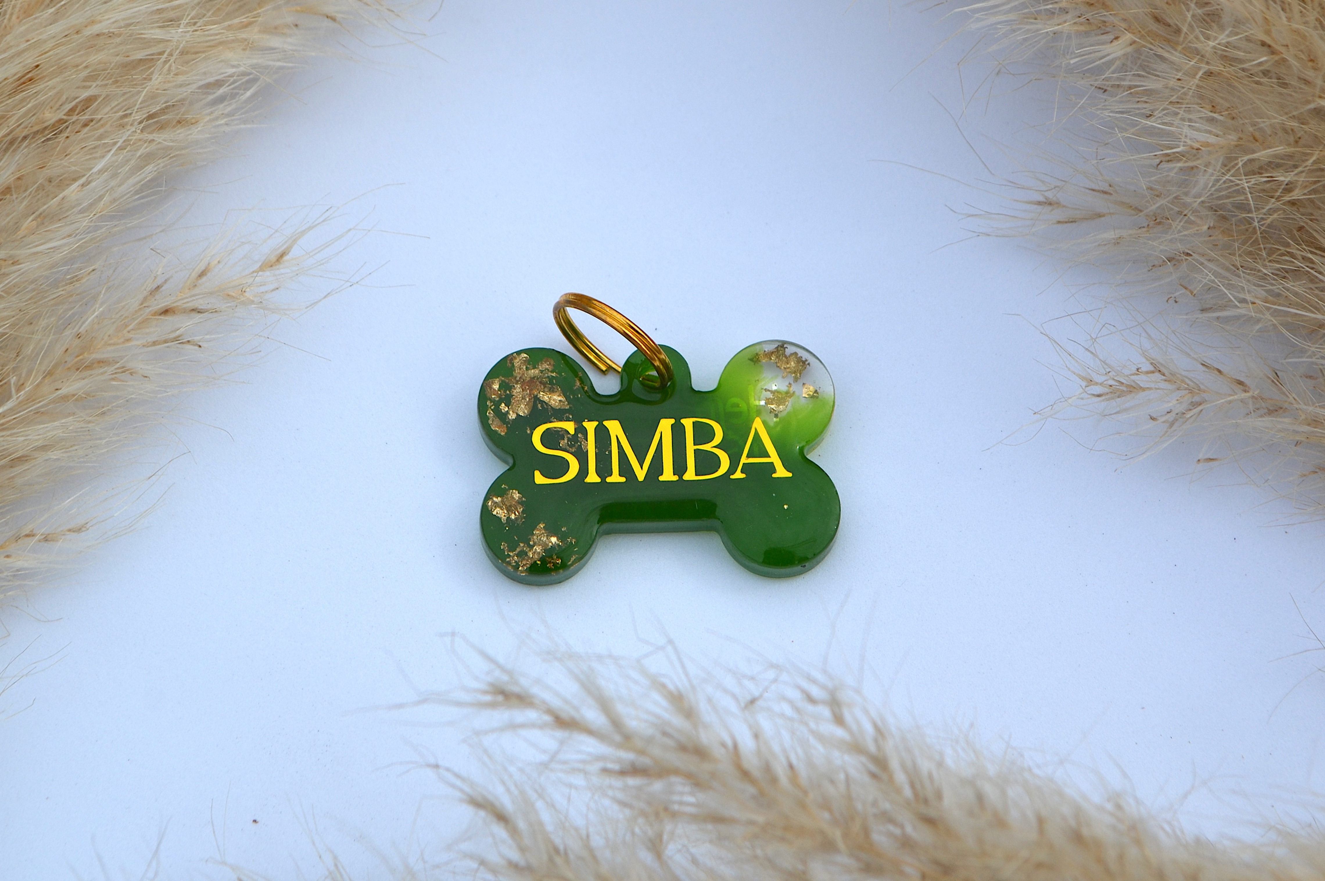 🔹 De fleste vælger at få hundens navn på forsiden – og ejers navn, adresse og telefonnummer på bagsiden.