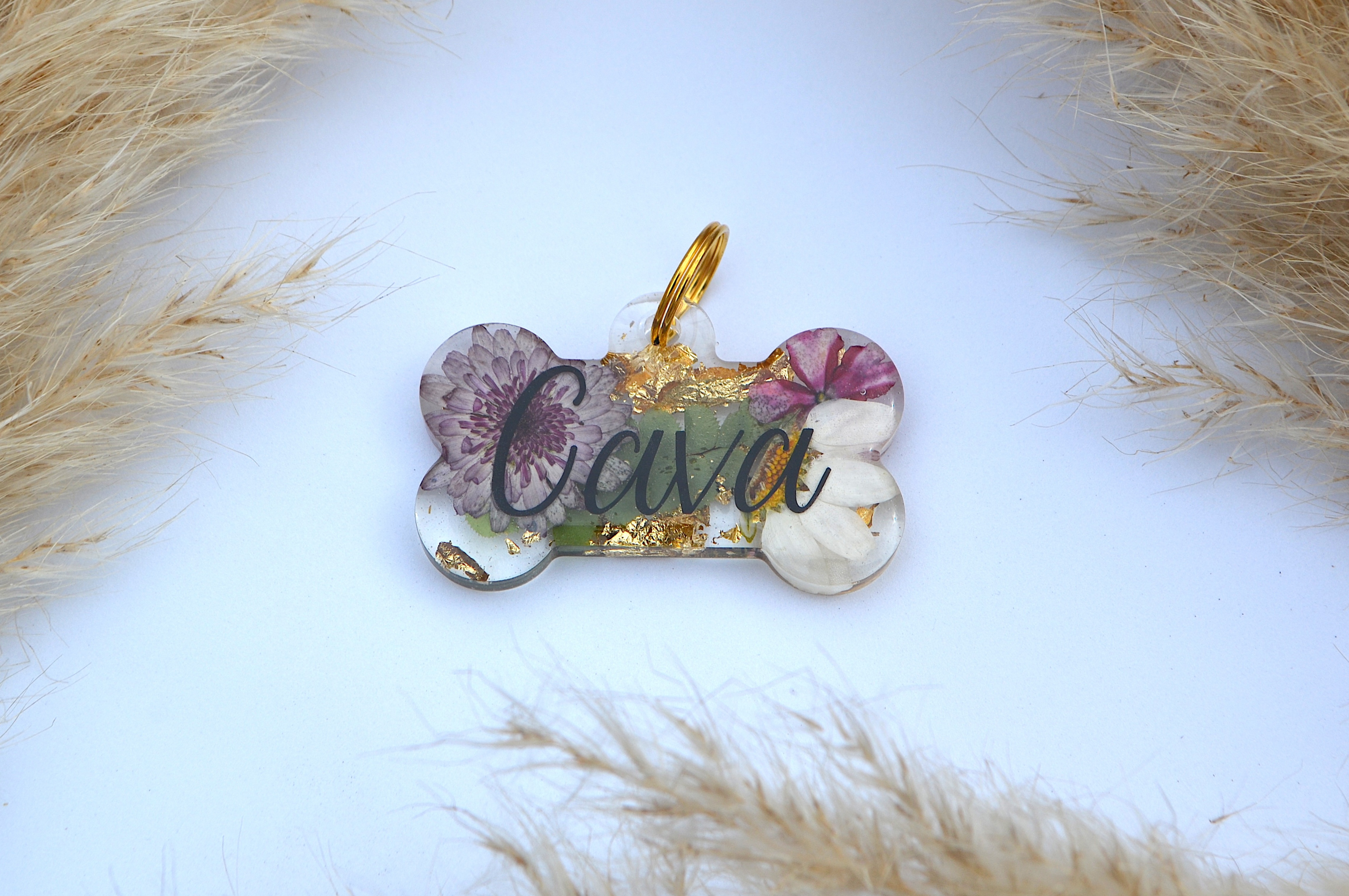 🔹 De fleste vælger at få hundens navn på forsiden – og ejers navn, adresse og telefonnummer på bagsiden.