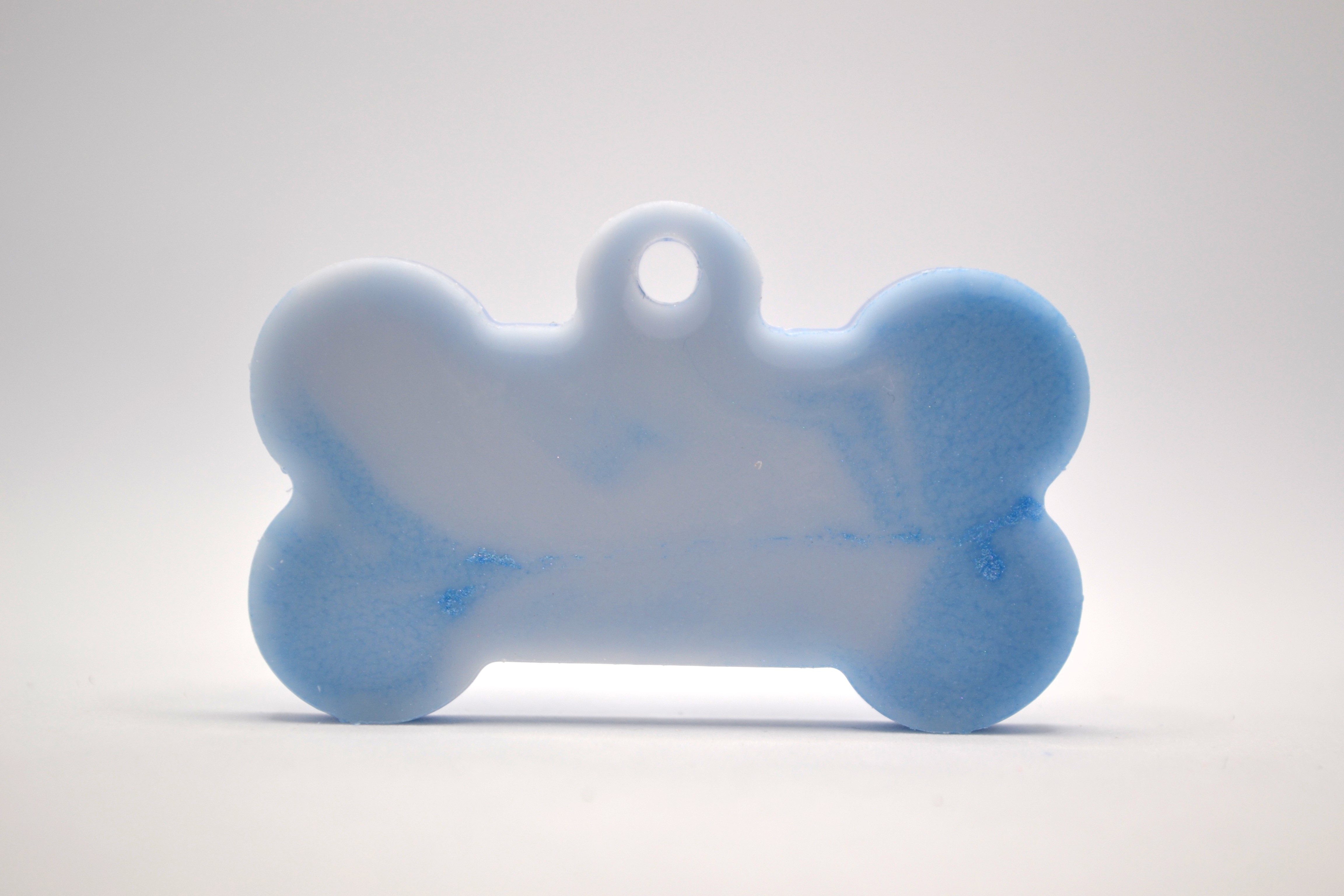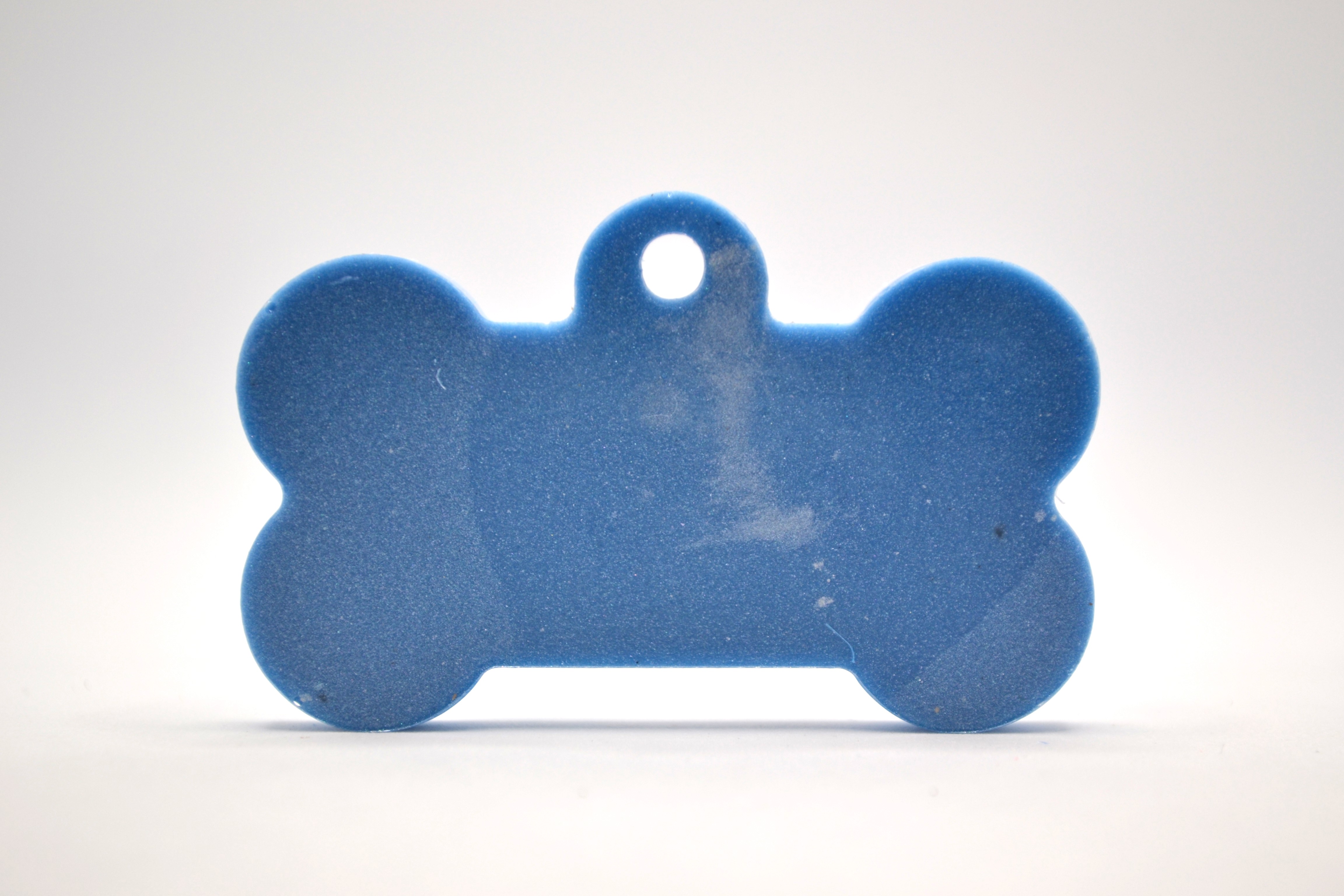 🔹 De fleste vælger at få hundens navn på forsiden – og ejers navn, adresse og telefonnummer på bagsiden.