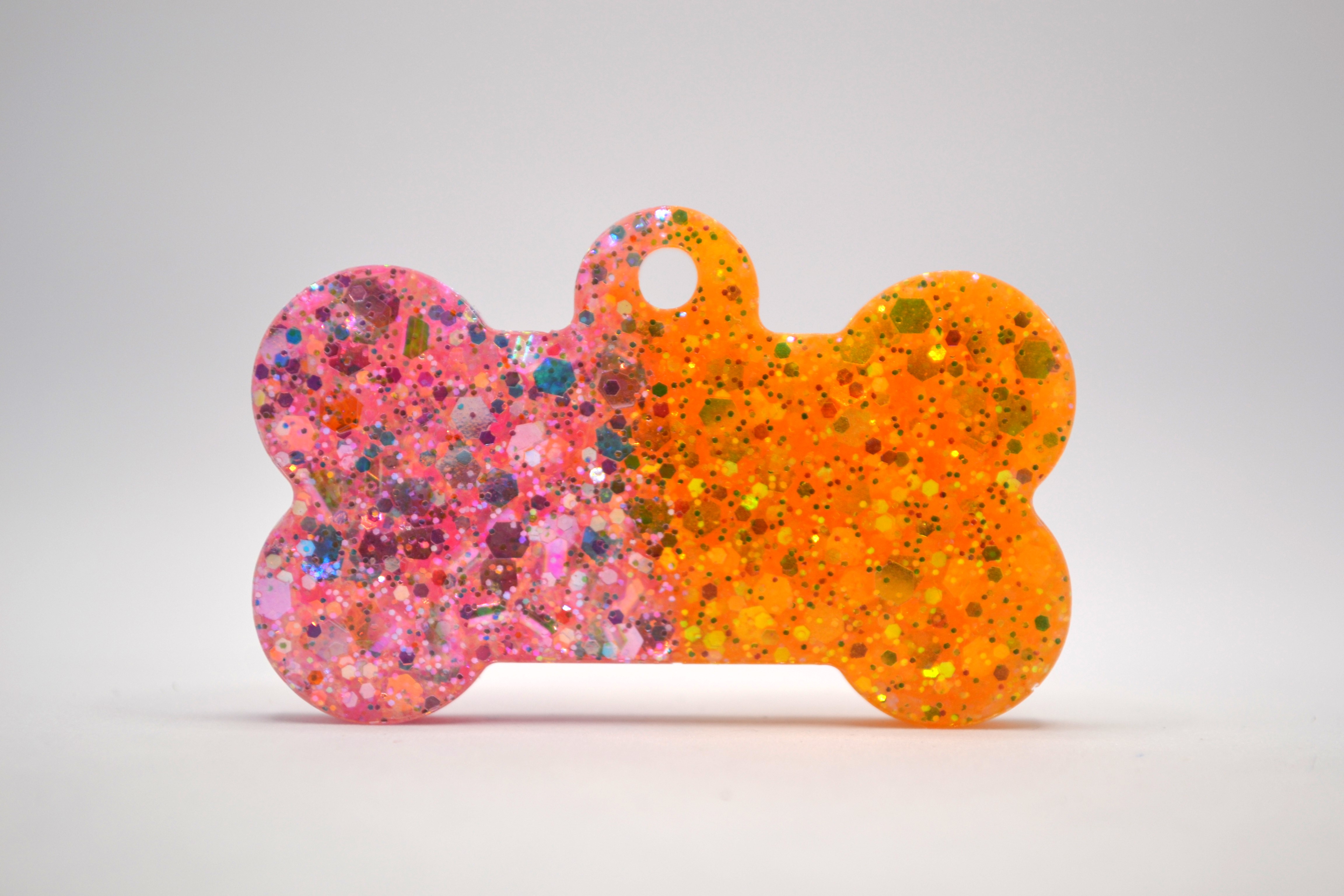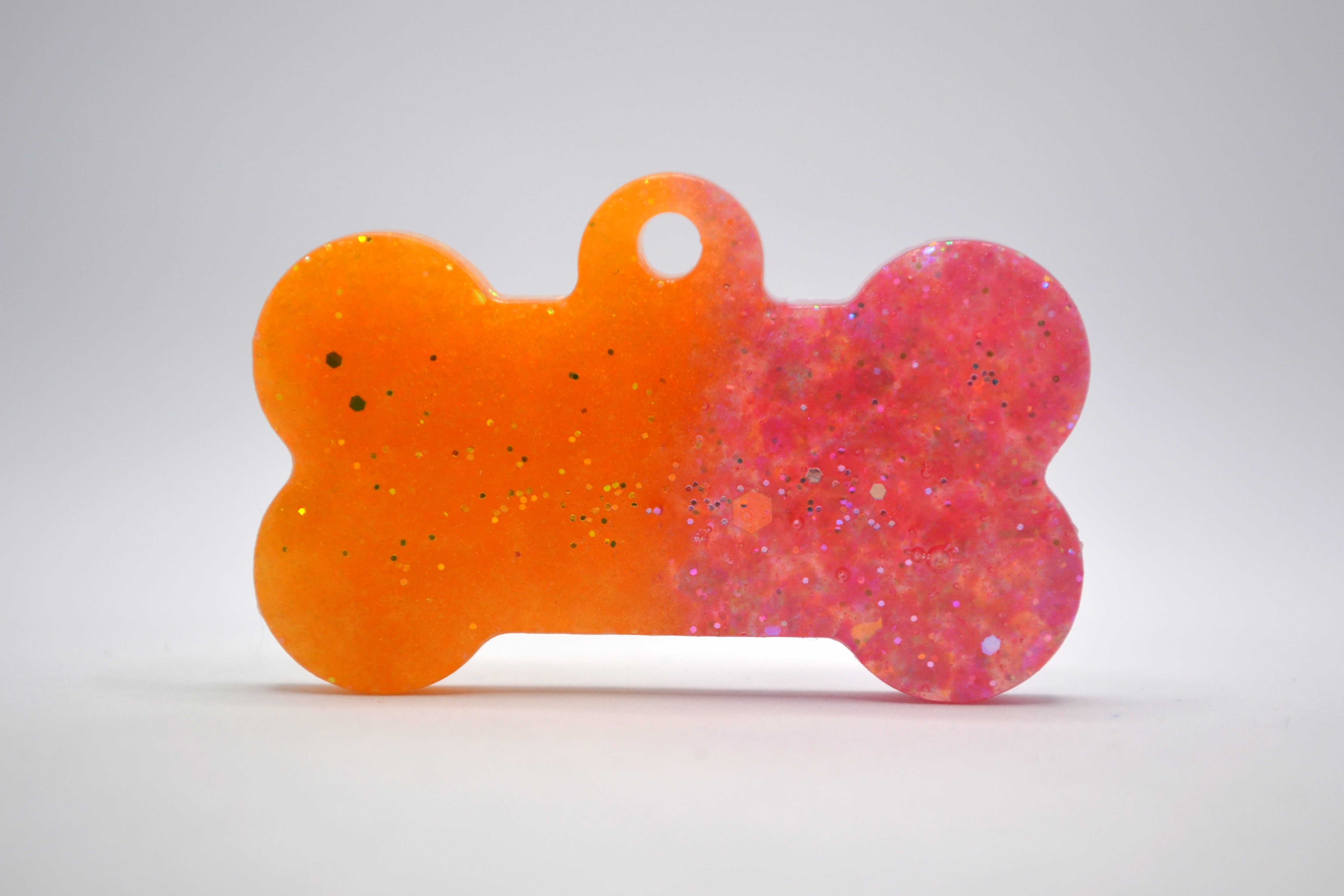 🔹 De fleste vælger at få hundens navn på forsiden – og ejers navn, adresse og telefonnummer på bagsiden.