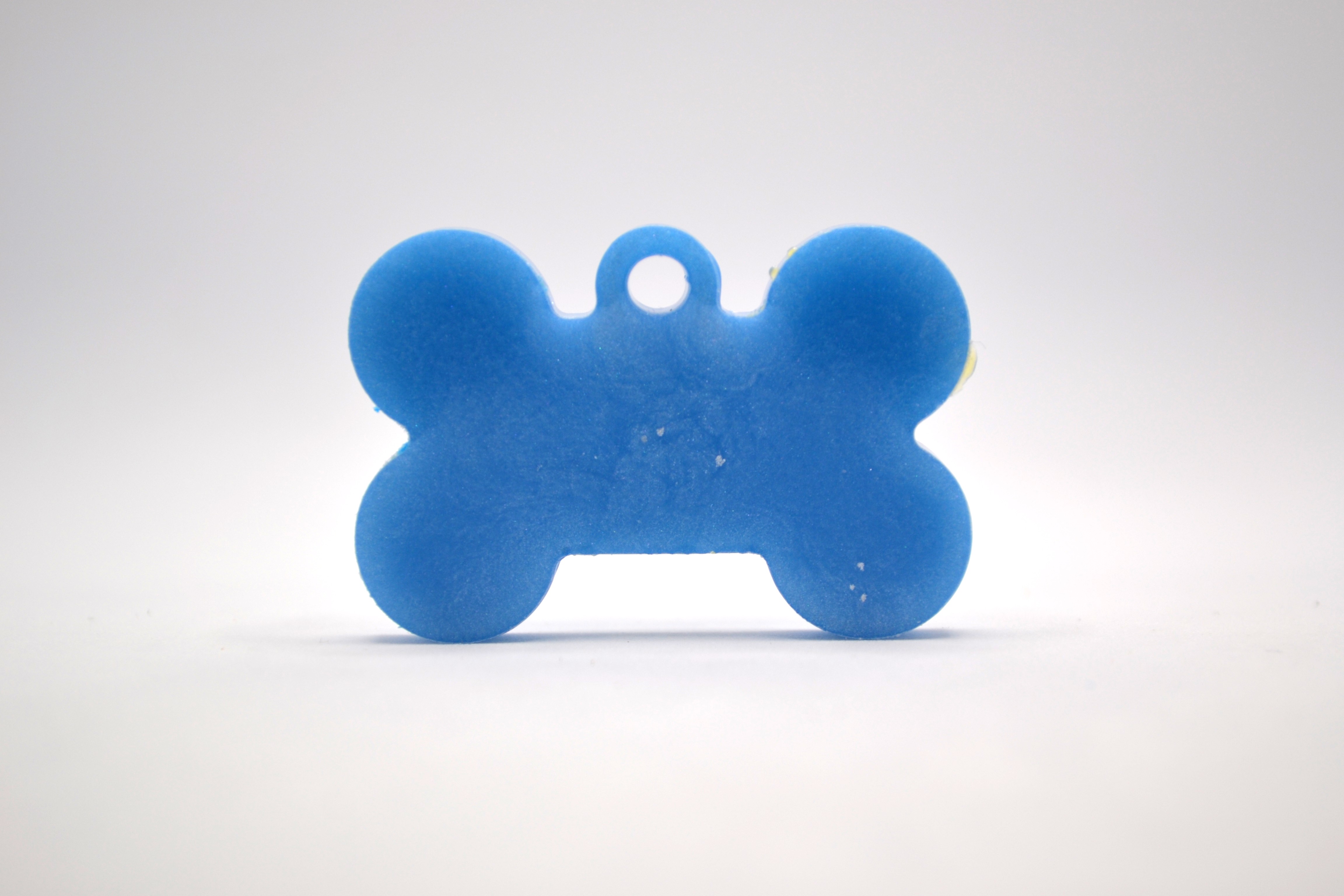 🔹 De fleste vælger at få hundens navn på forsiden – og ejers navn, adresse og telefonnummer på bagsiden.