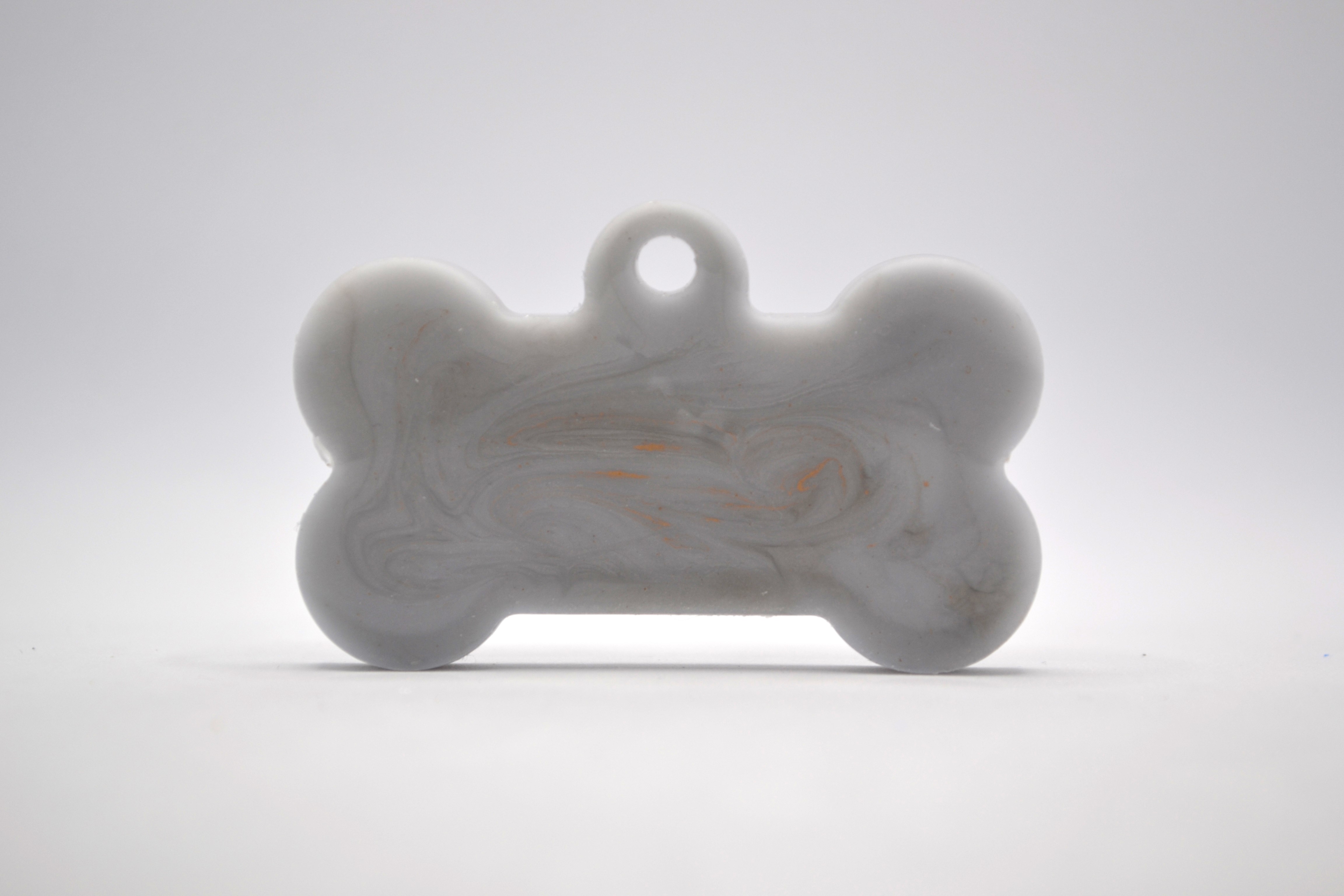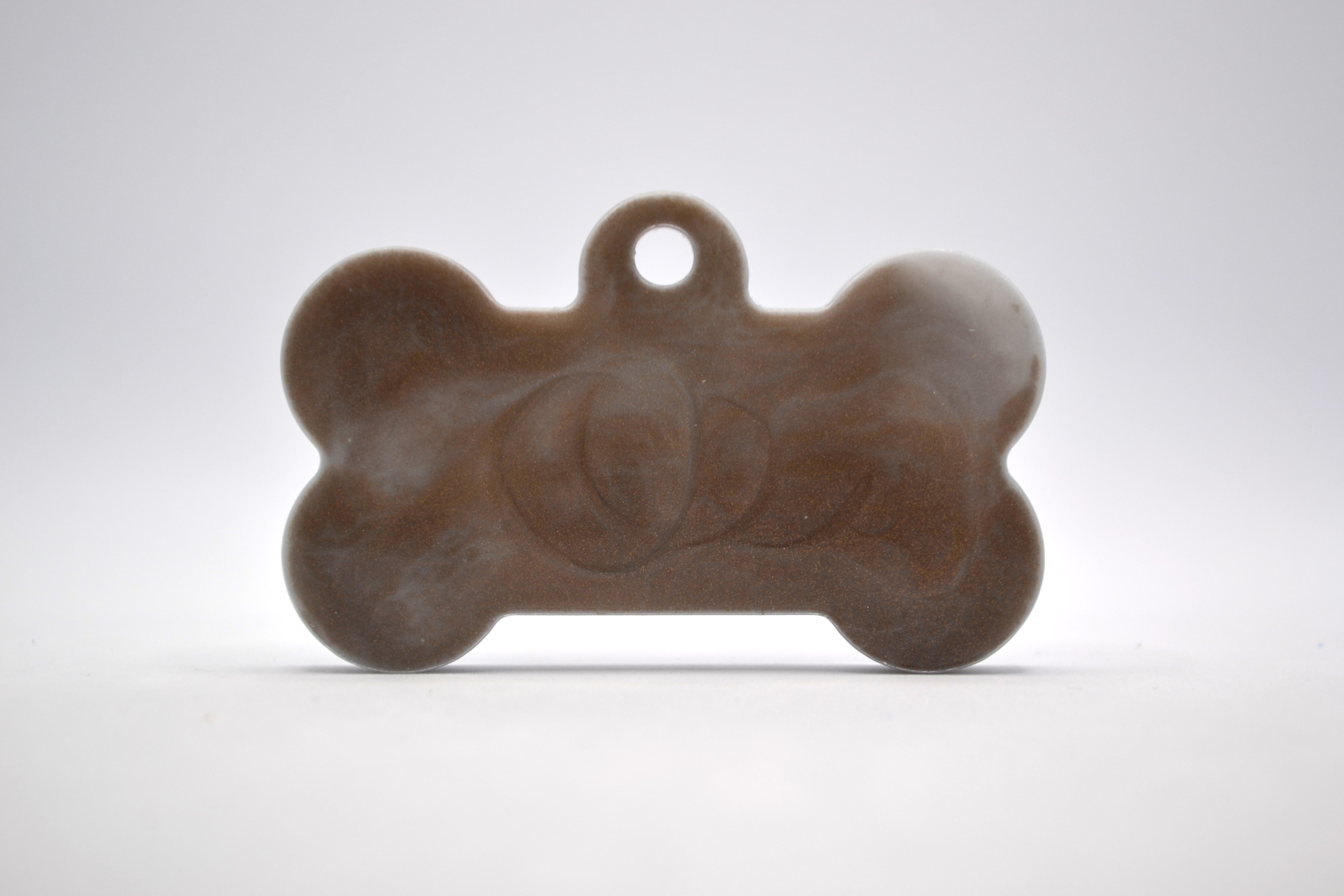 🔹 De fleste vælger at få hundens navn på forsiden – og ejers navn, adresse og telefonnummer på bagsiden.
