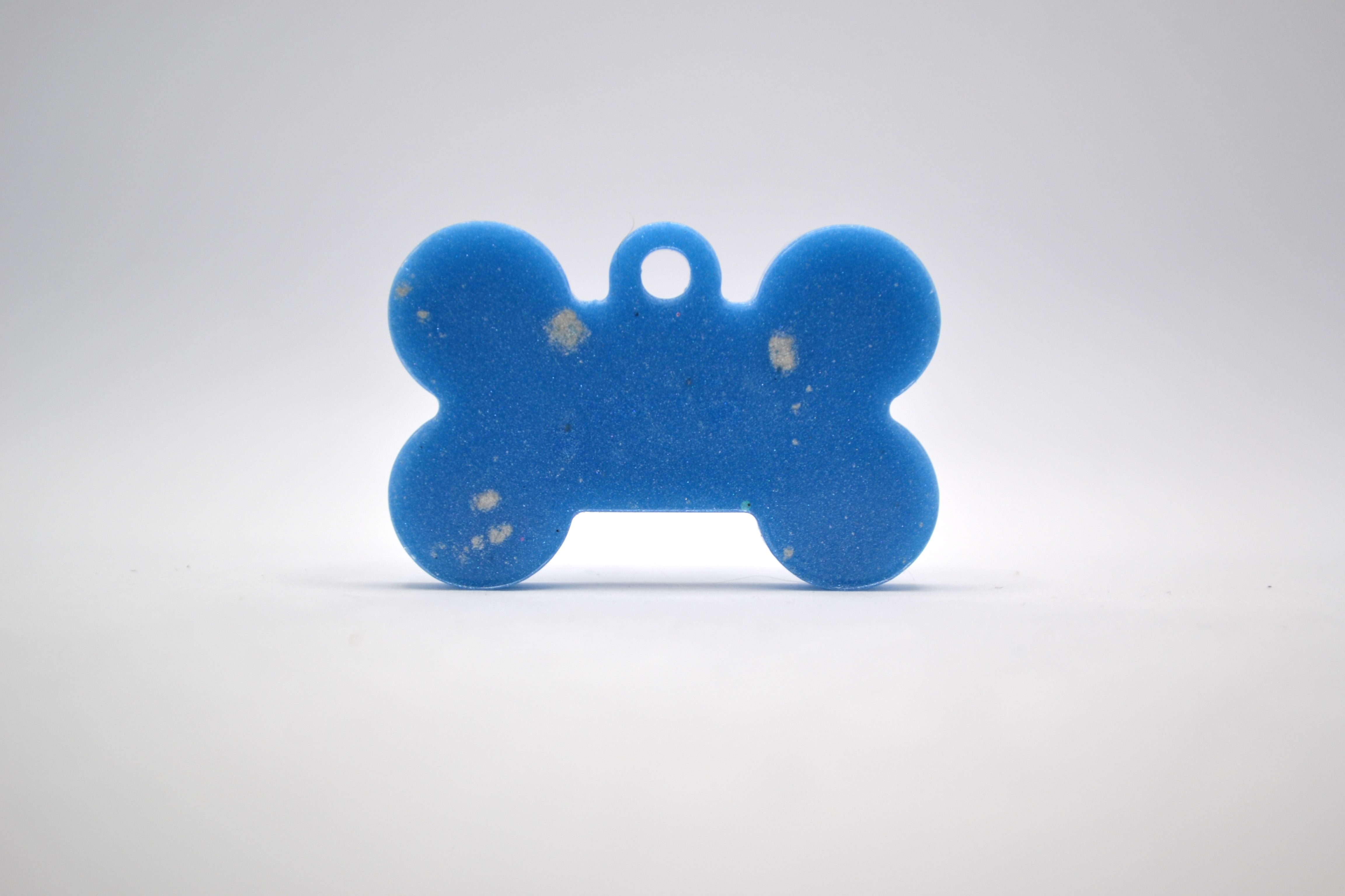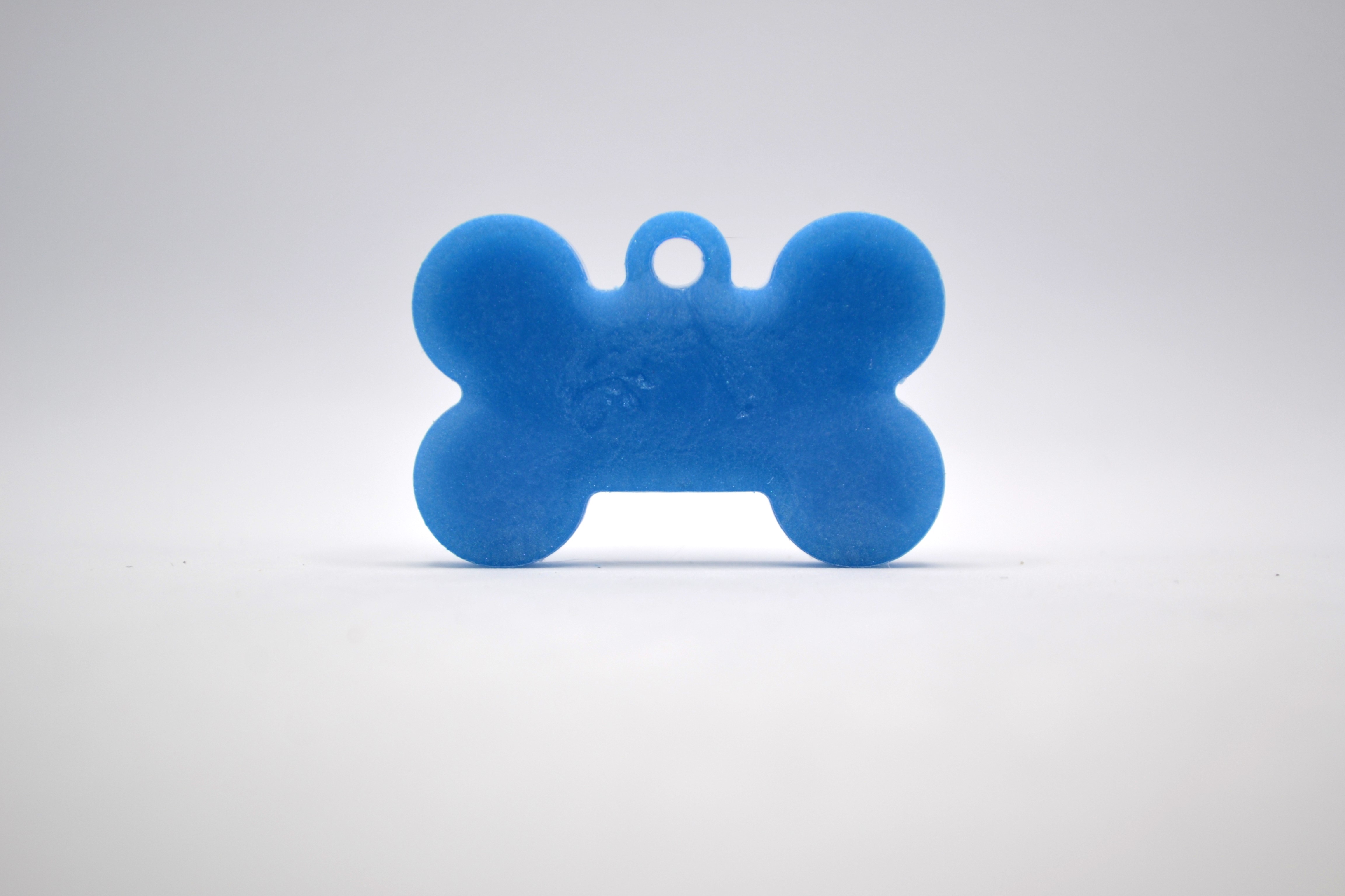🔹 De fleste vælger at få hundens navn på forsiden – og ejers navn, adresse og telefonnummer på bagsiden.