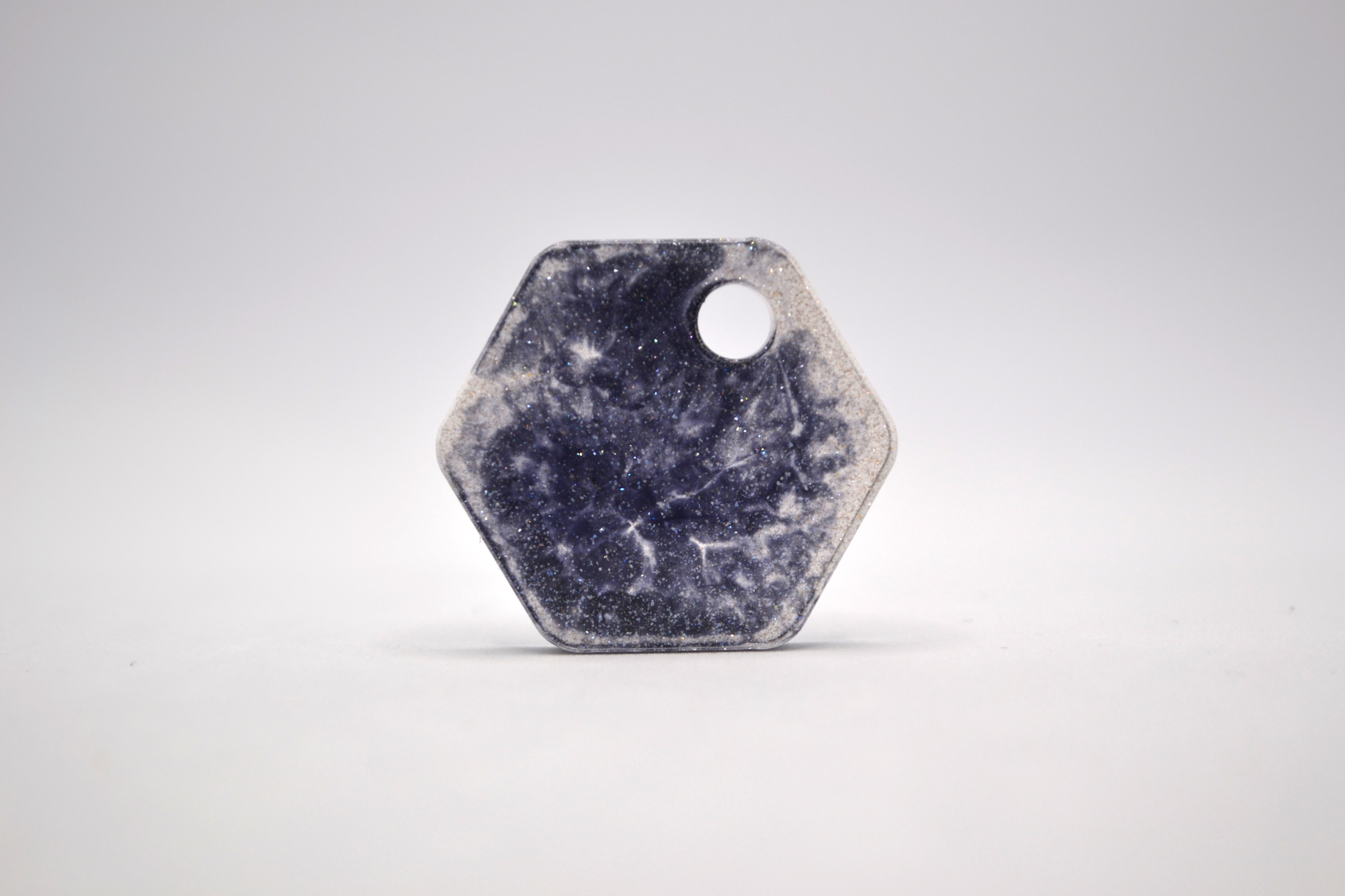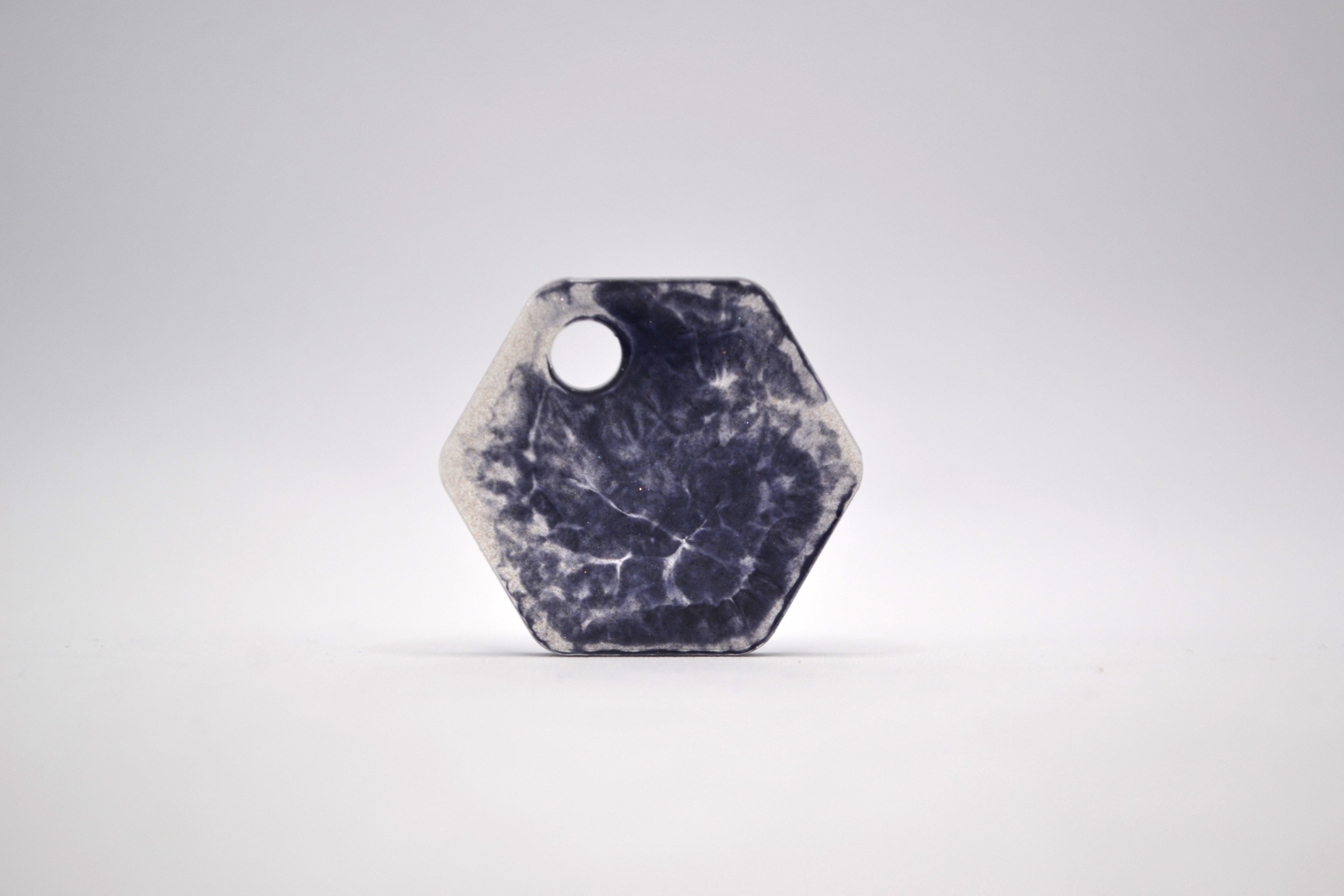 Hundetegn, lille hexagon, grå med hvid glimmer