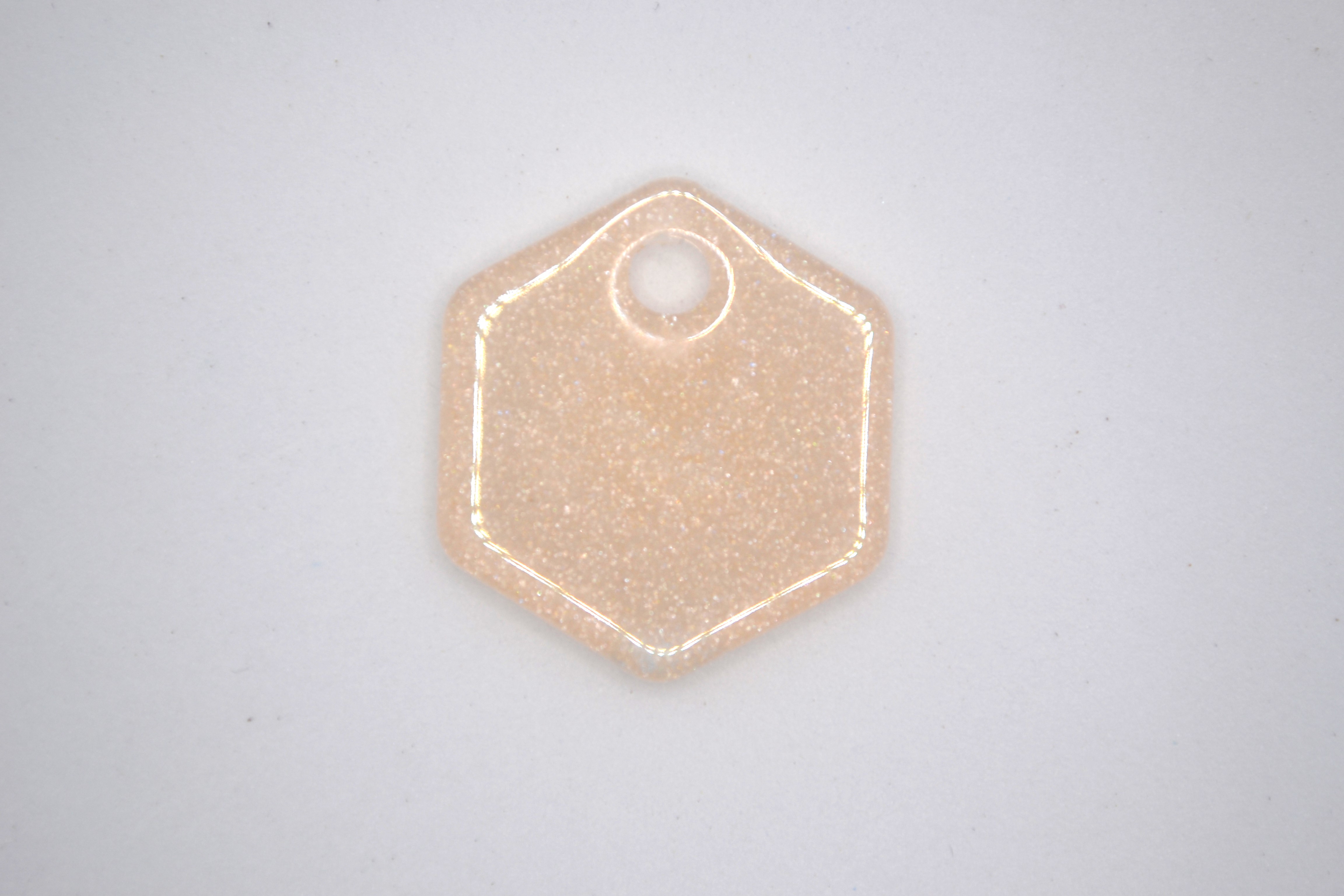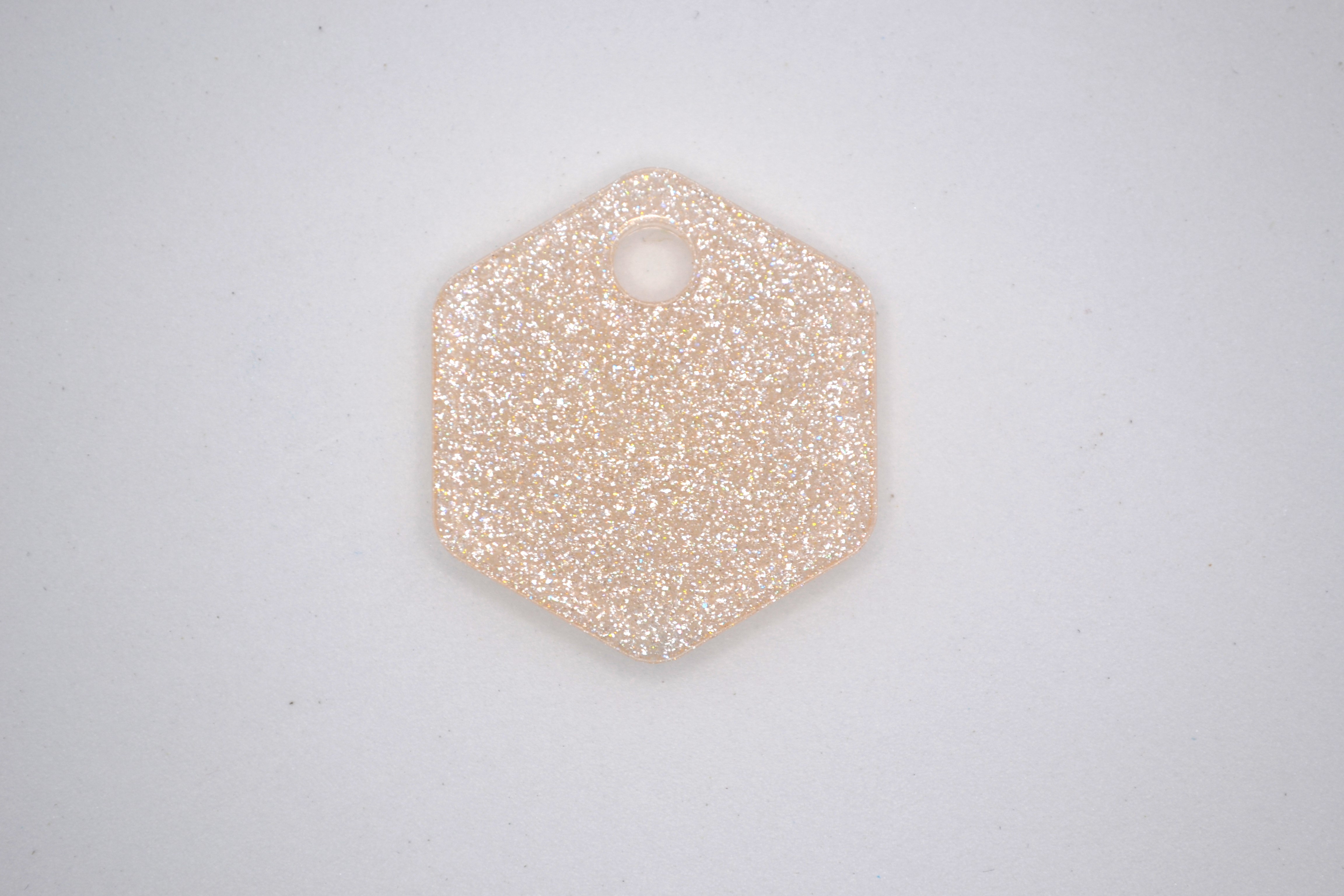 Hundetegn, lille hexagon, beige med hvid glitter
