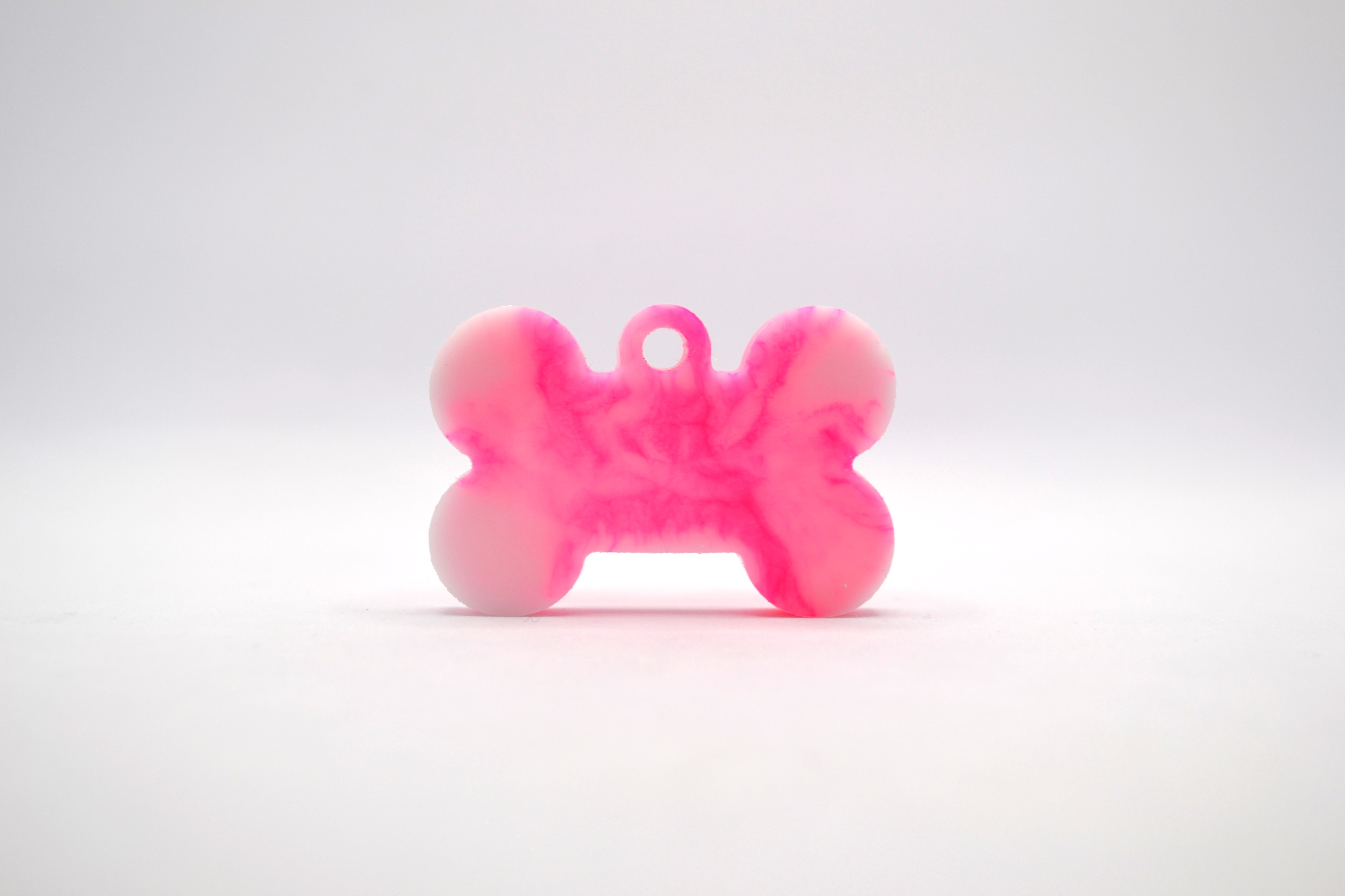 🔹 De fleste vælger at få hundens navn på forsiden – og ejers navn, adresse og telefonnummer på bagsiden.