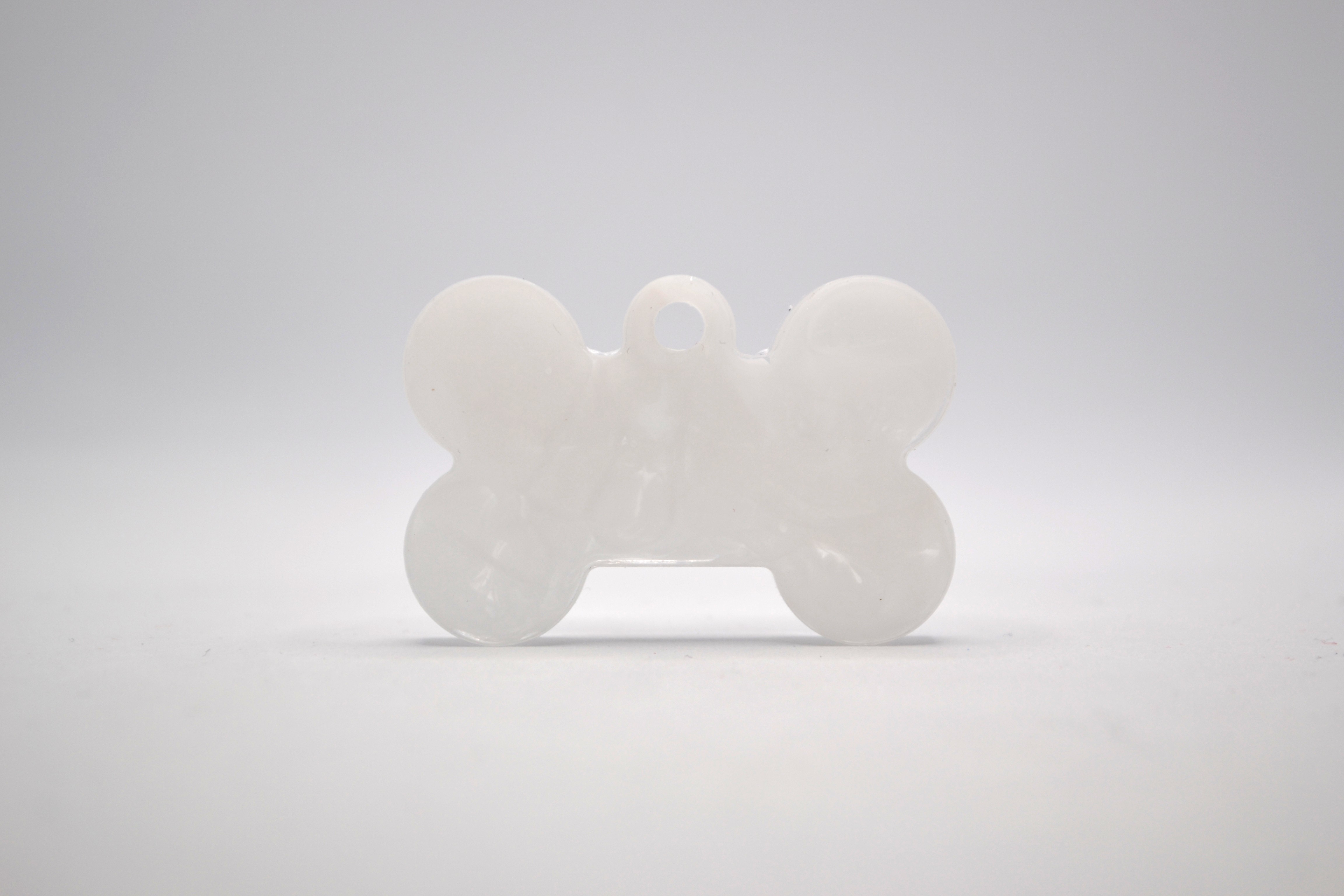 🔹 De fleste vælger at få hundens navn på forsiden – og ejers navn, adresse og telefonnummer på bagsiden.