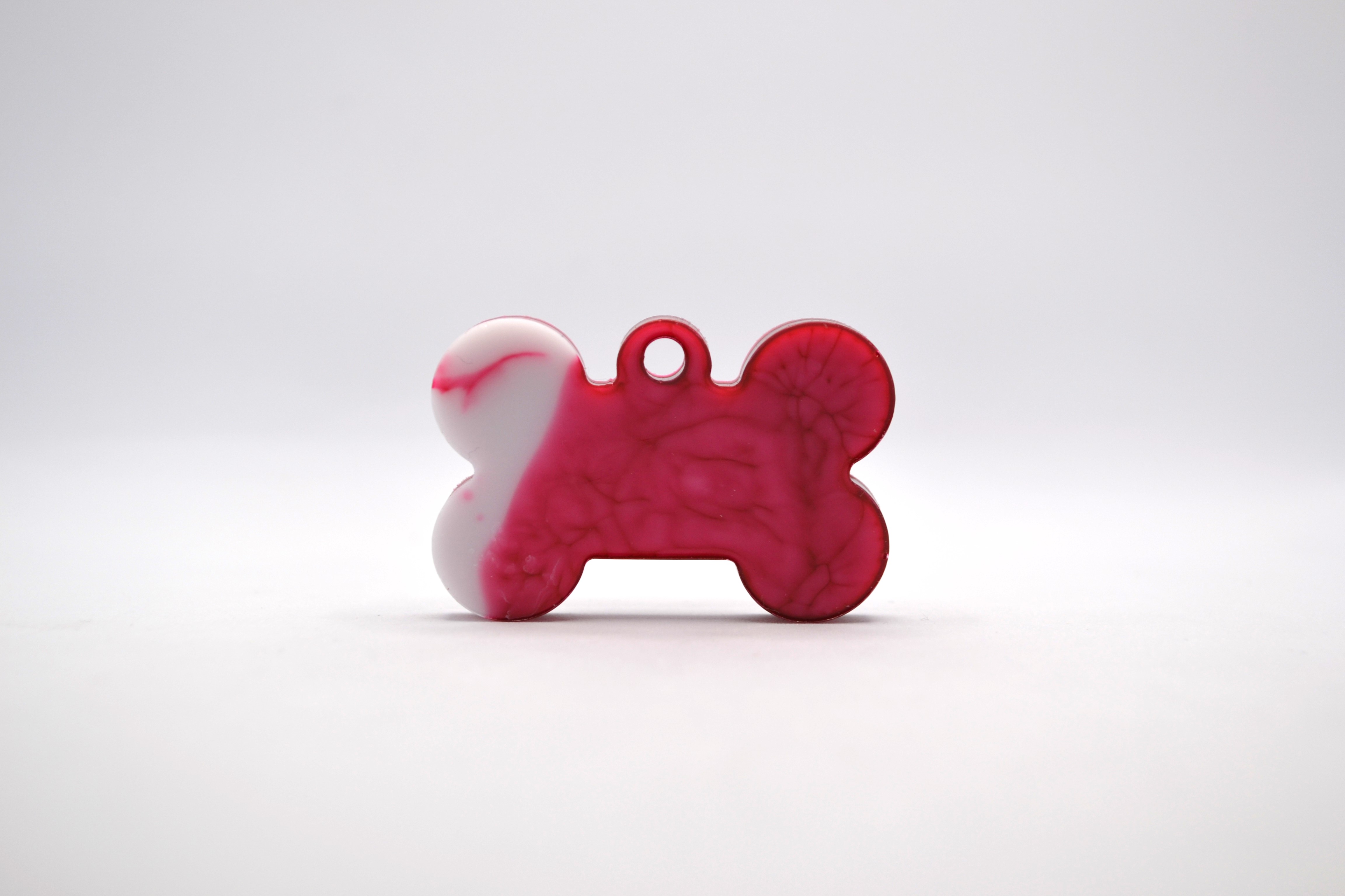 🔹 De fleste vælger at få hundens navn på forsiden – og ejers navn, adresse og telefonnummer på bagsiden.
