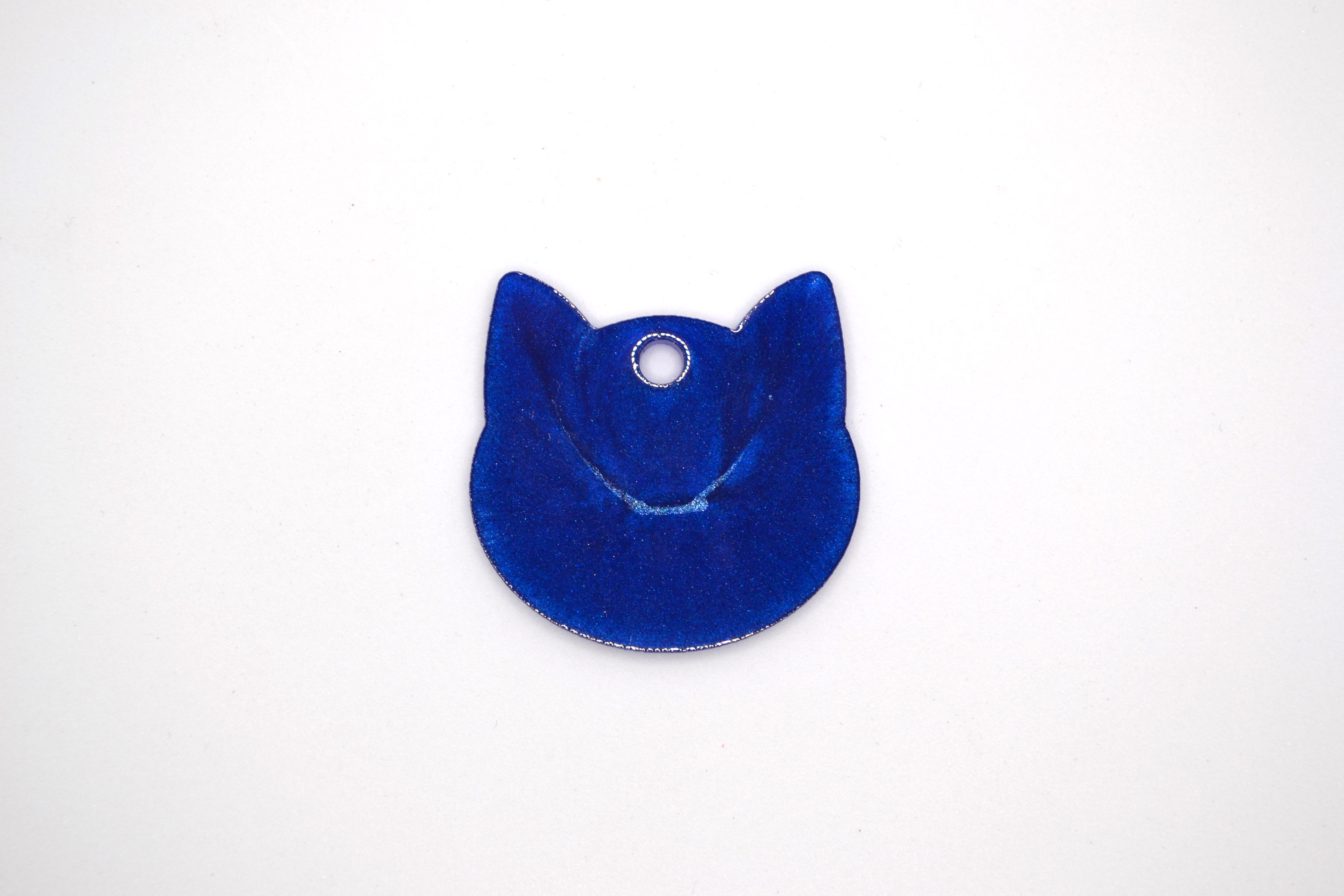 Hundetegn, stort kattehoved, mørk blå shimmer