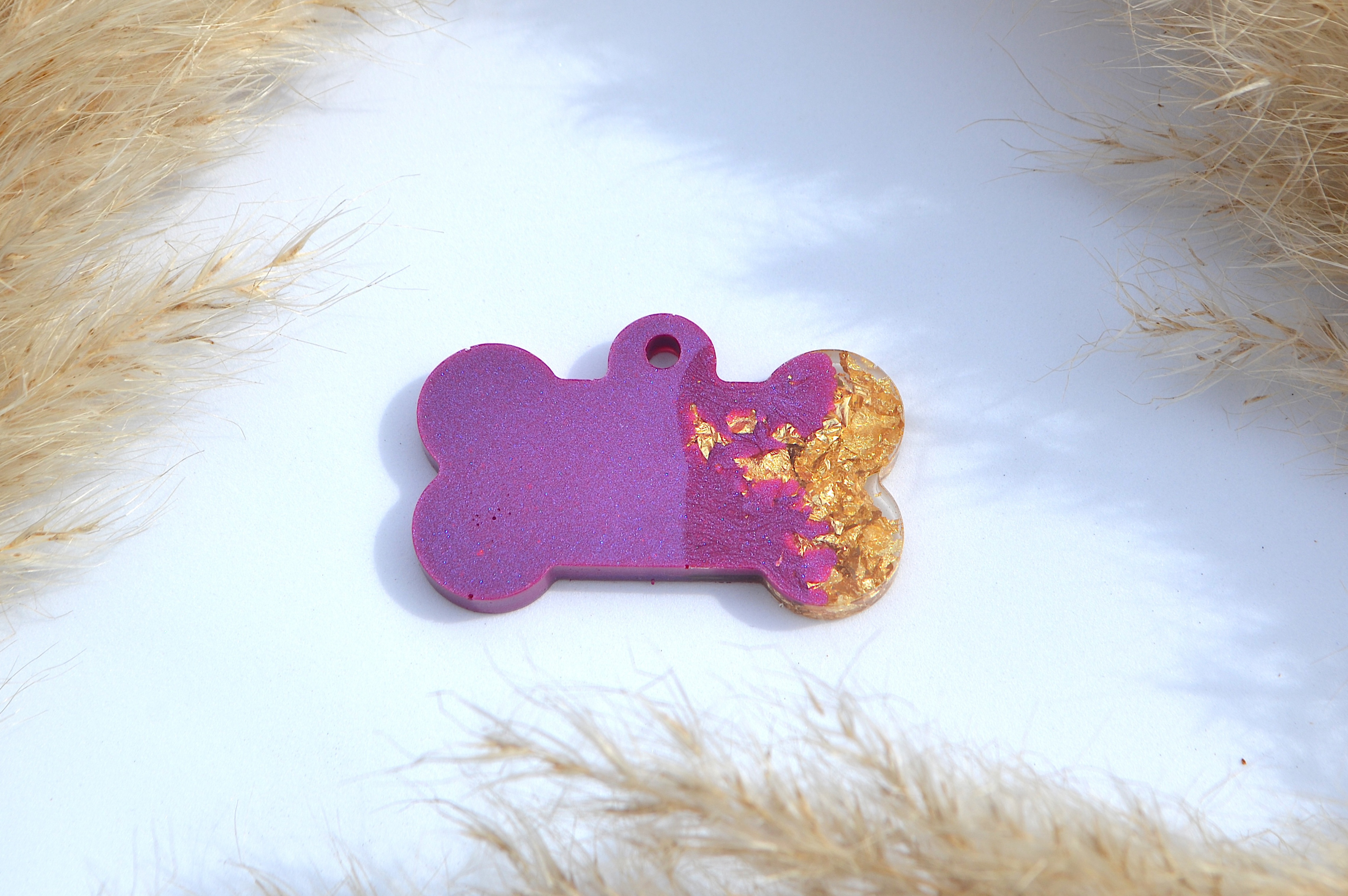 Hundetegn, stort kødben, lilla shimmer og bladguld