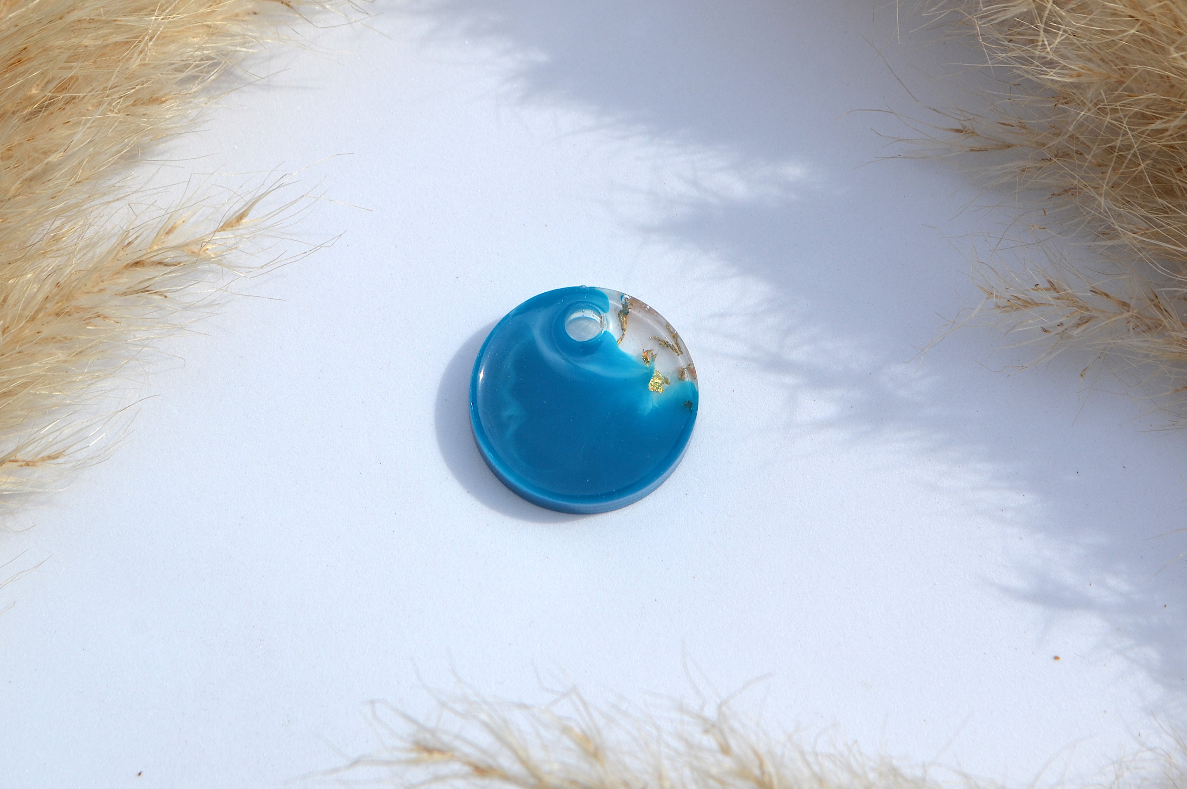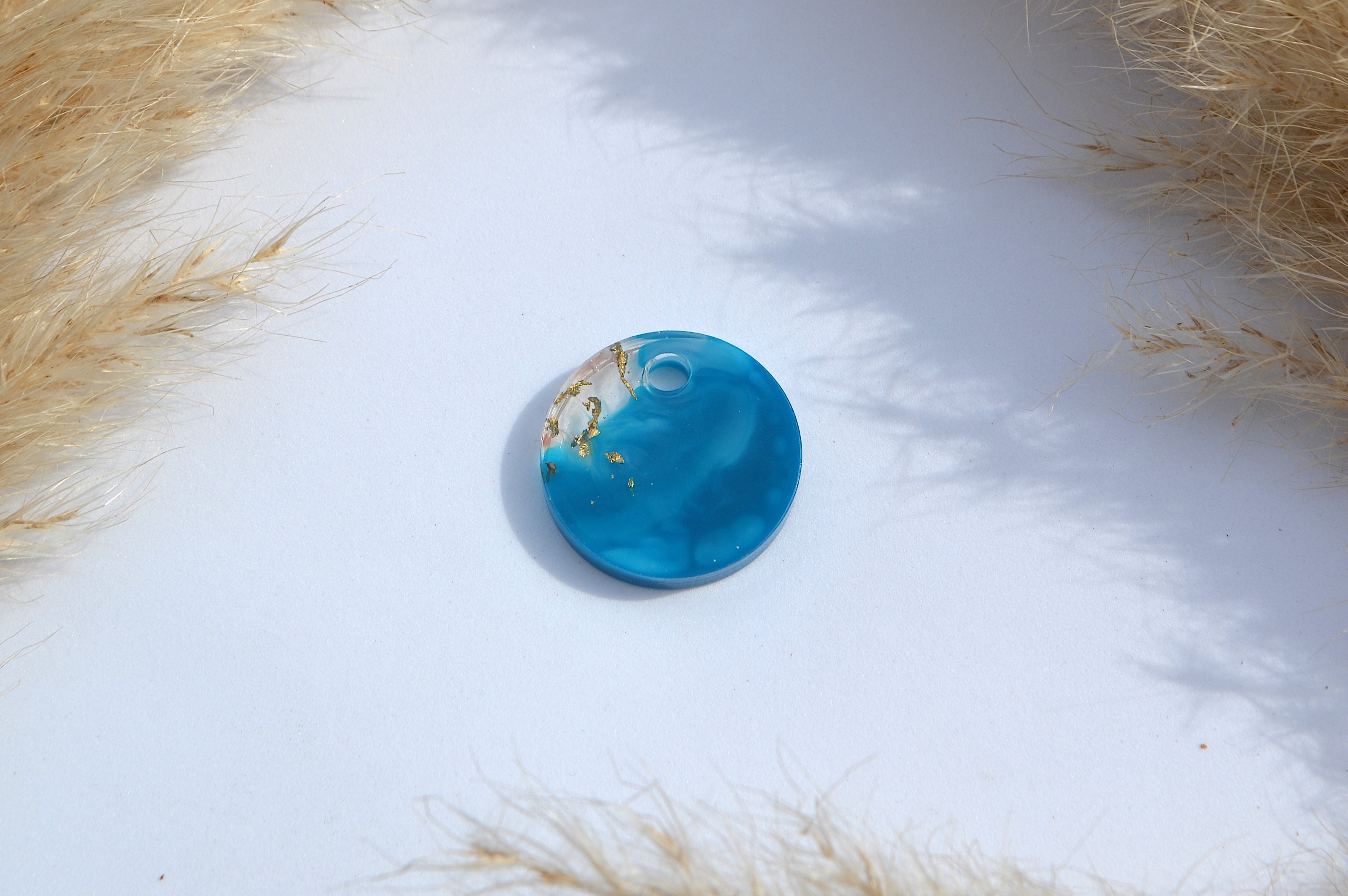 Hundetegn, mellem rund, turkeis, blå, hvid, bladguld