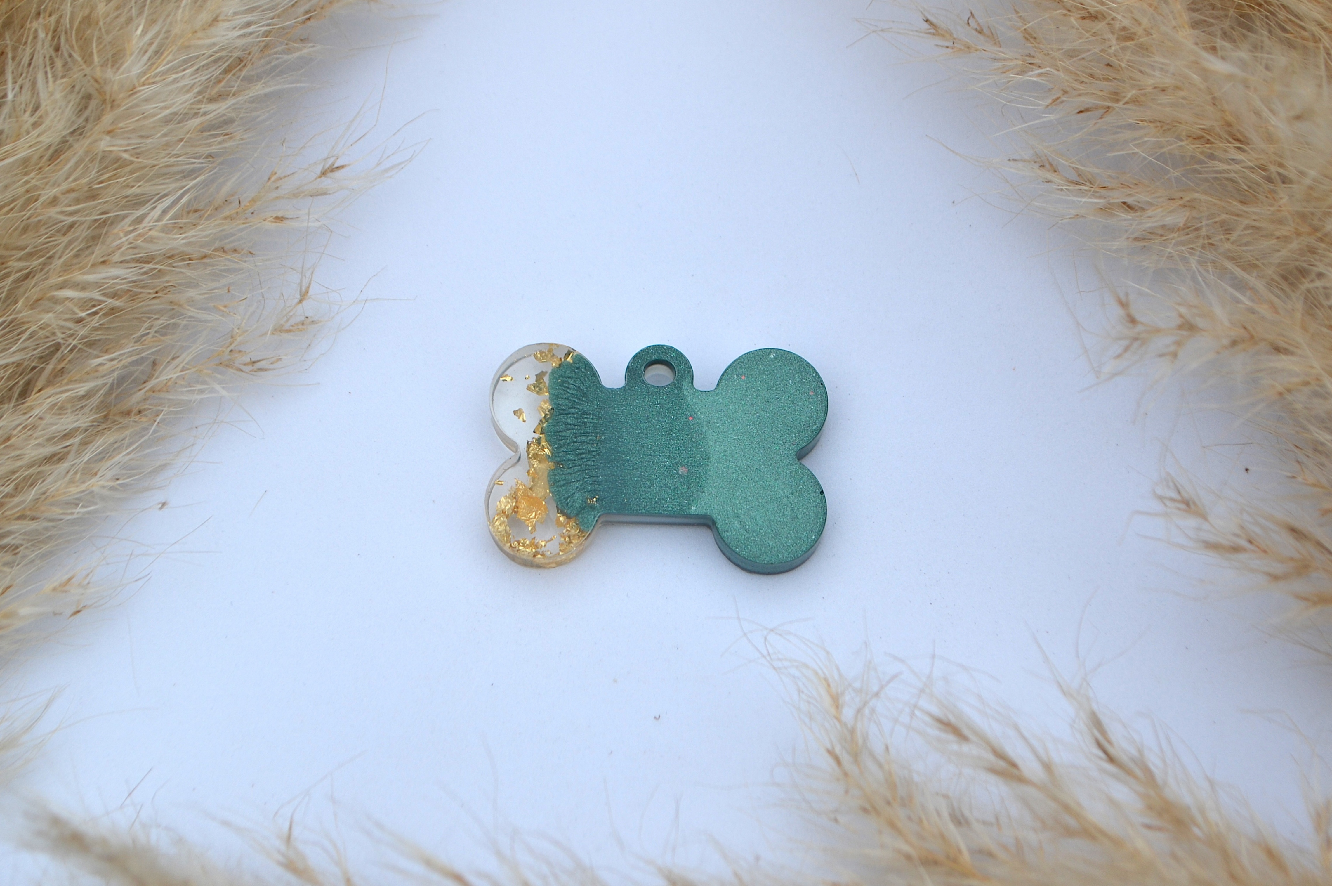 Hundeteg, lille kødben, grøn shimmer med hvid og bladguld