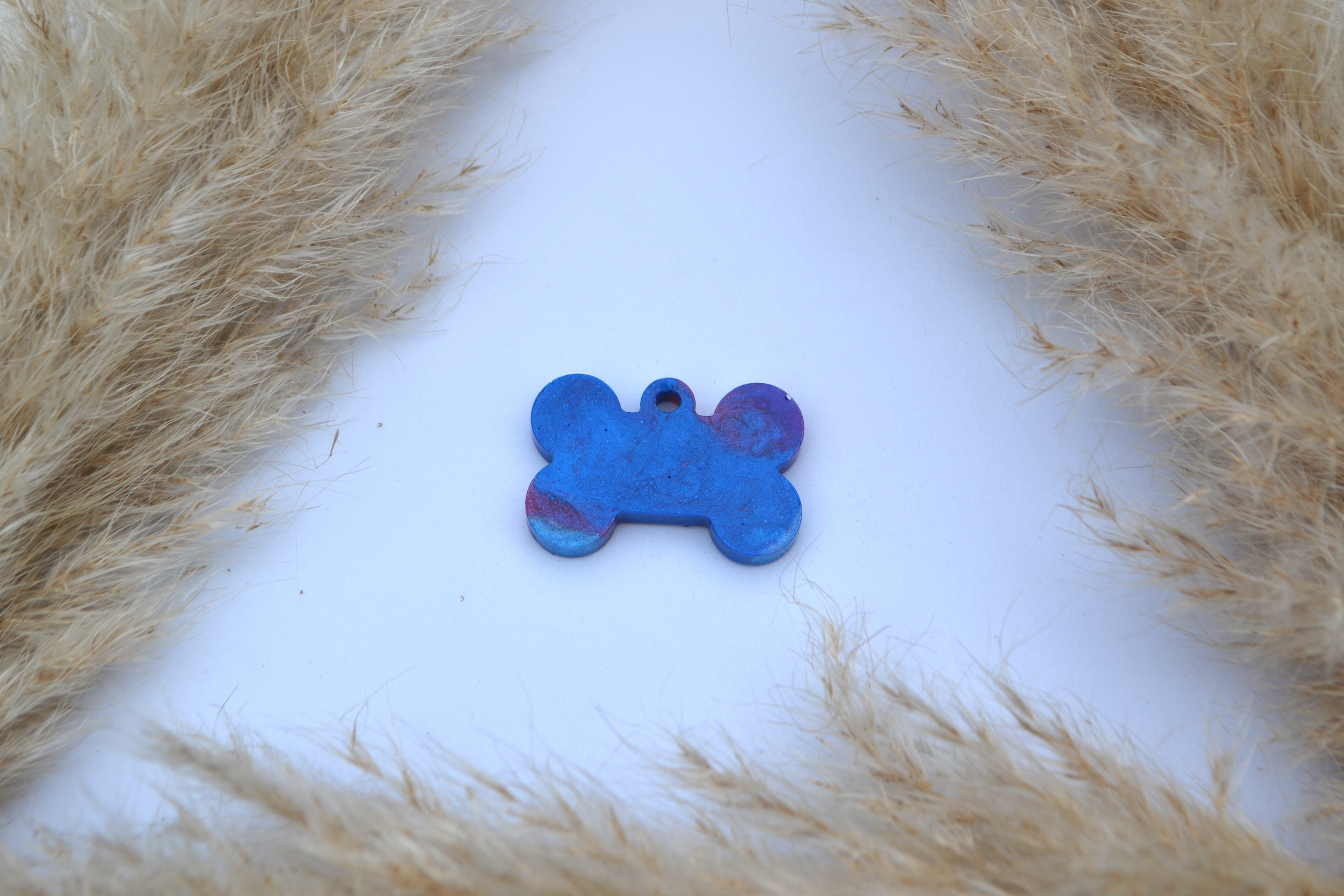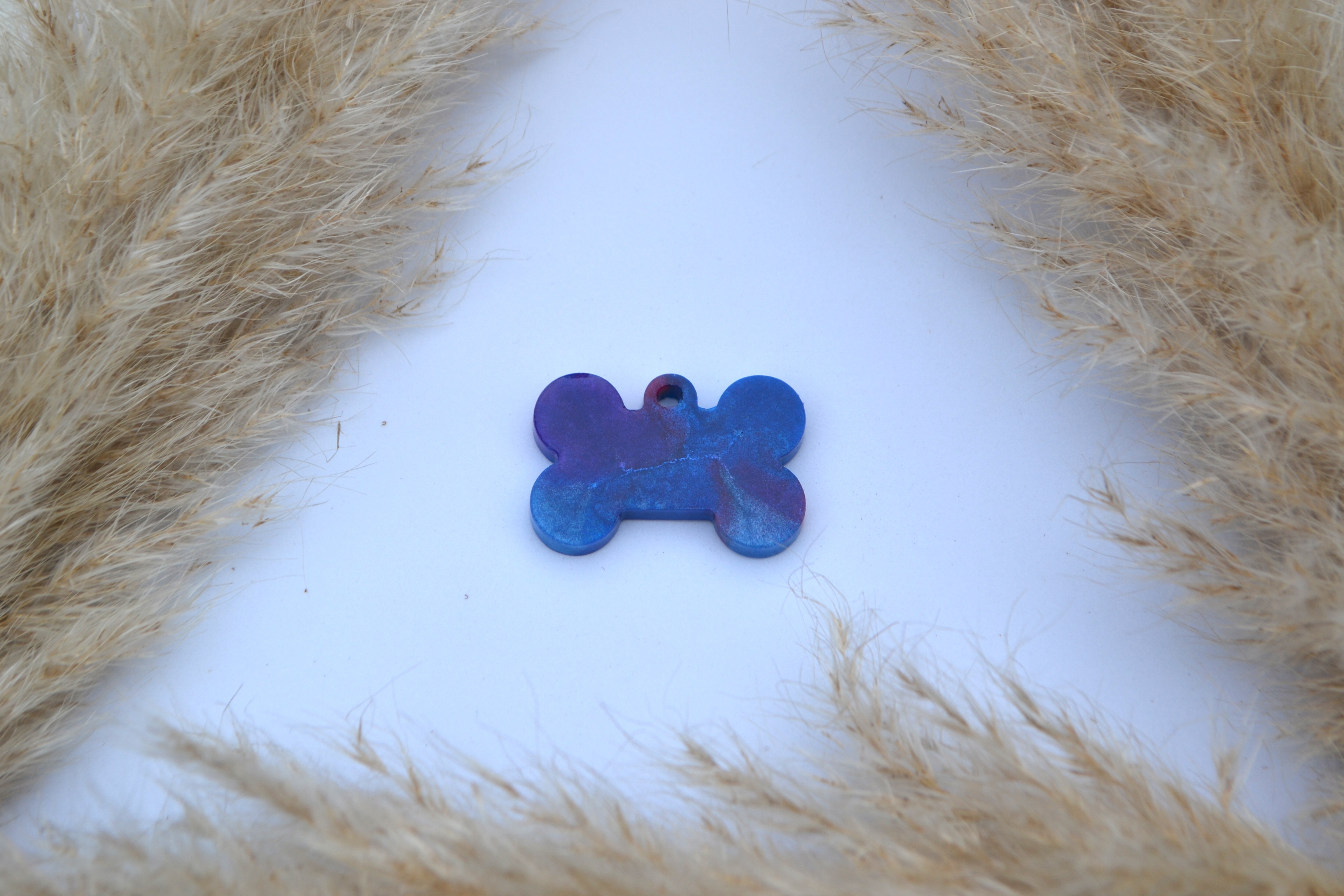 Hundetegn, lille kødben, lilla og blå med shimmer