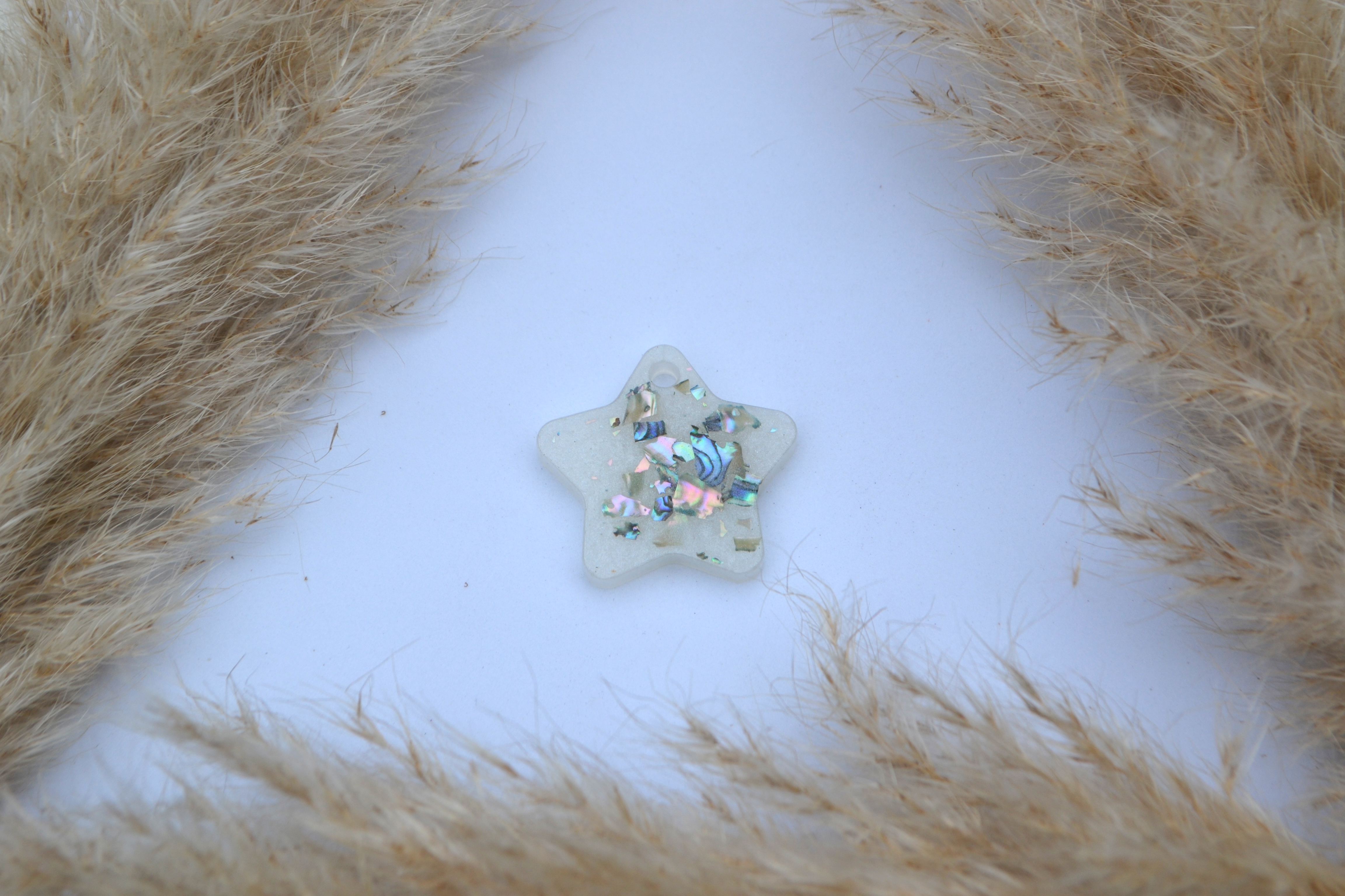 Hundetegn, stor stjerne, perlemor hvid med skaller