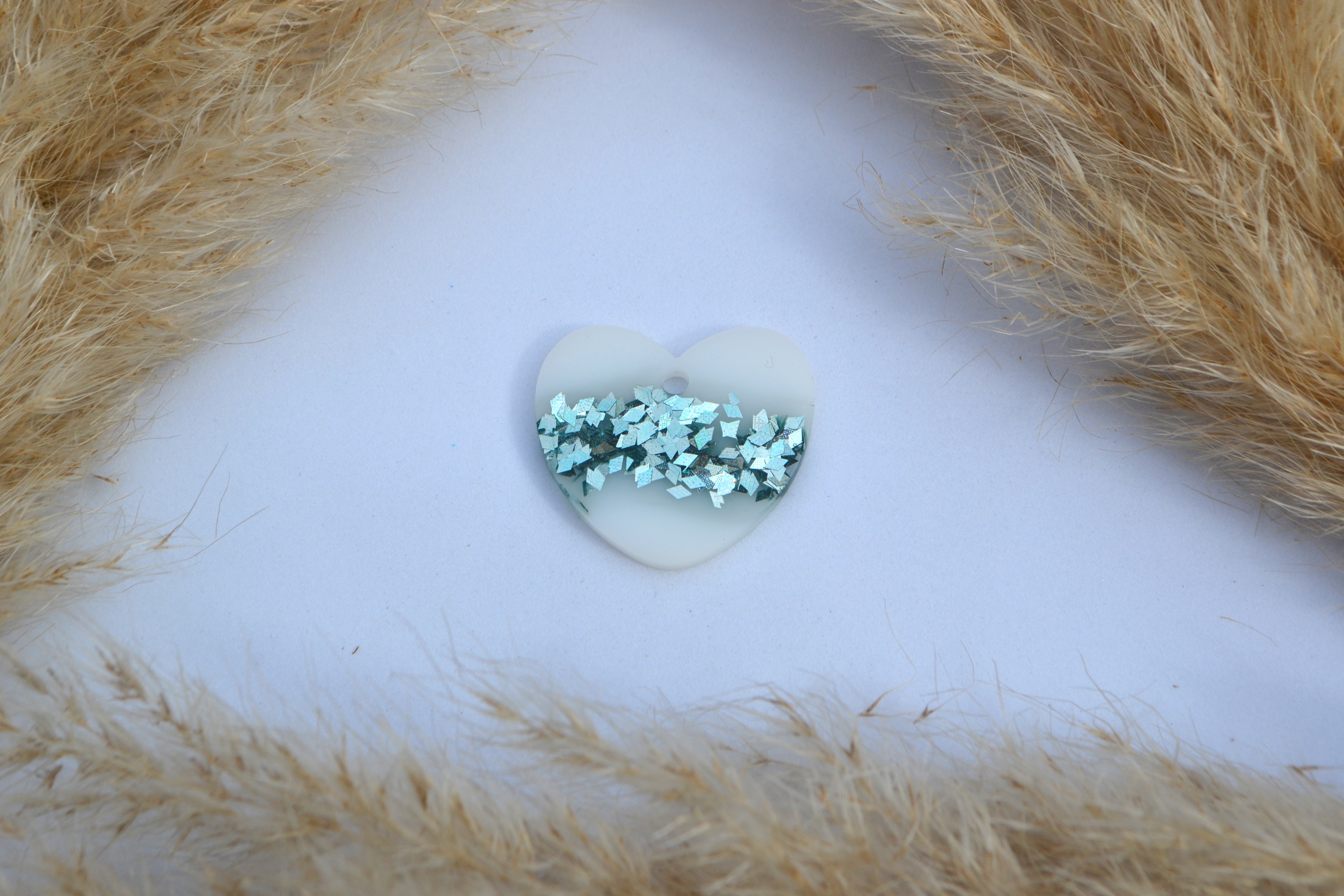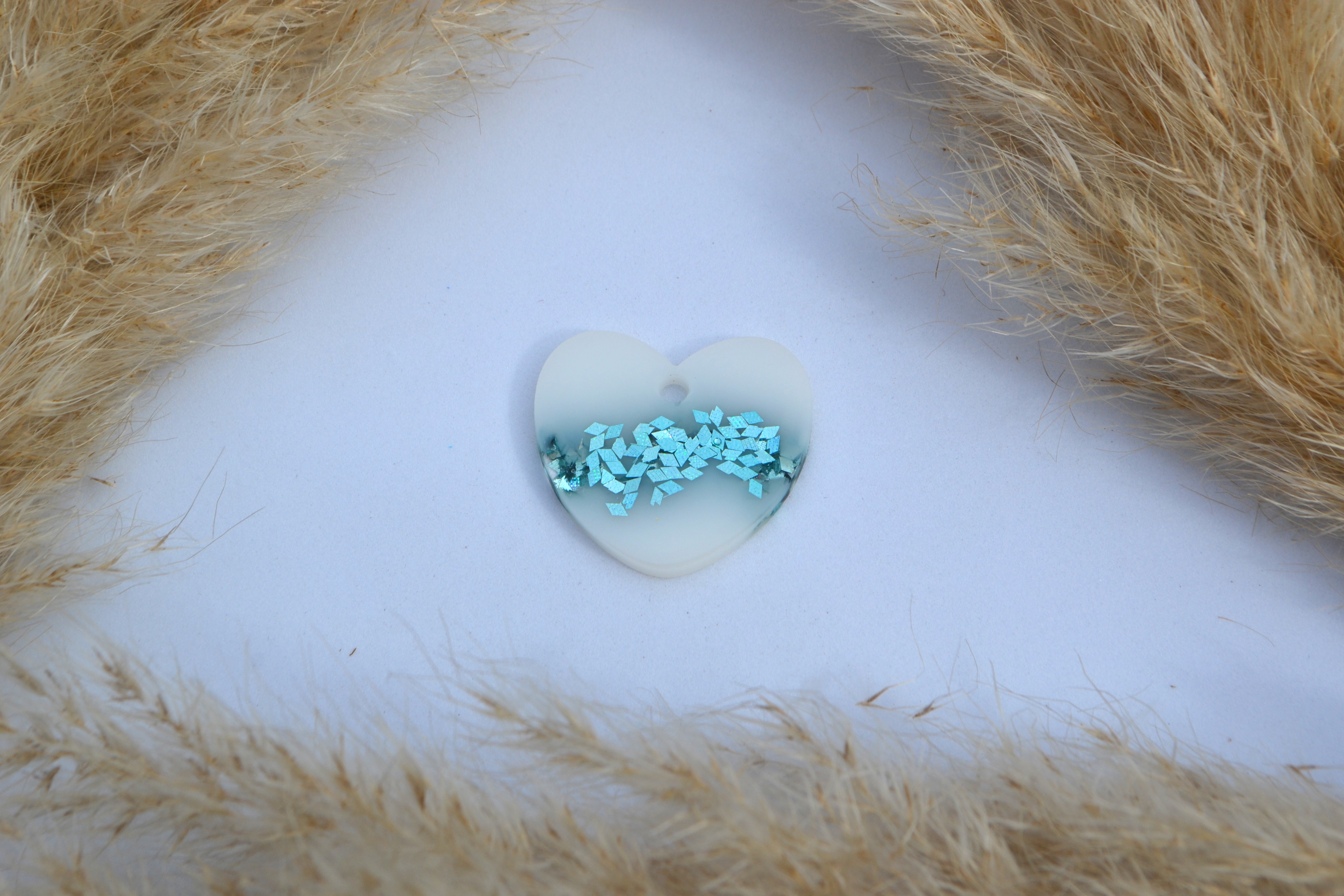 Hundetegn, stort hjerte, hvid med grønblå flager