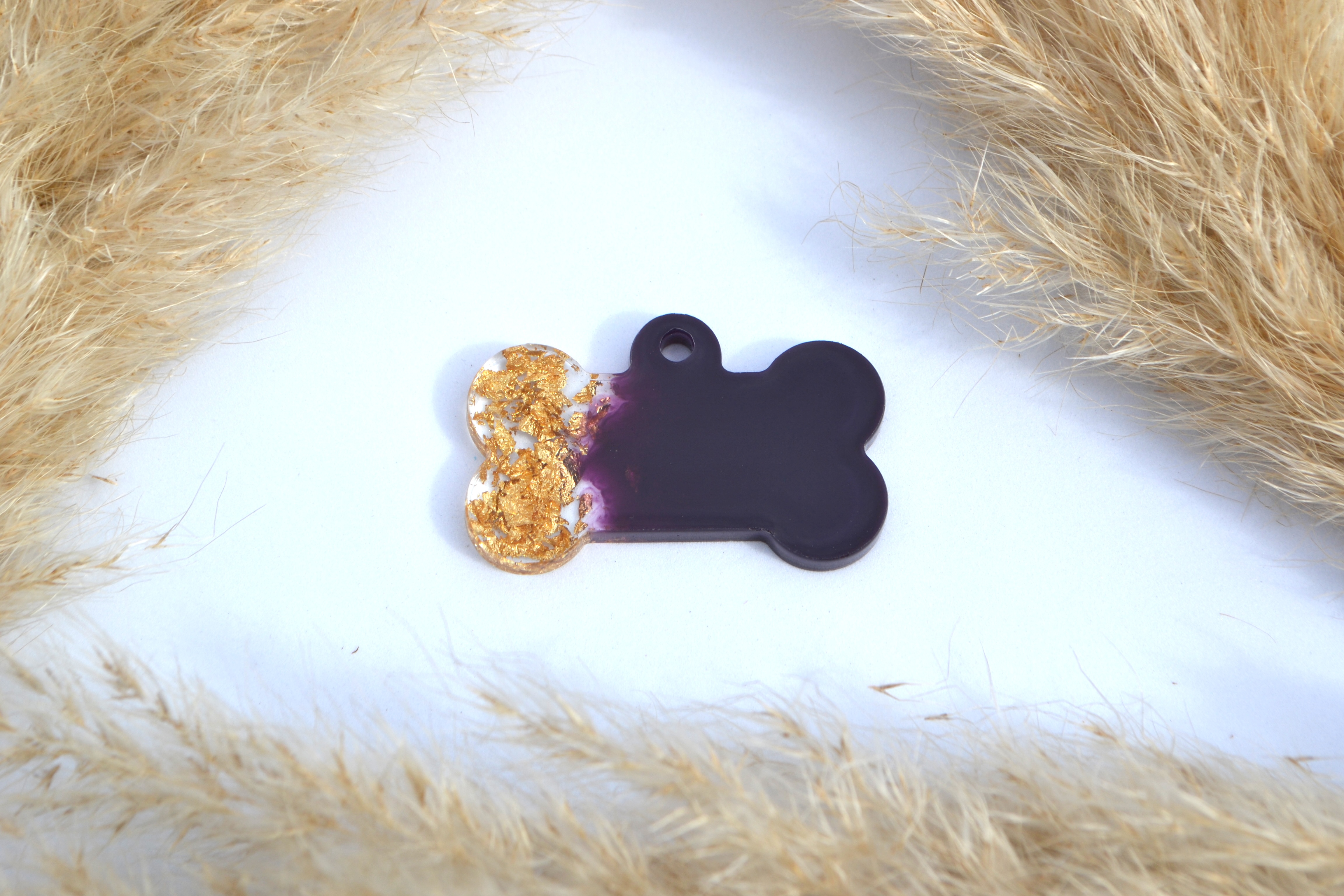 🔹 De fleste vælger at få hundens navn på forsiden – og ejers navn, adresse og telefonnummer på bagsiden.