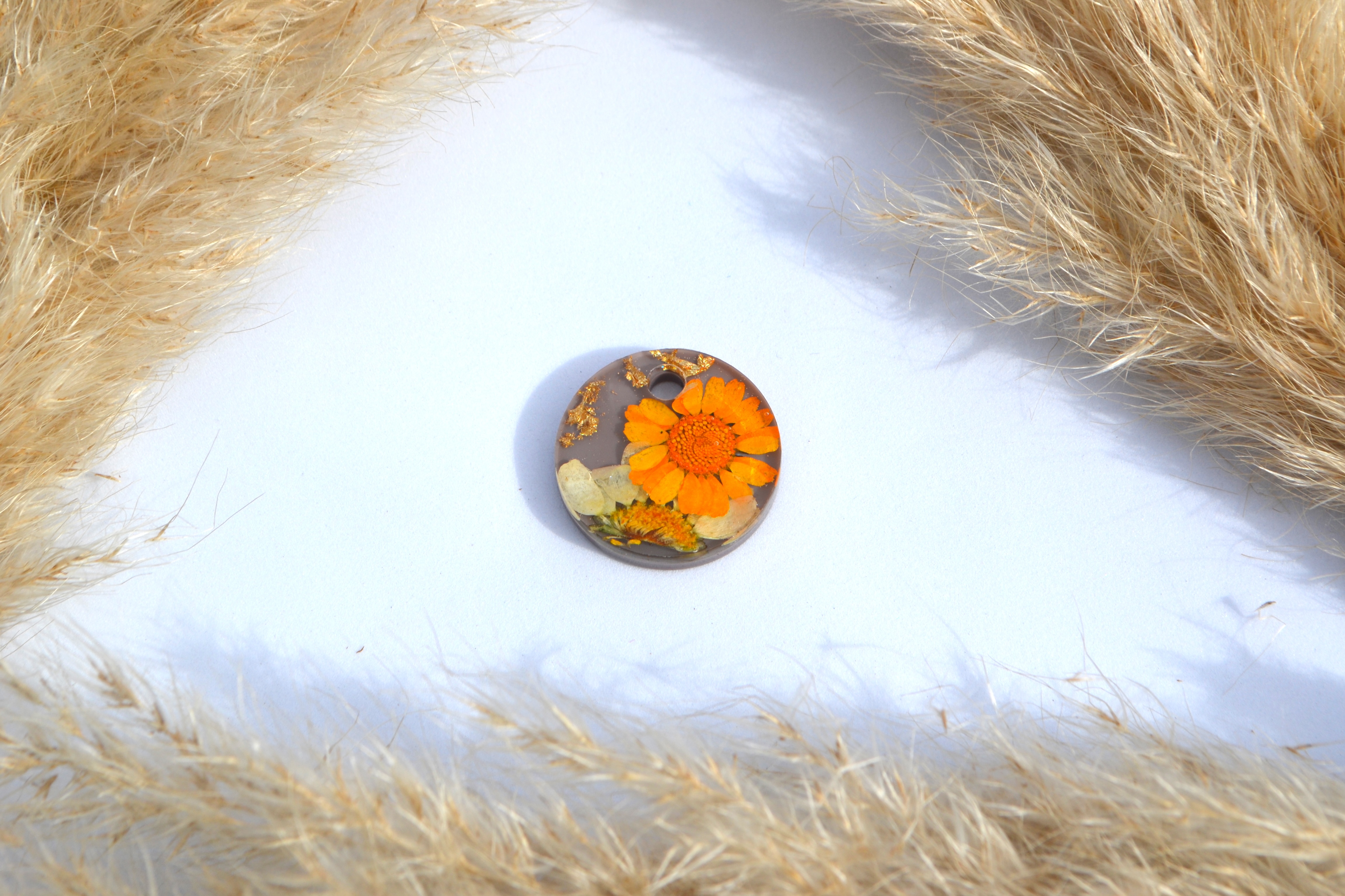 Hundetegn, mellem rund, grå med blomster og bladguld