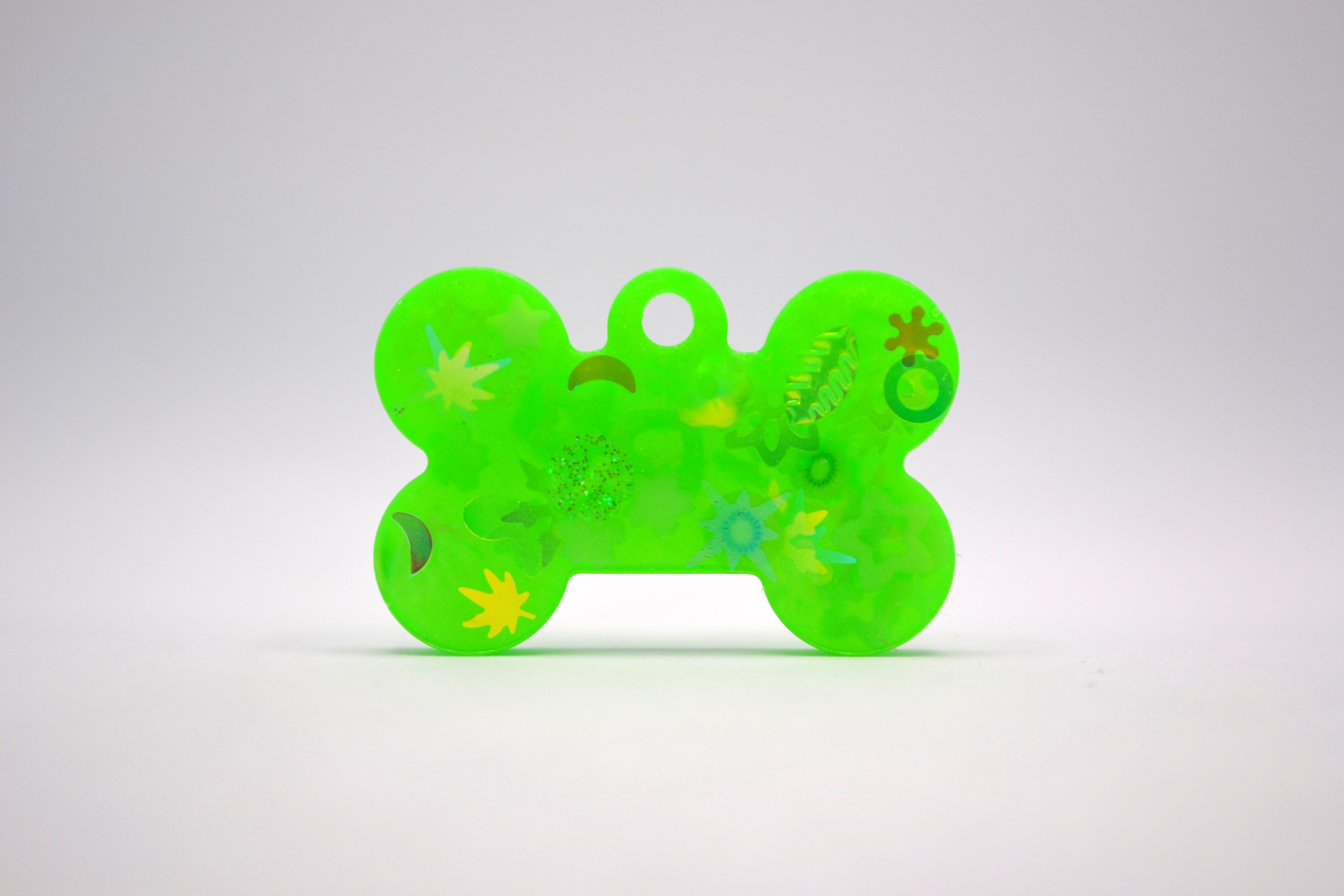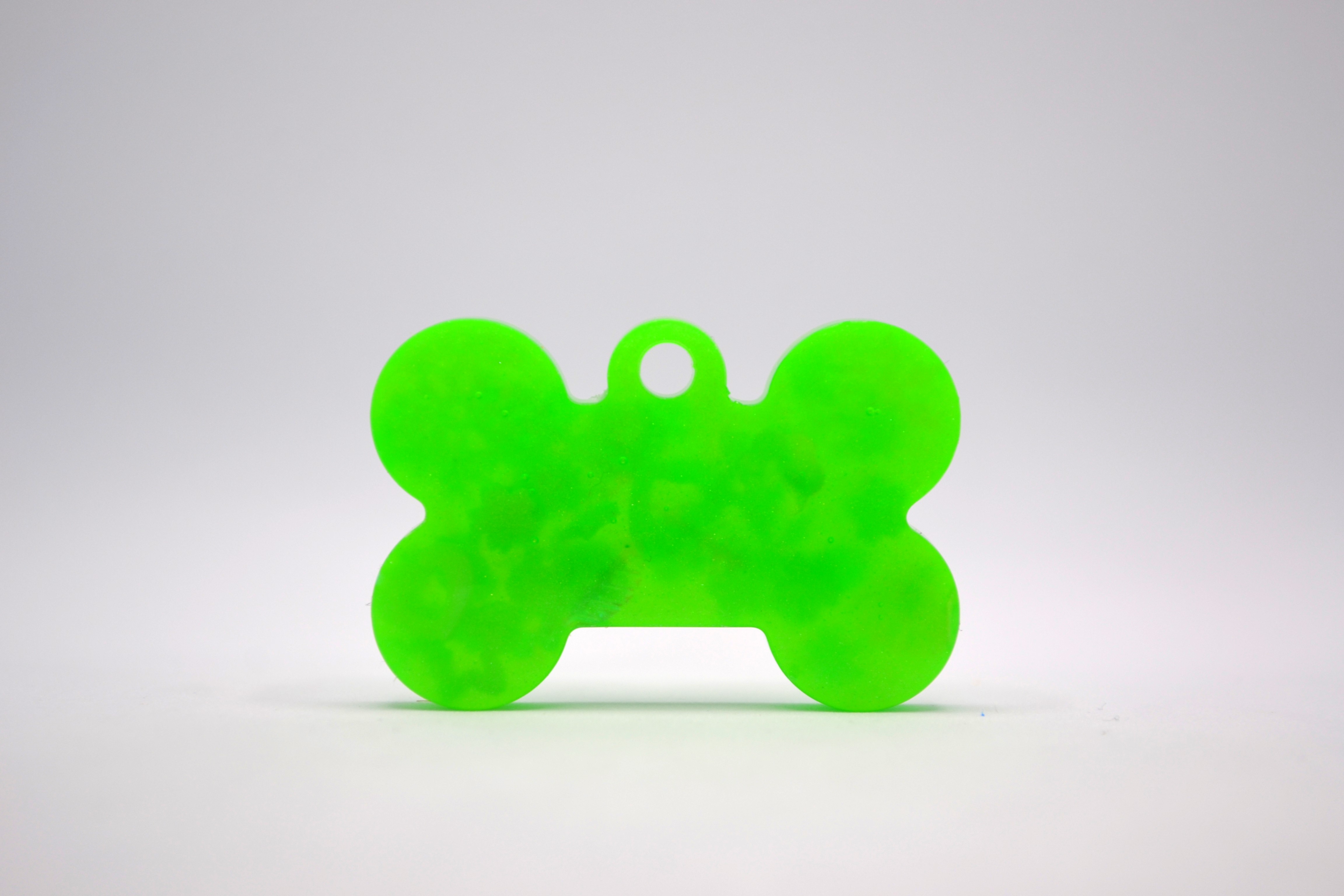 🔹 De fleste vælger at få hundens navn på forsiden – og ejers navn, adresse og telefonnummer på bagsiden.