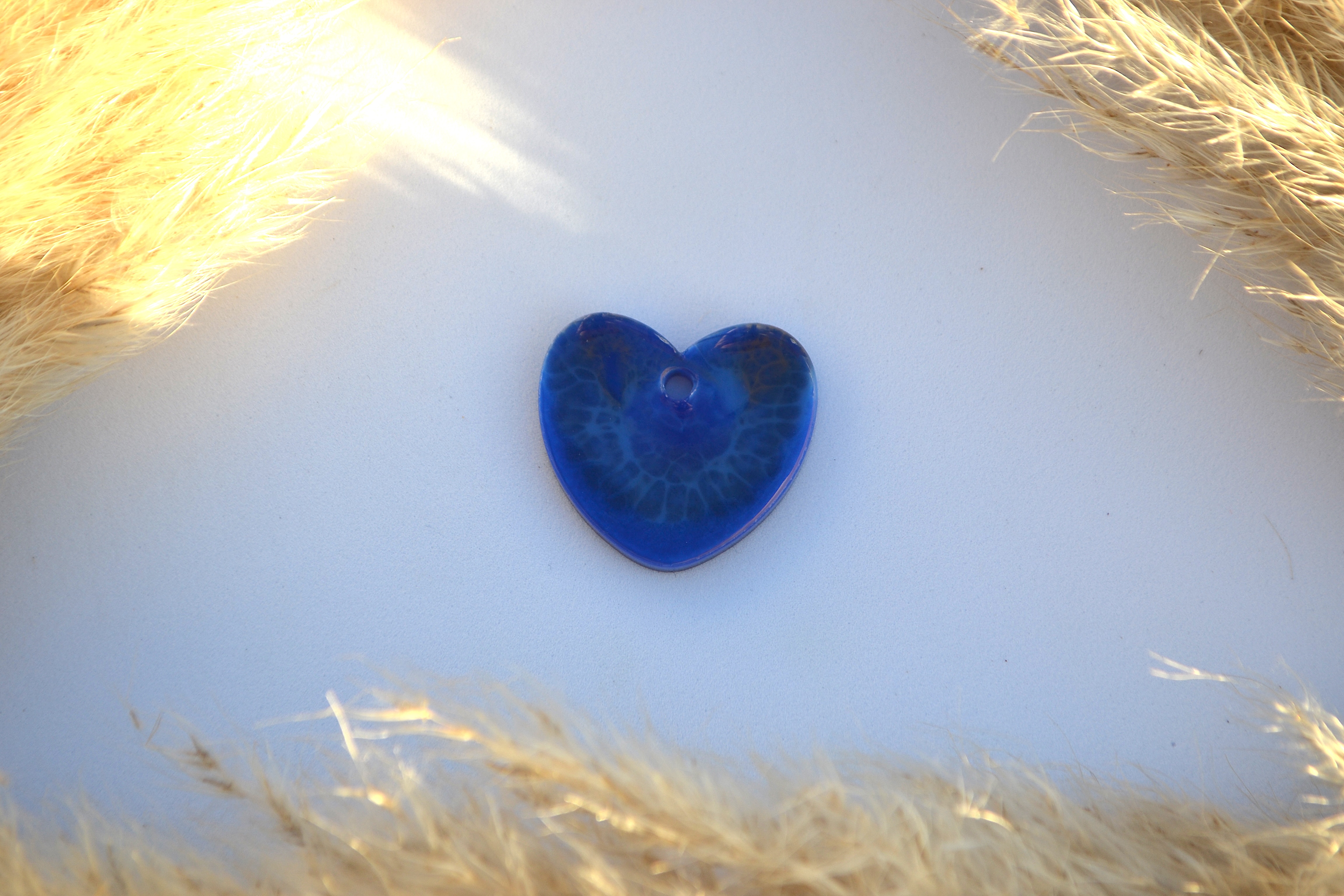 Hundetegn, stort hjerte, blå med lidt guld effekt