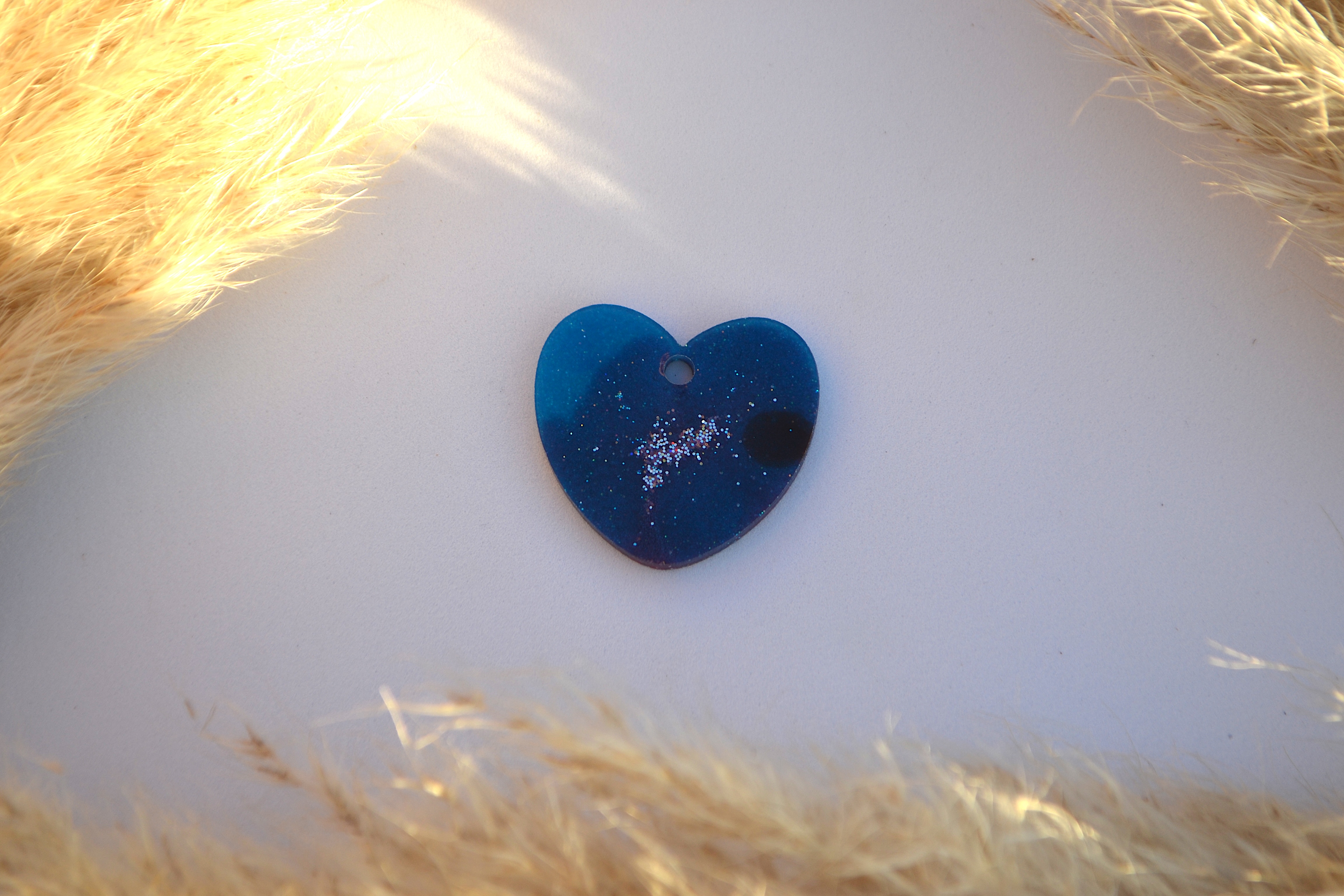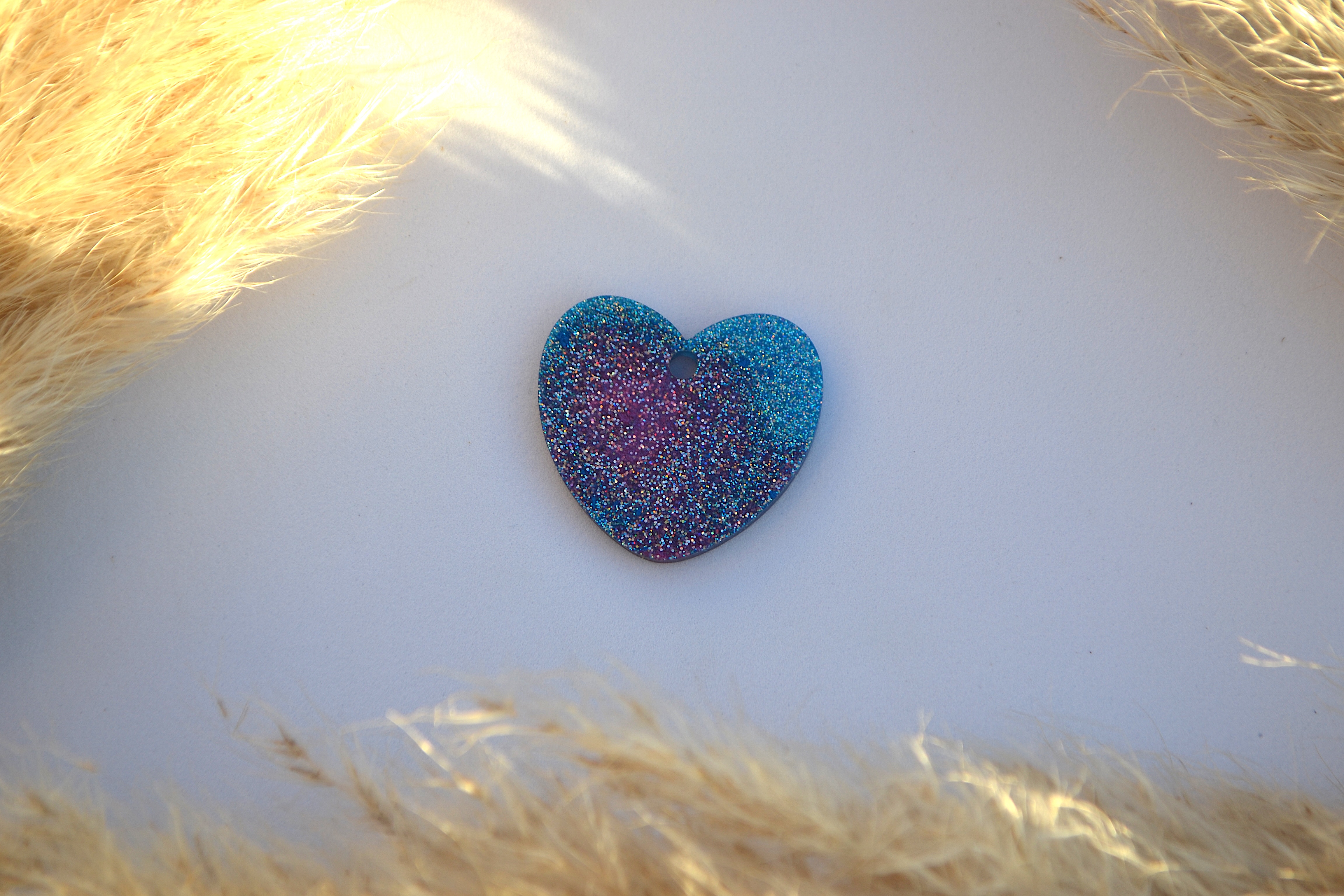 Hundetegn, stort hjerte, blå med forskellig glitter
