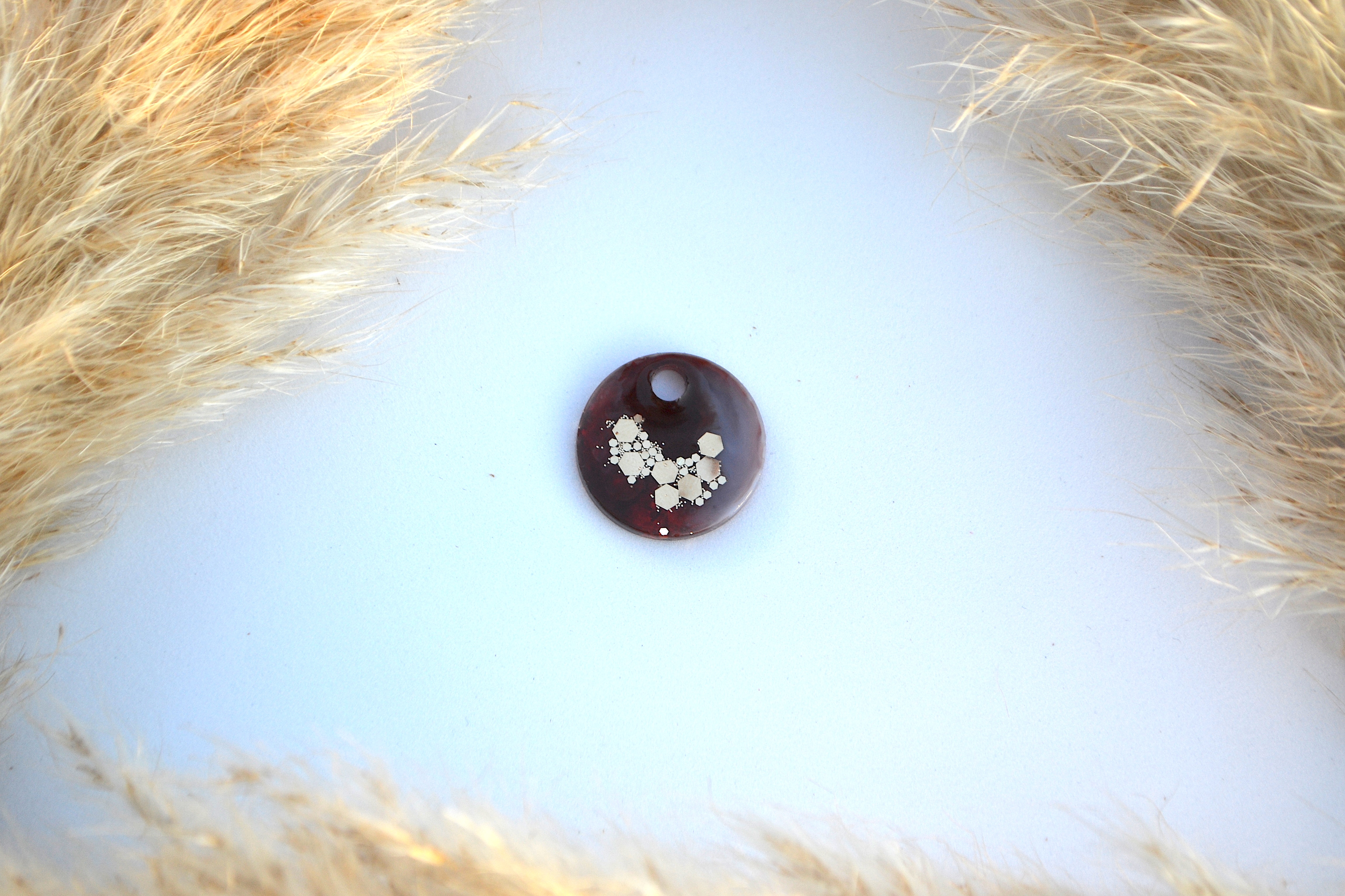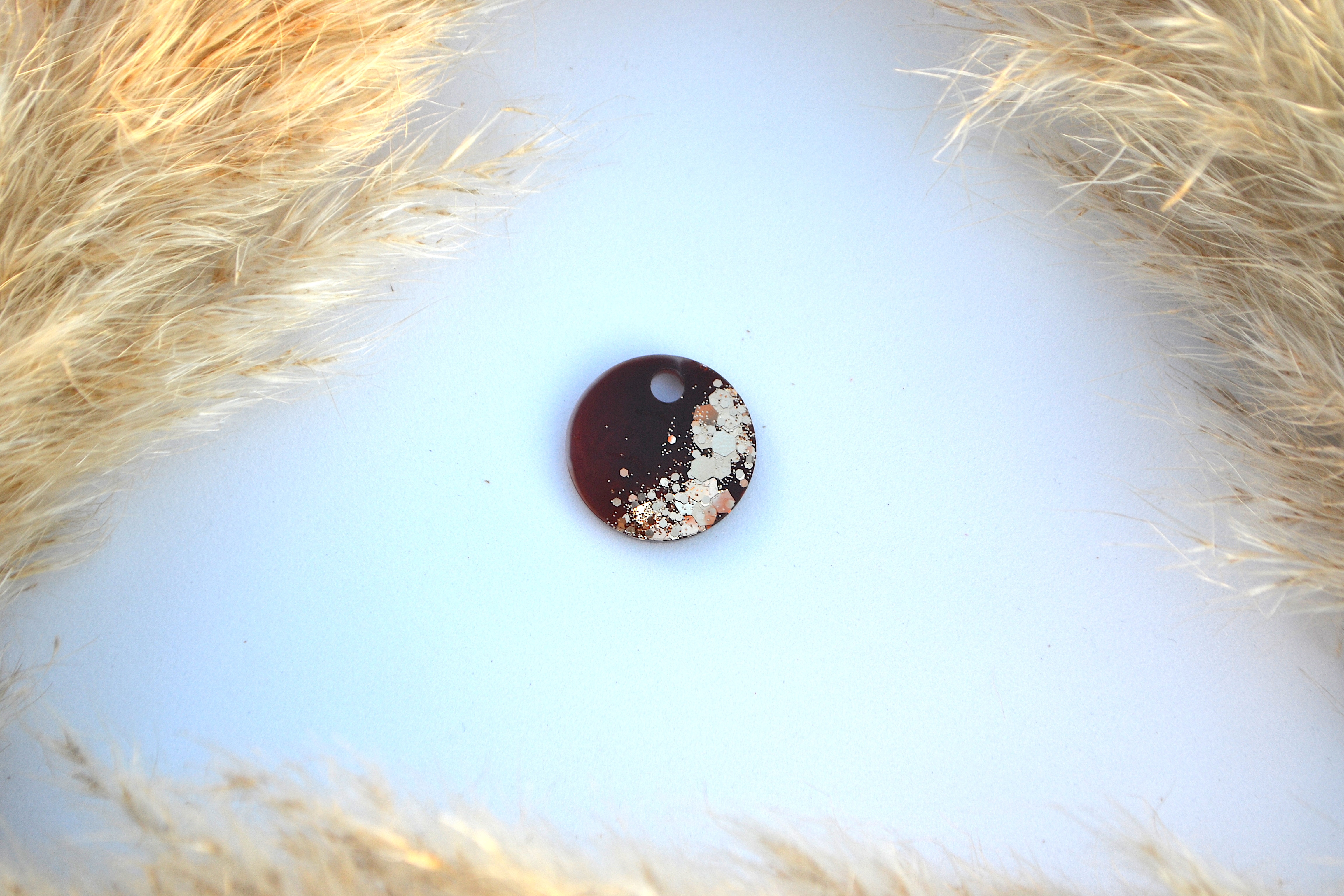 Hundetegn, lille rund, brun, hvid, guld flager