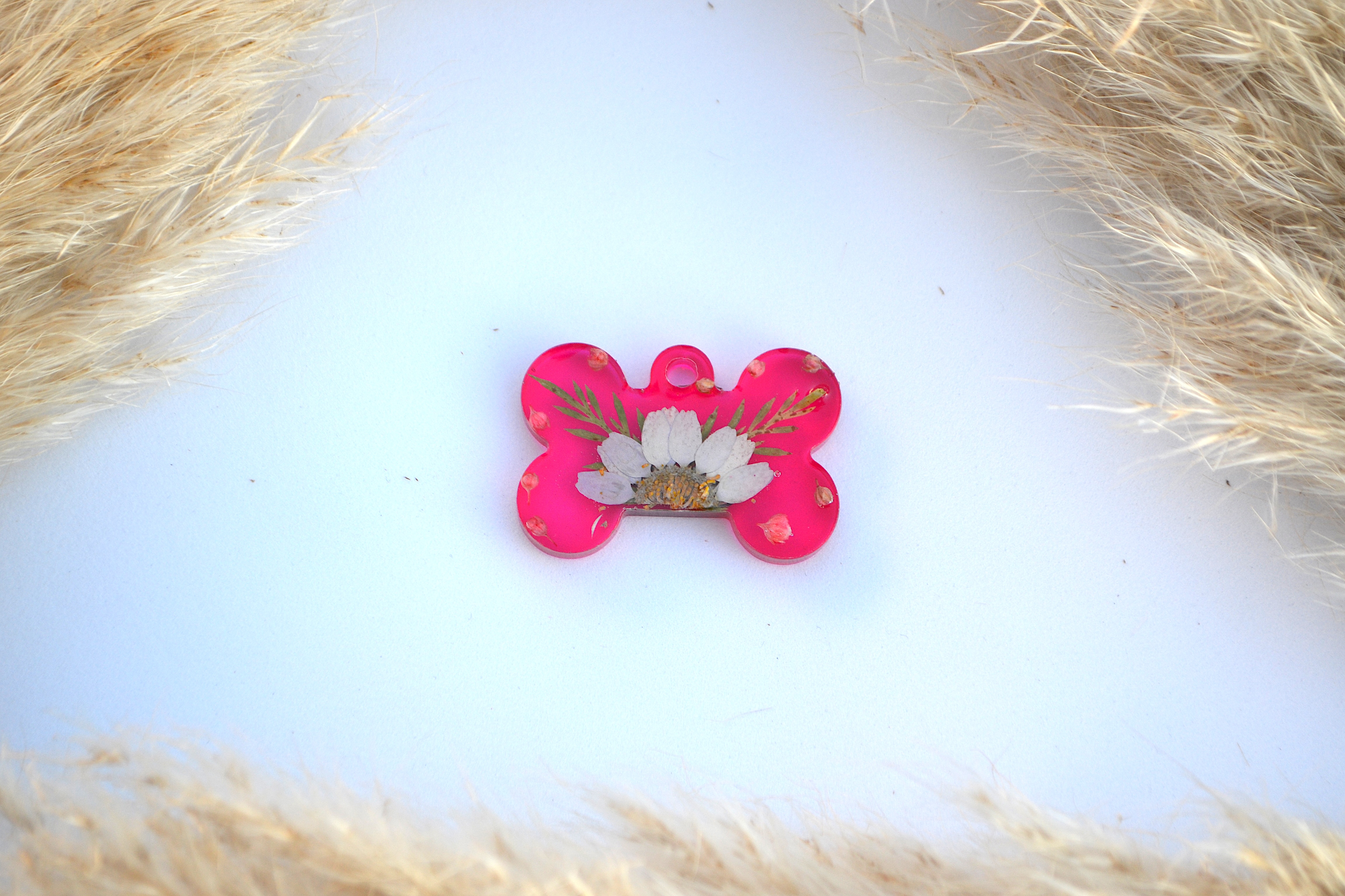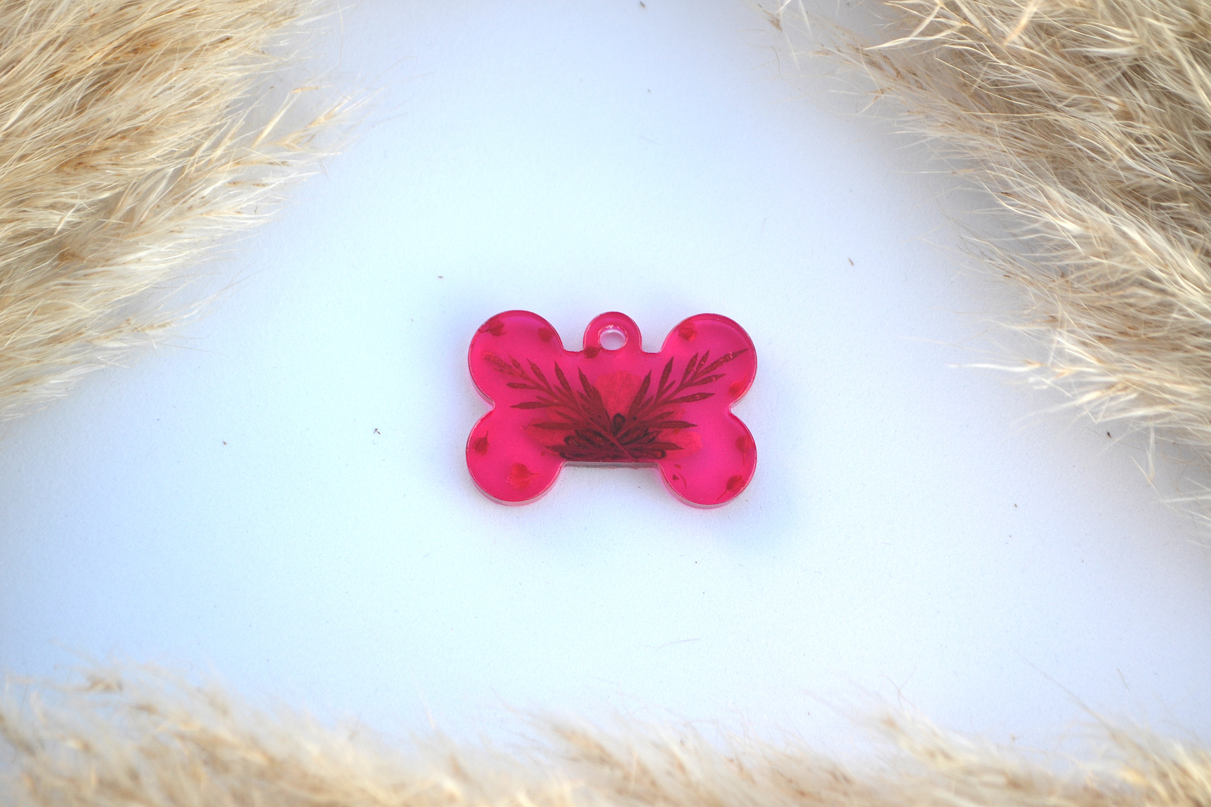 Hundetegn, lille kødben, gennemsigtig pink, blomster og blade