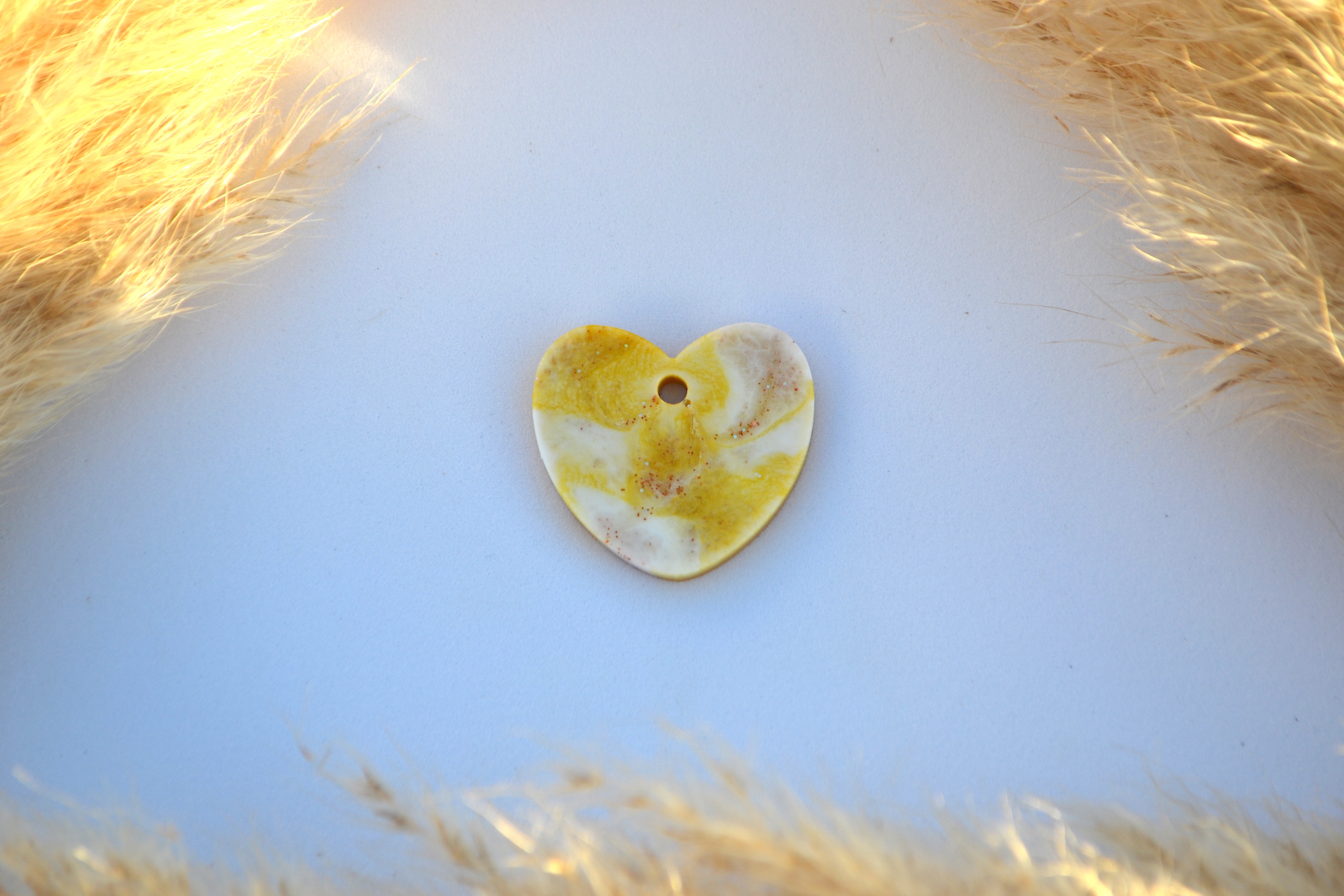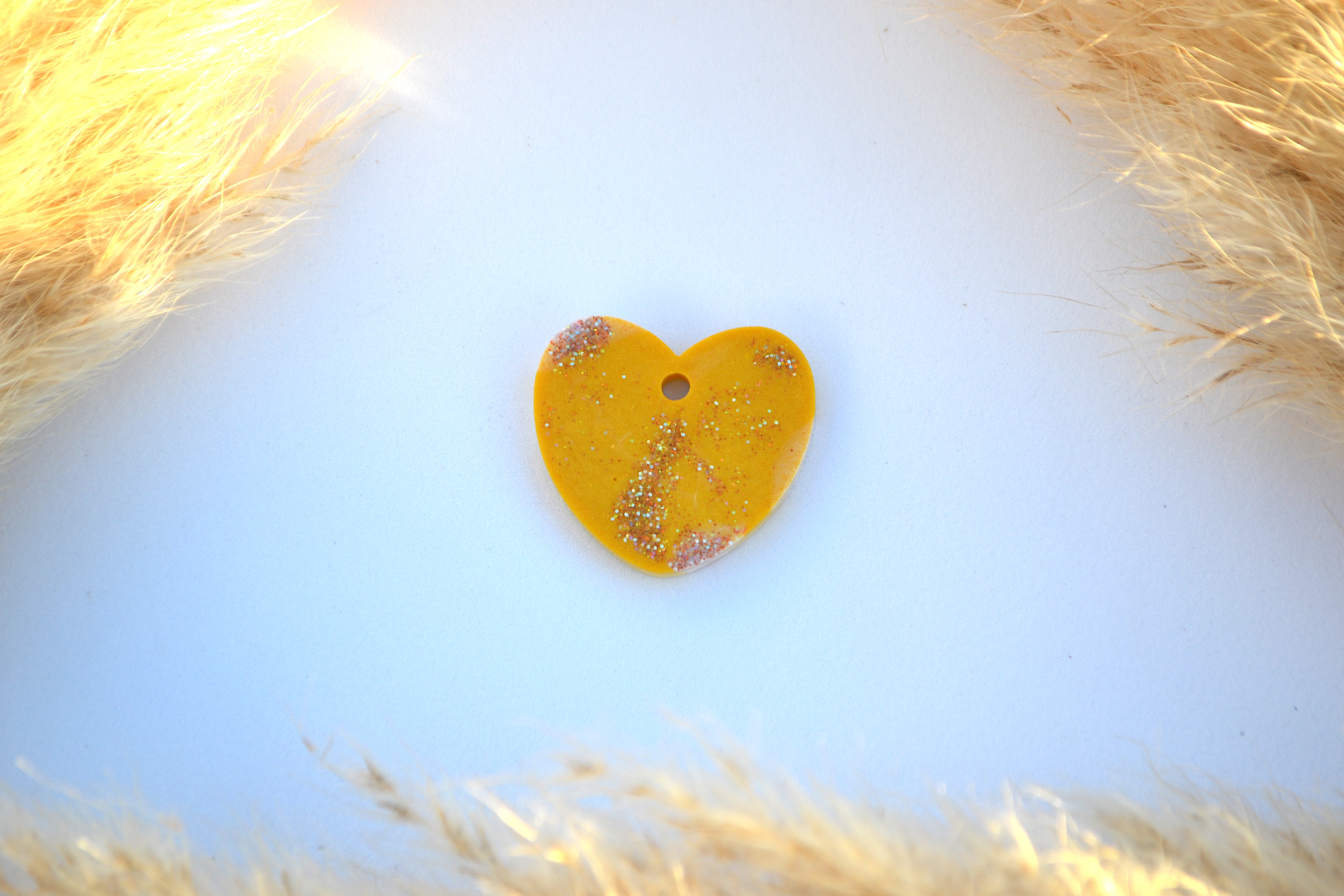 Hundetegn, stort hjerte, gul shimmer, glitter og hvid