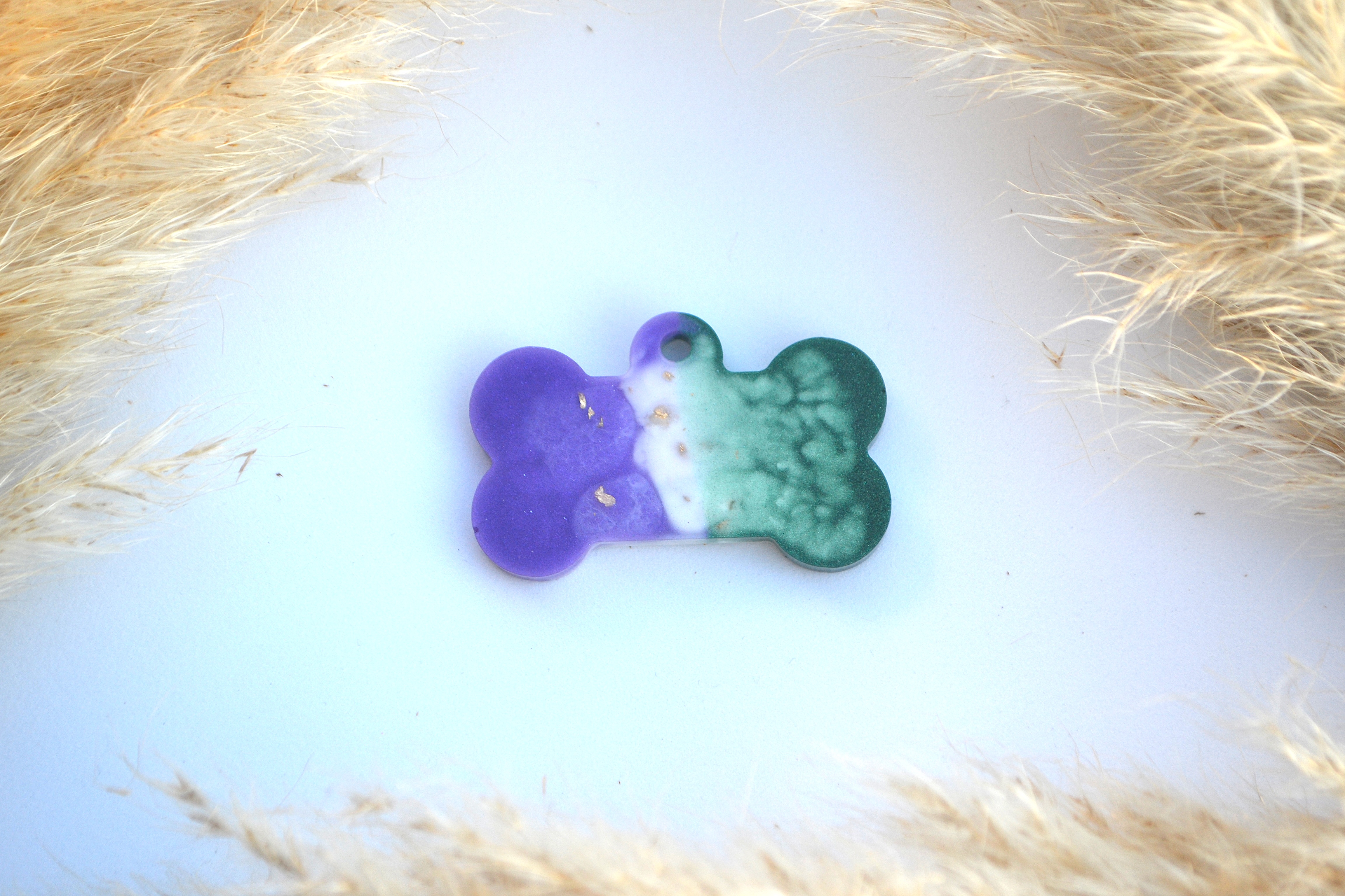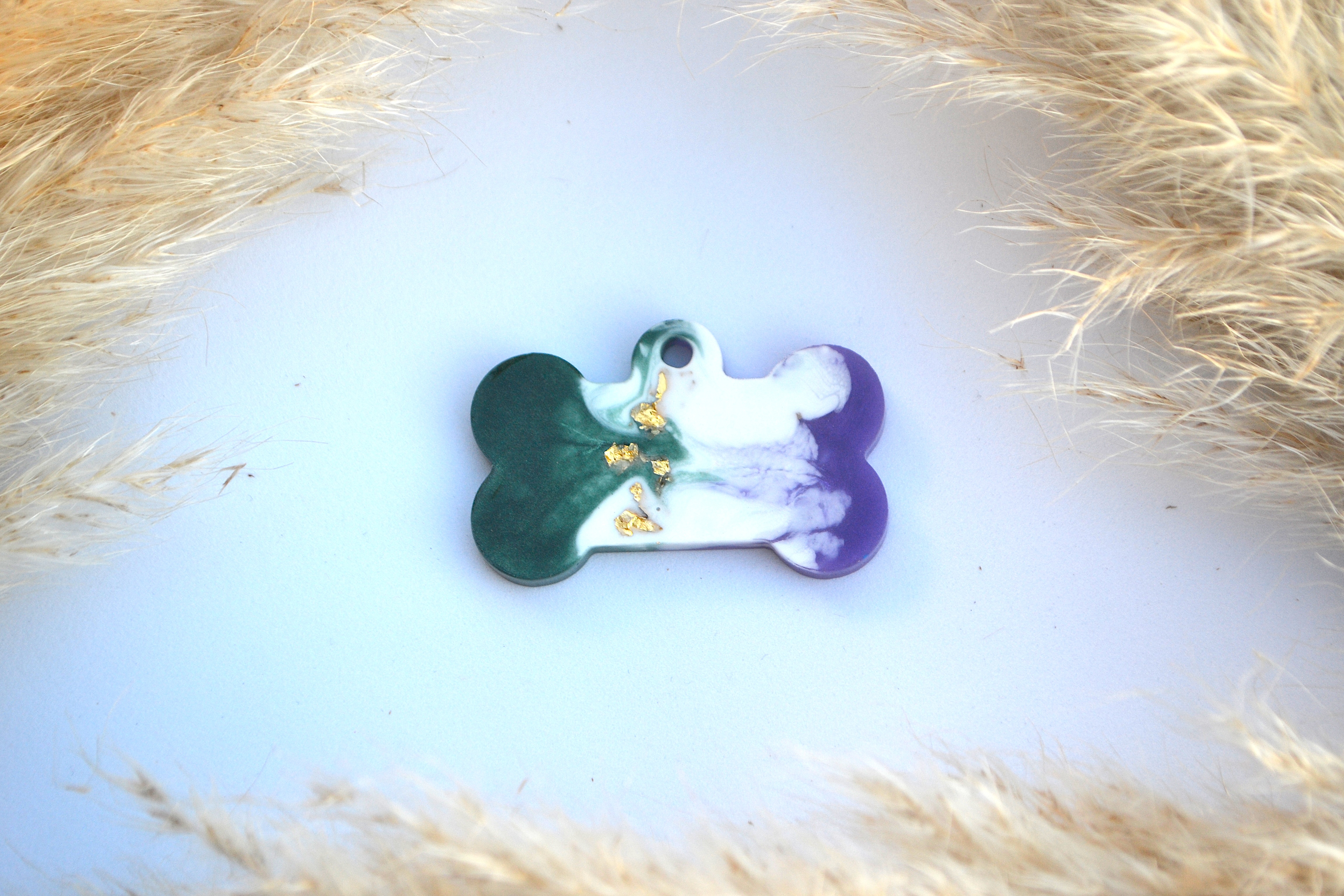 Hundetegn, stort kødben, grøn shimmer, hvid, lilla shimmer, bladguld