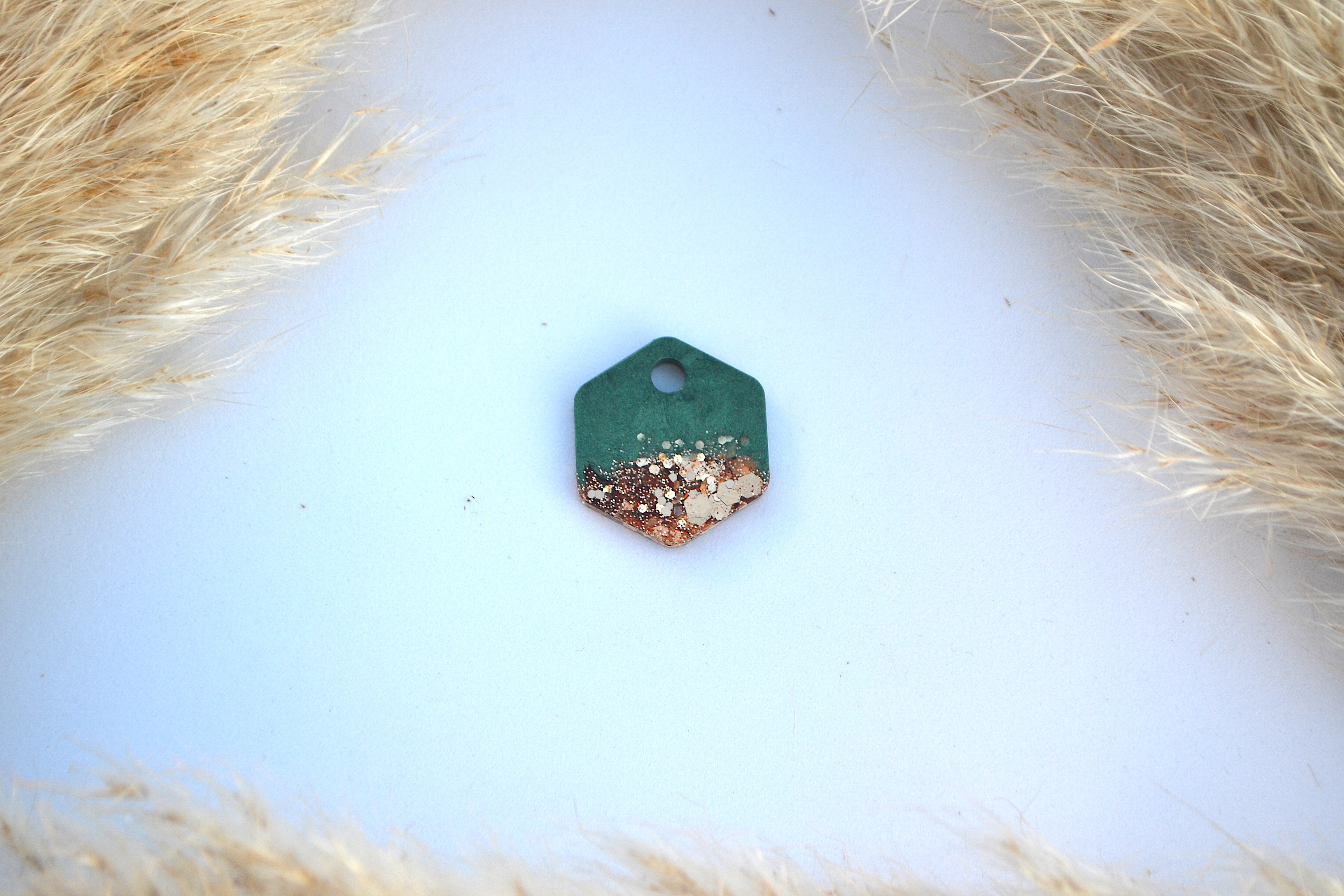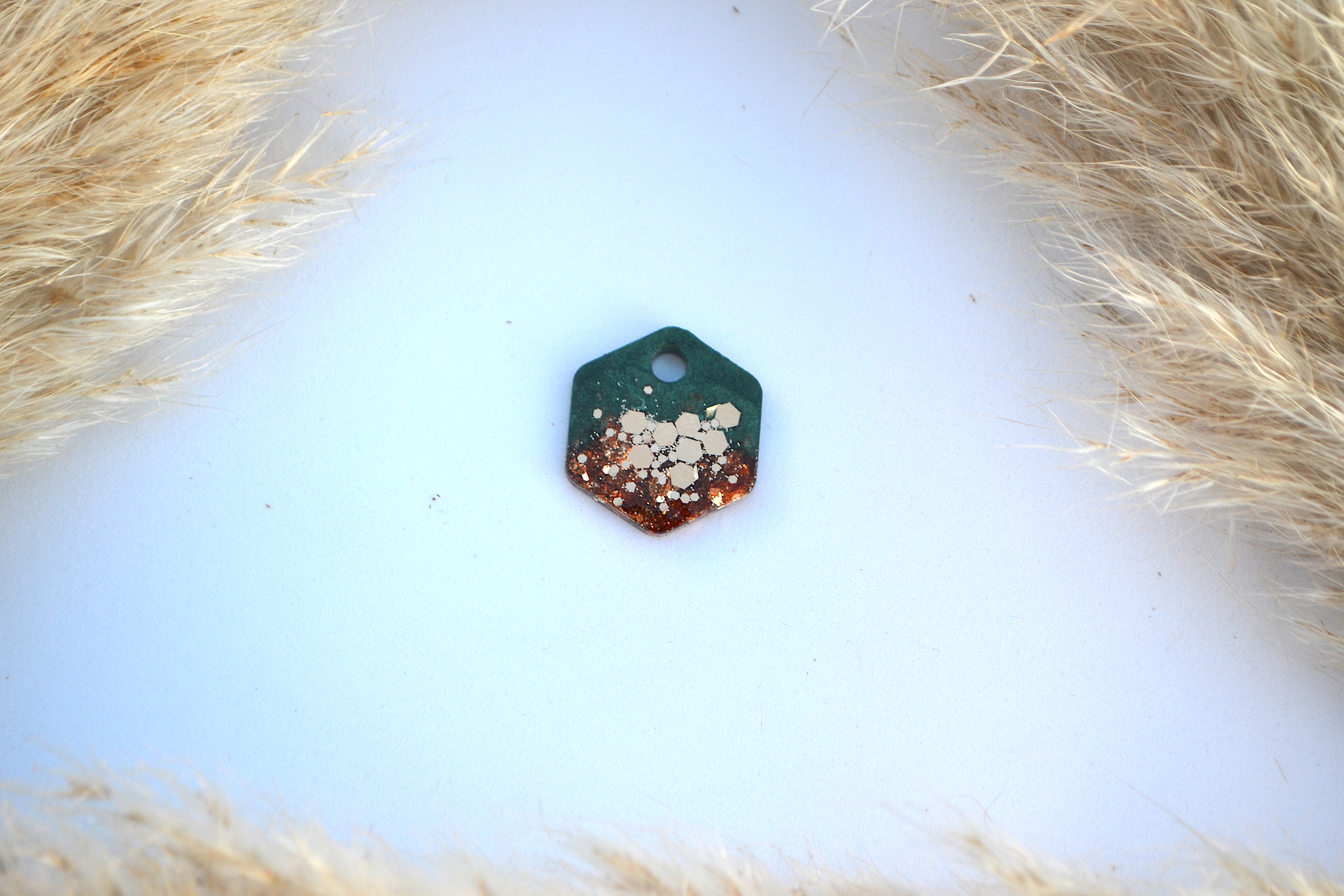 Hundetegn, lille hexagon, grøn shimmer og guld flager