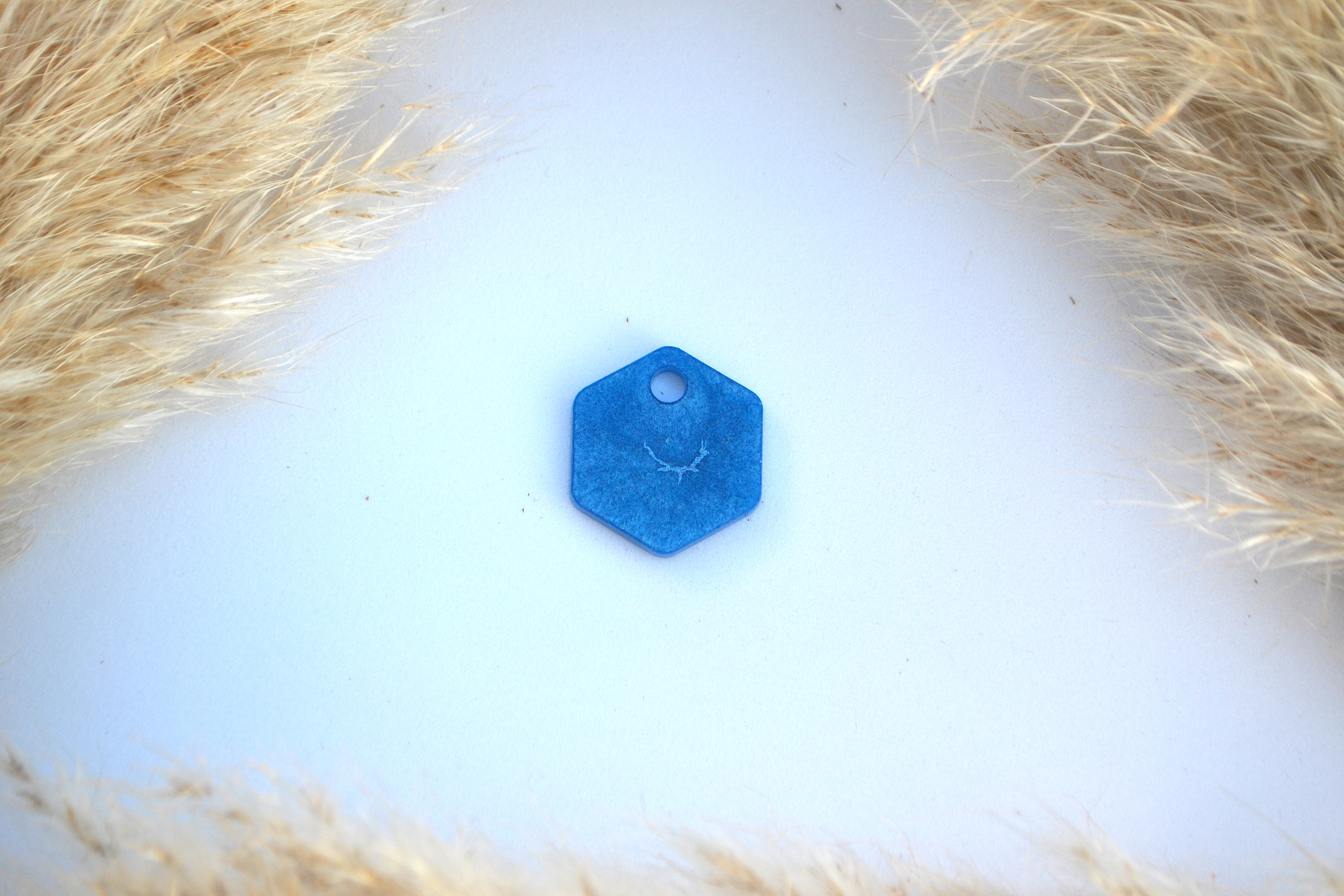 Hundetegn, lille hexagon, blå shimmer