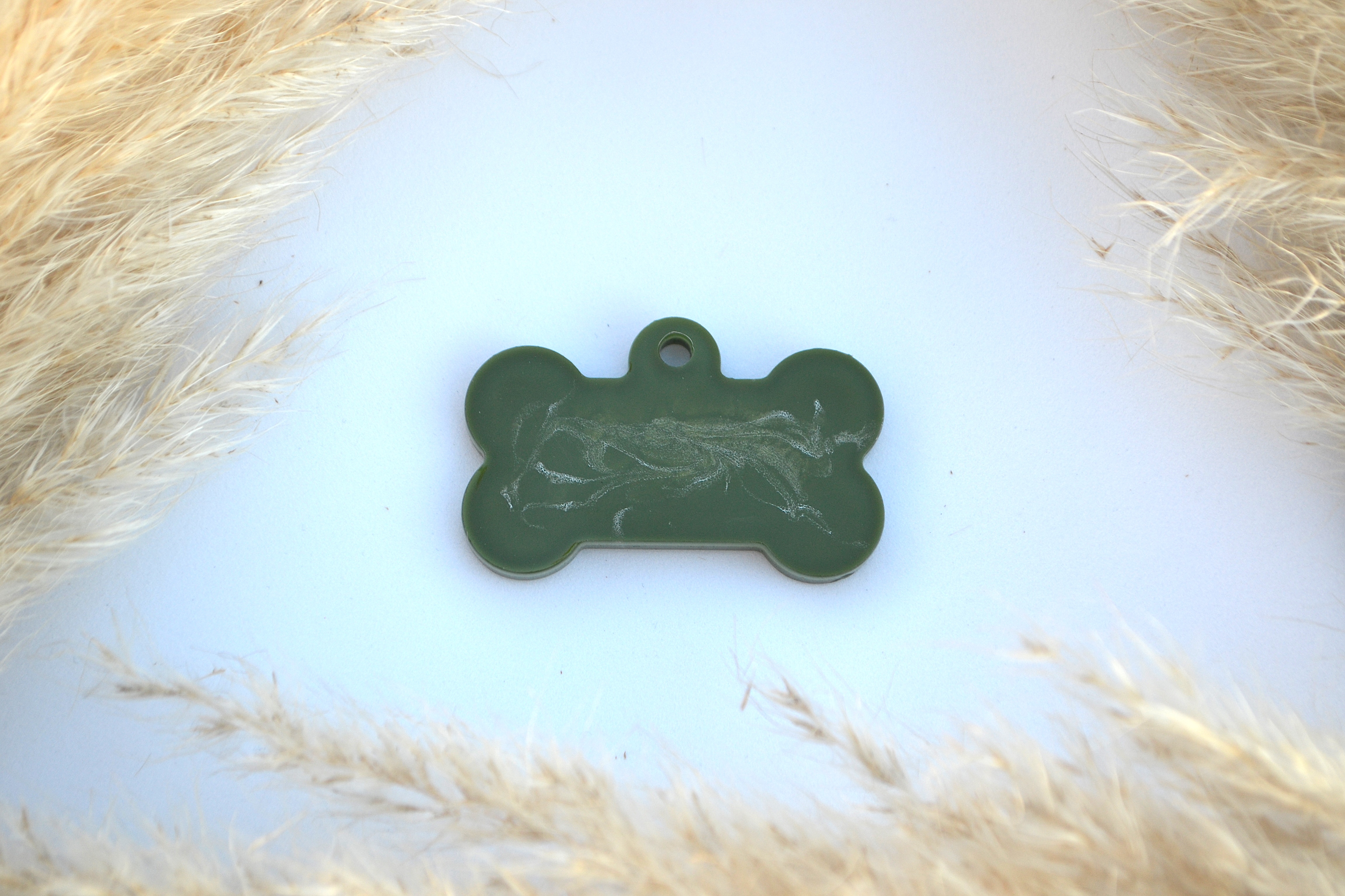 🔹 De fleste vælger at få hundens navn på forsiden – og ejers navn, adresse og telefonnummer på bagsiden.