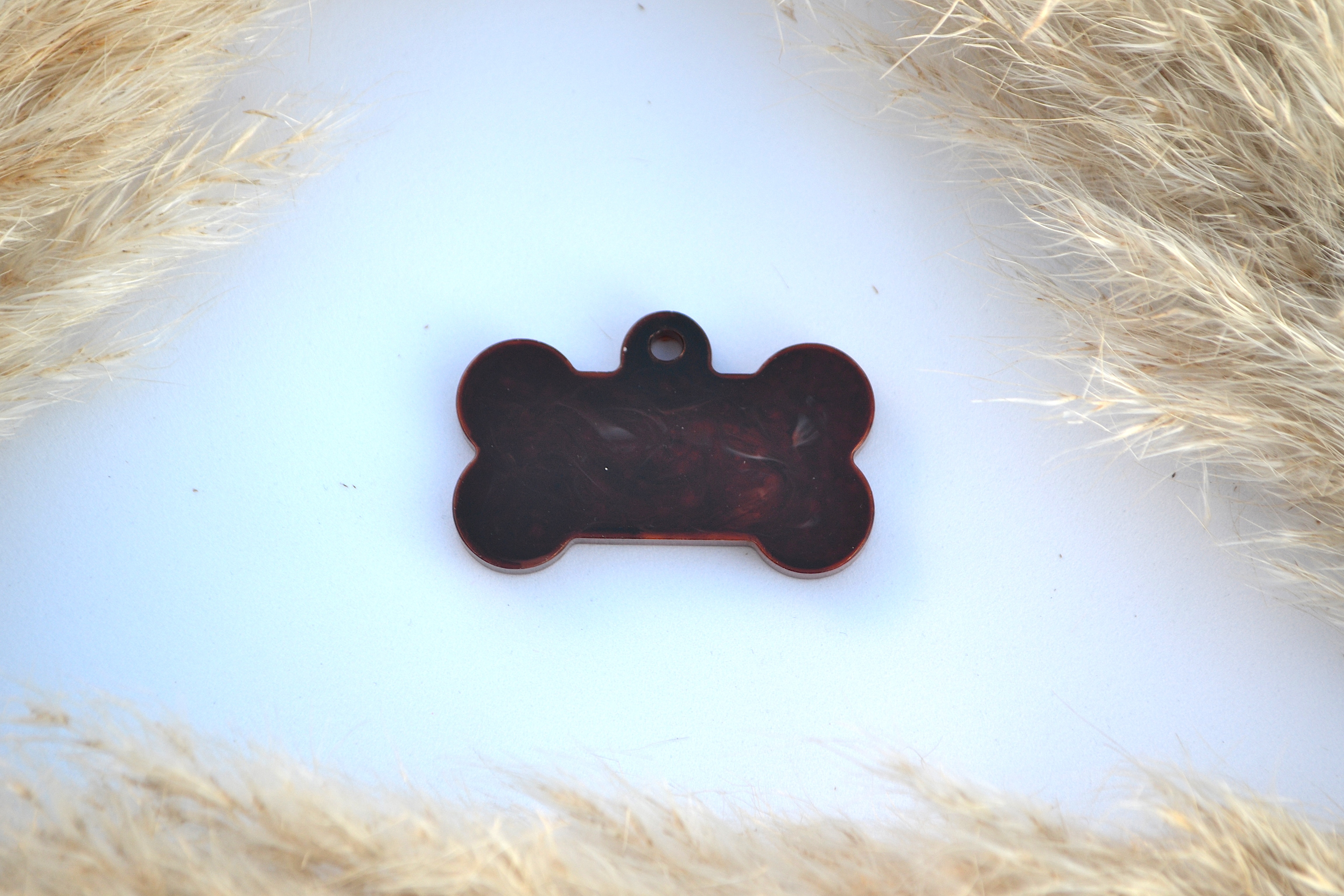 🔹 De fleste vælger at få hundens navn på forsiden – og ejers navn, adresse og telefonnummer på bagsiden.