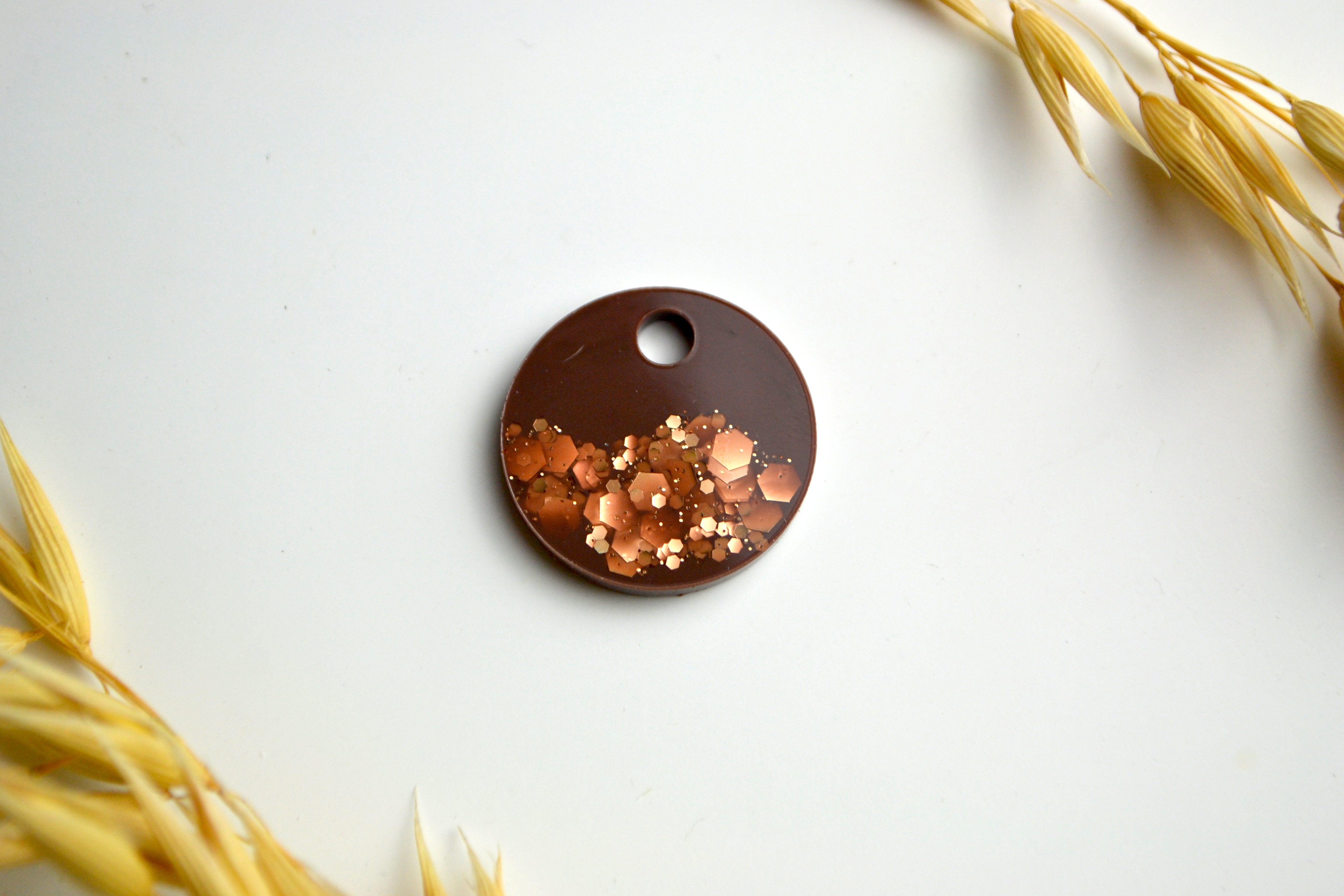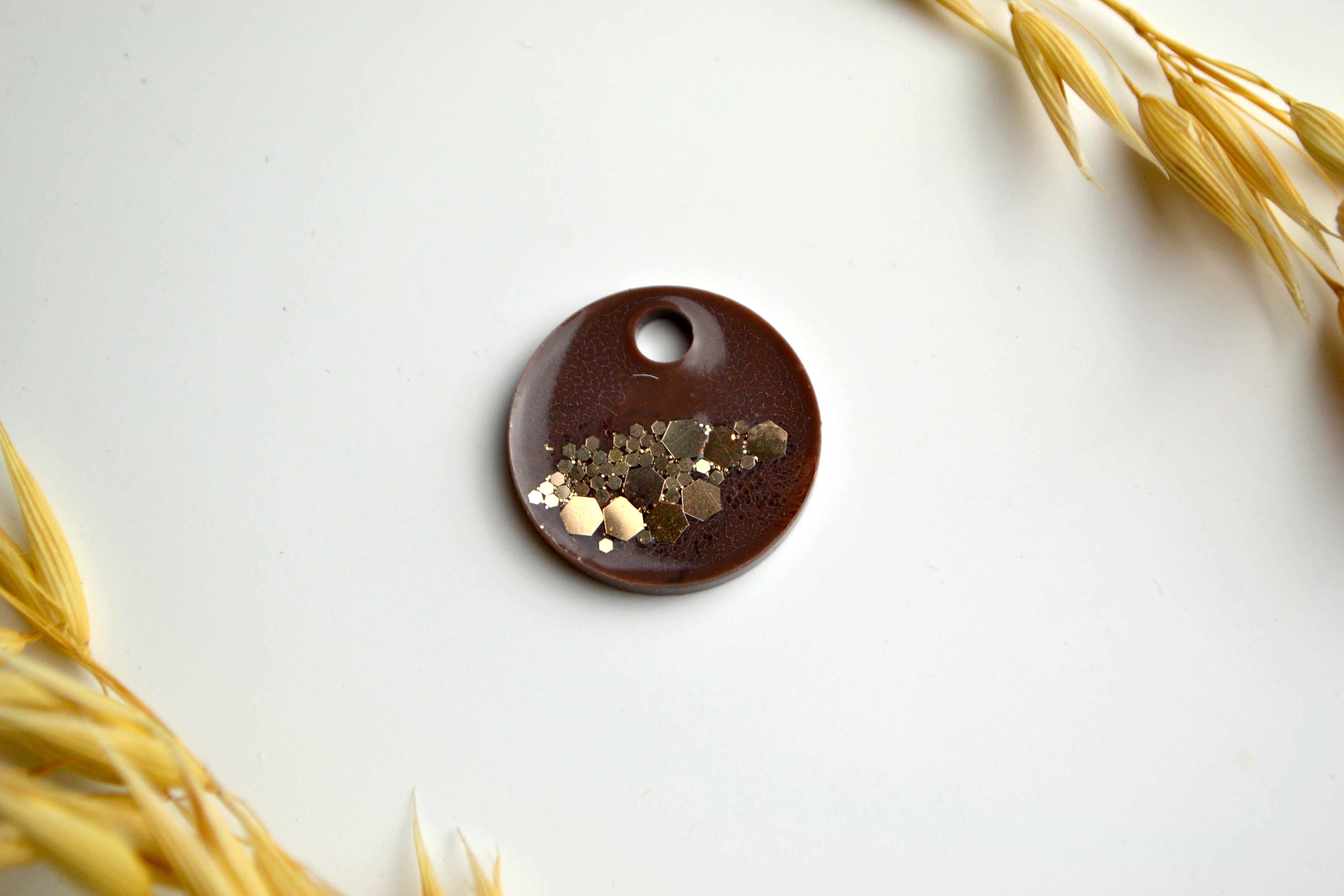 hundetegn, lille rund, brun med guld flager