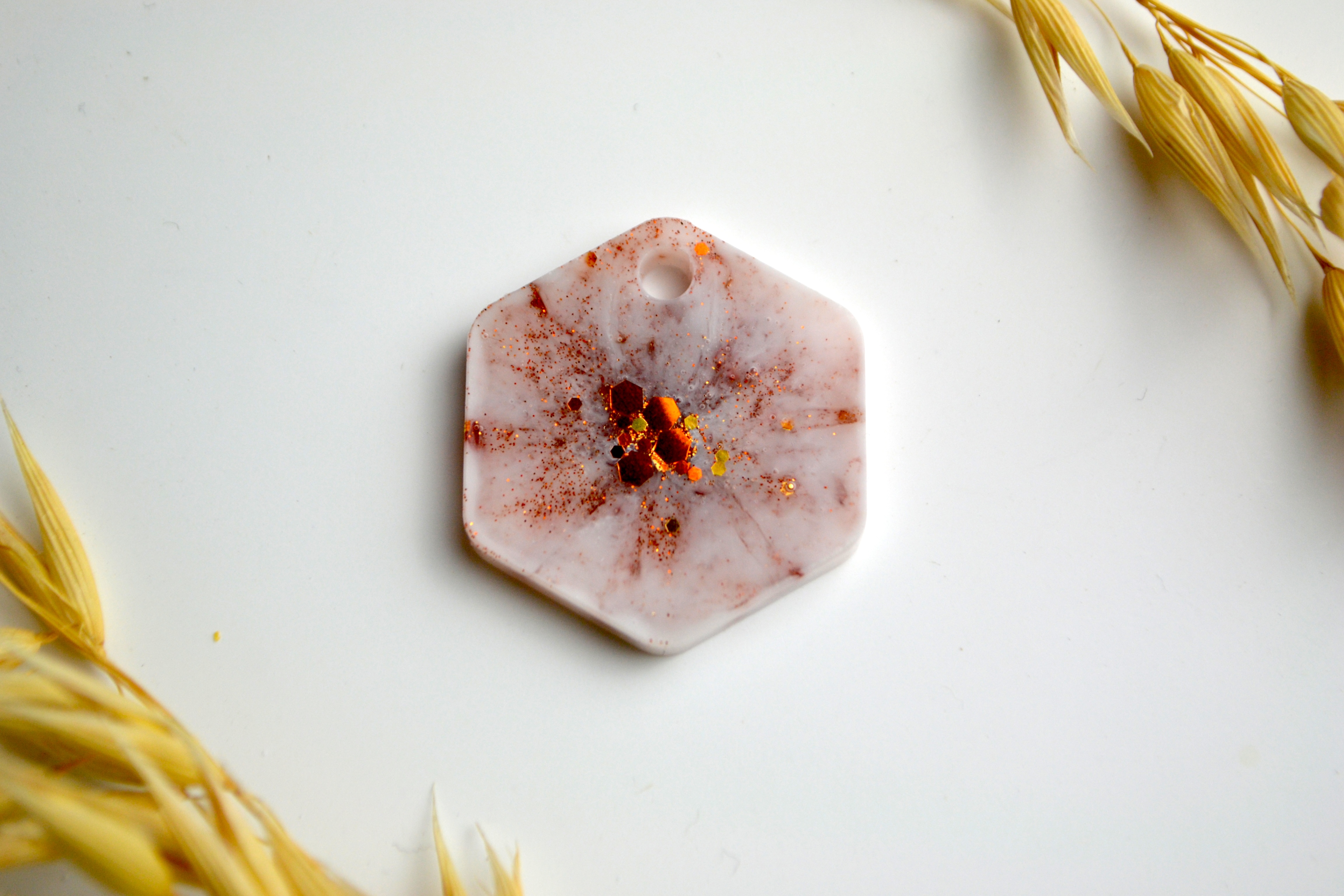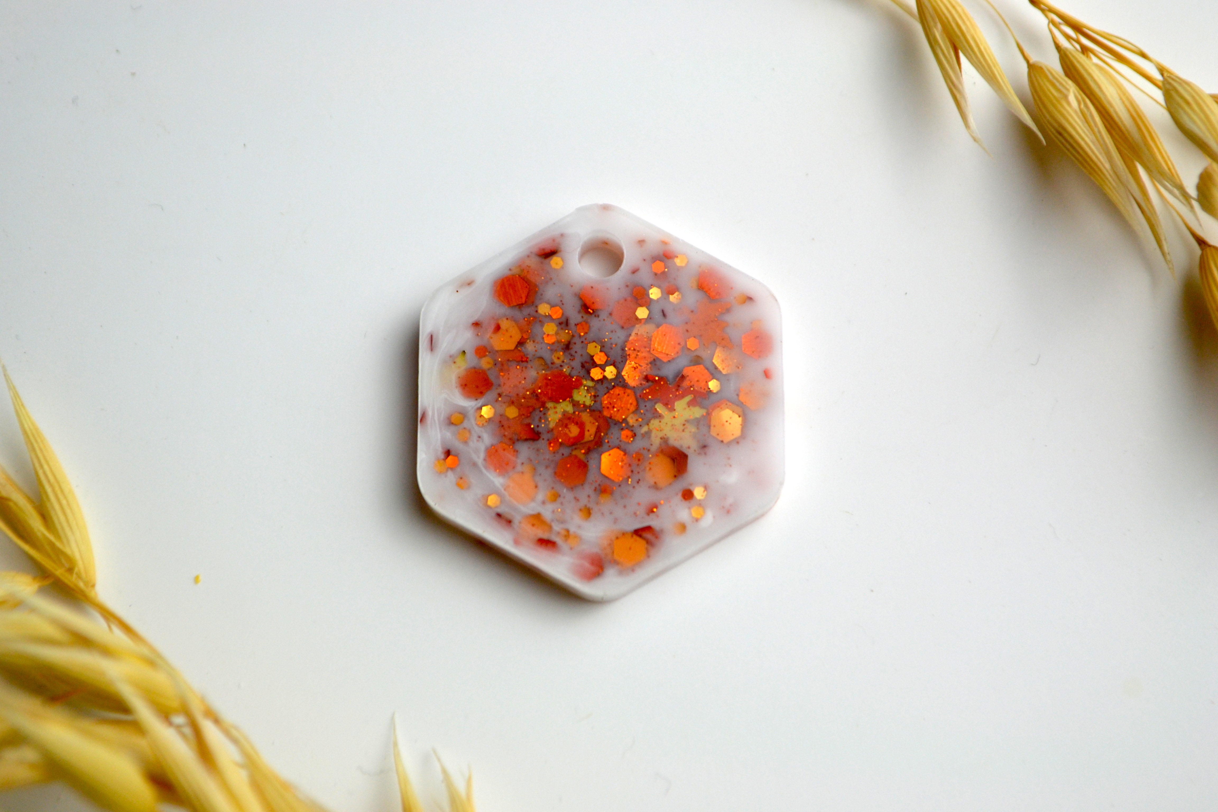 Hundetegn, mellem hexagon, hvid med glitter blade