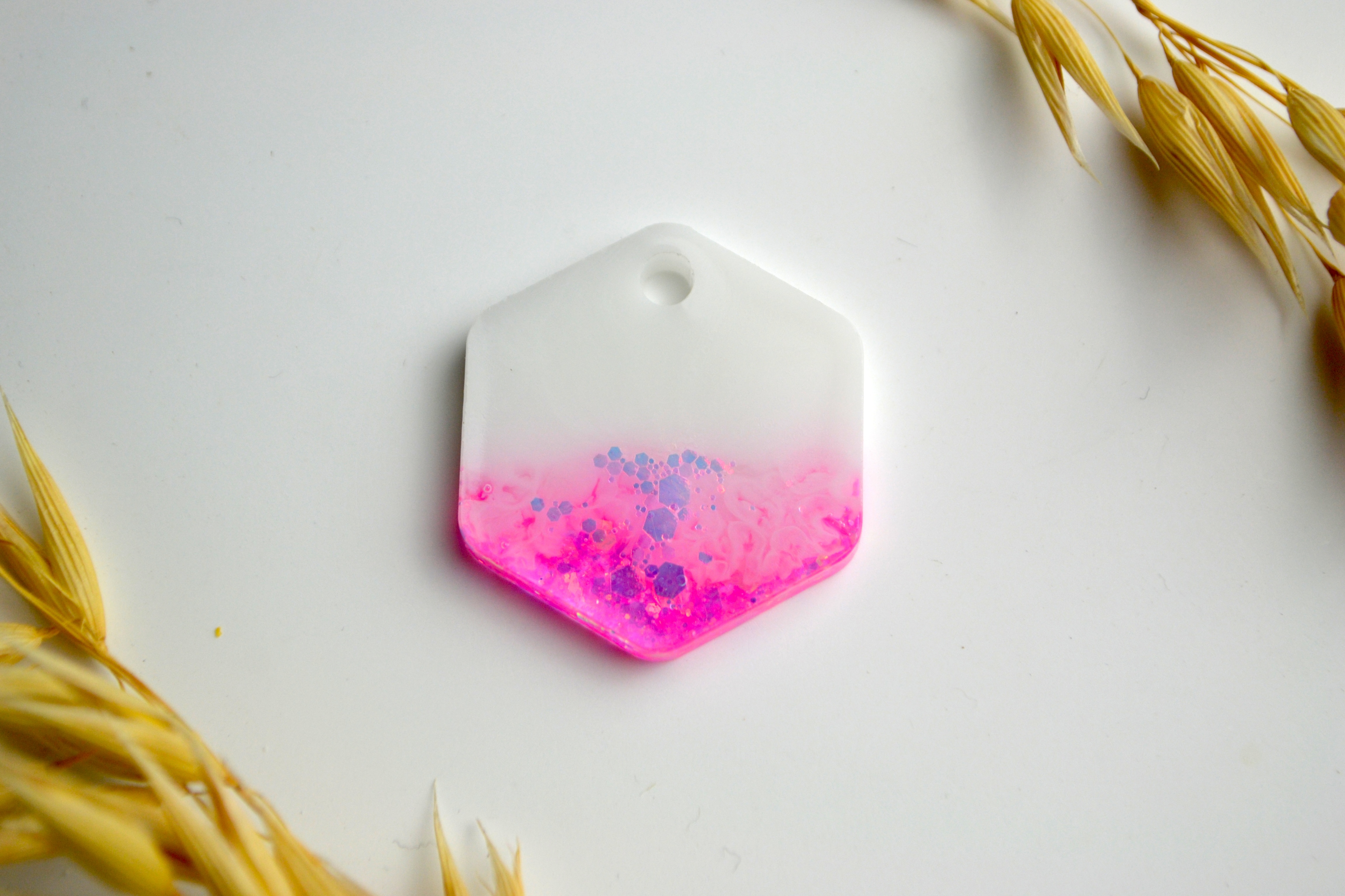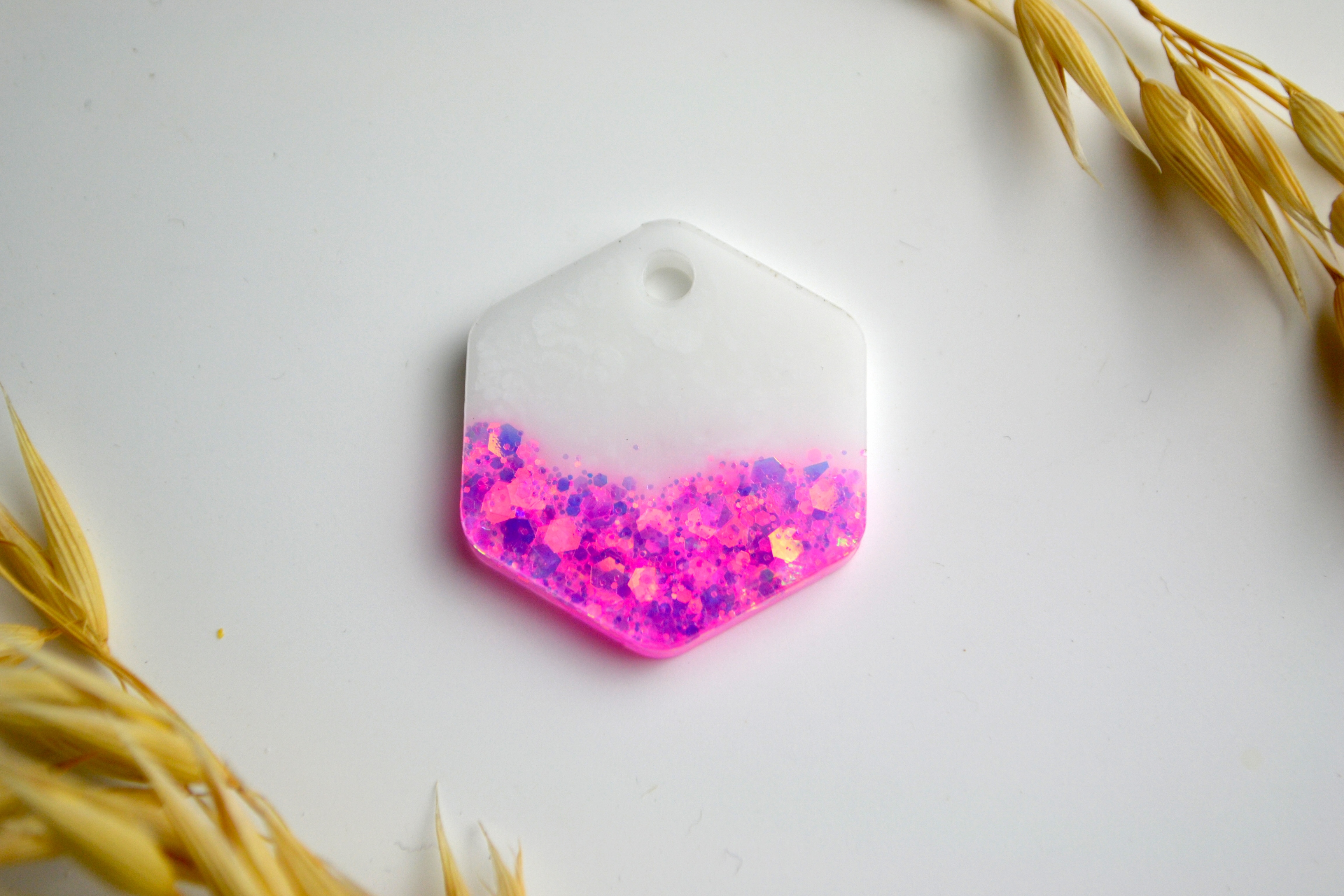 Hundetegn, mellem hexagon, pink glitter med hvid