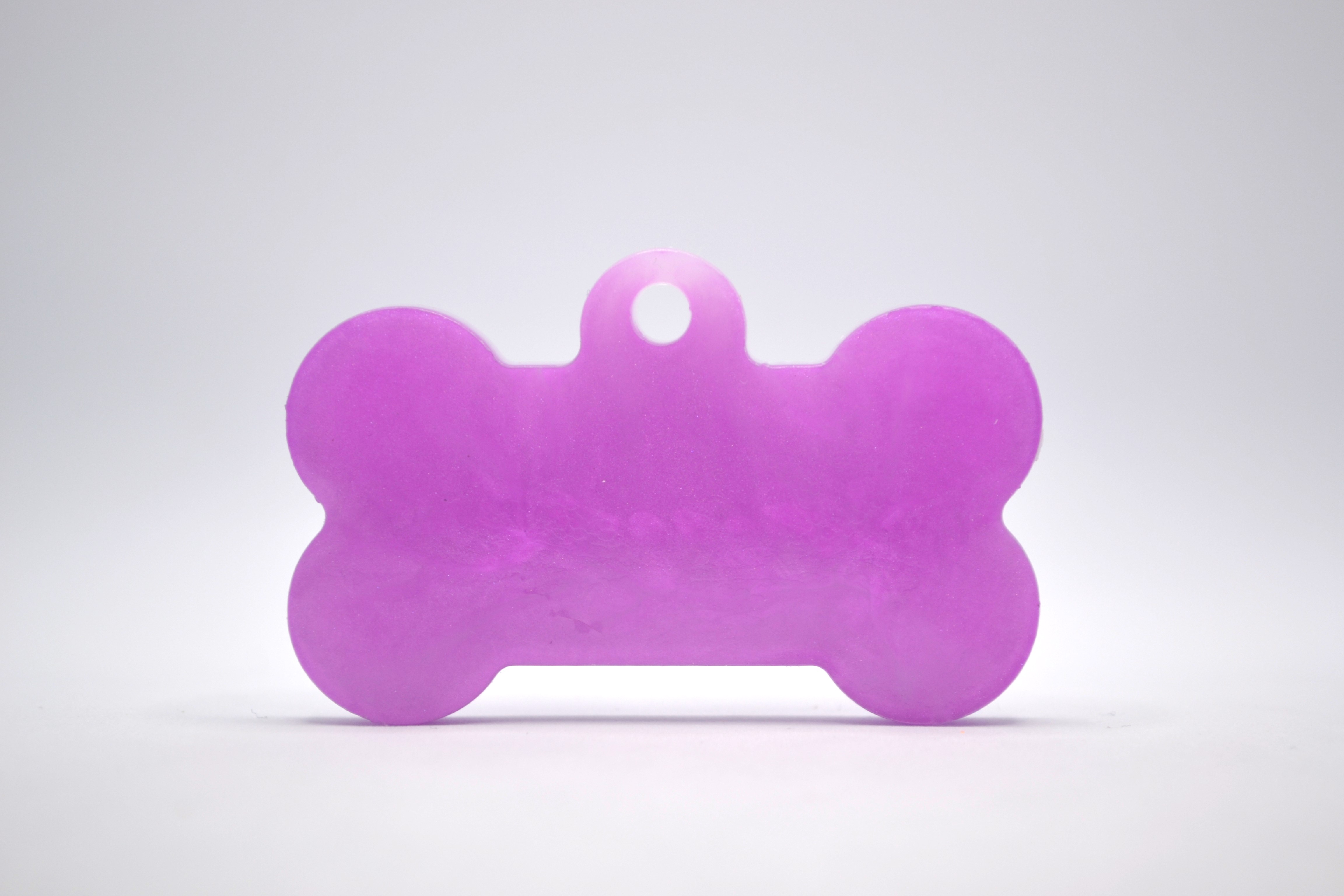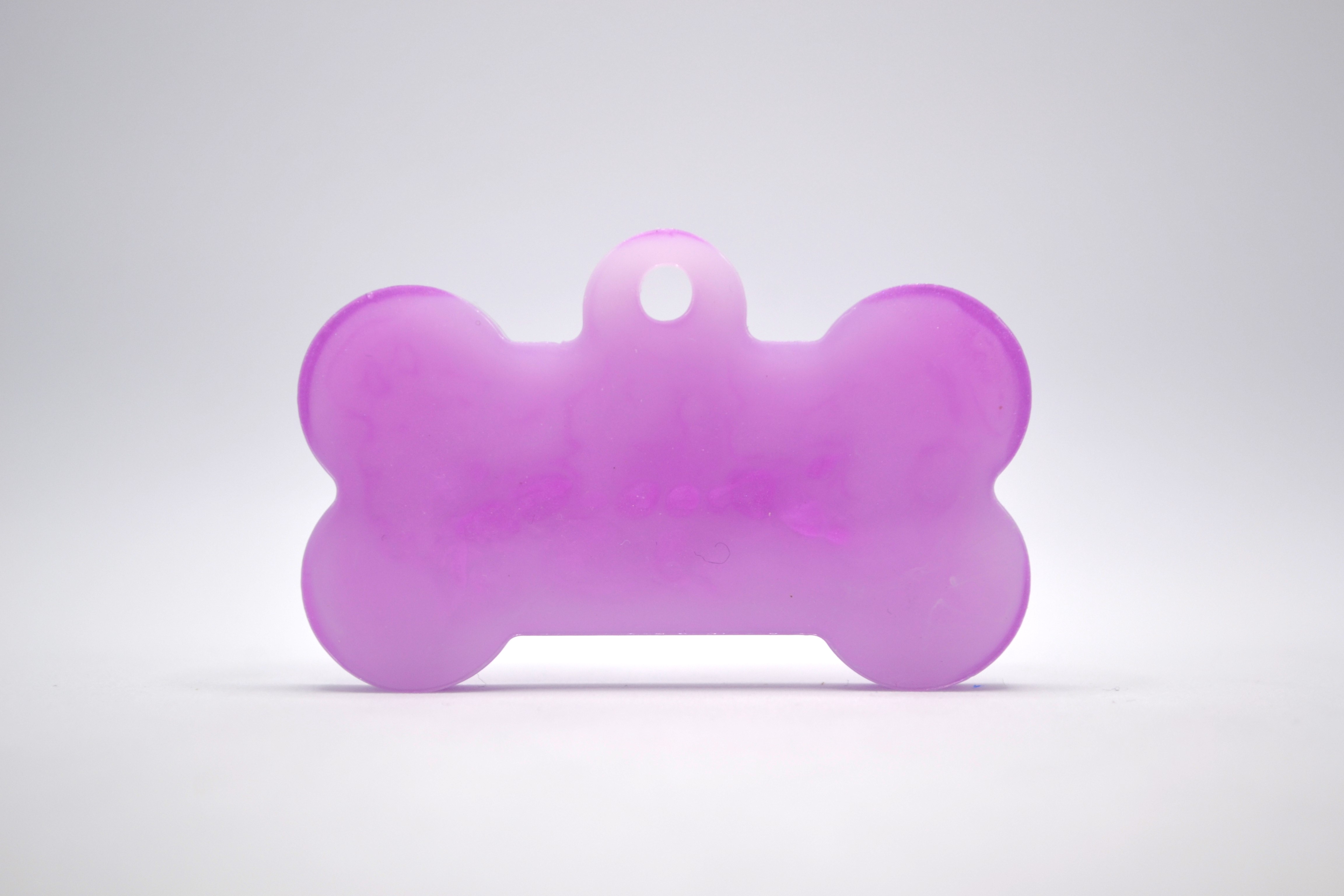 🔹 De fleste vælger at få hundens navn på forsiden – og ejers navn, adresse og telefonnummer på bagsiden.