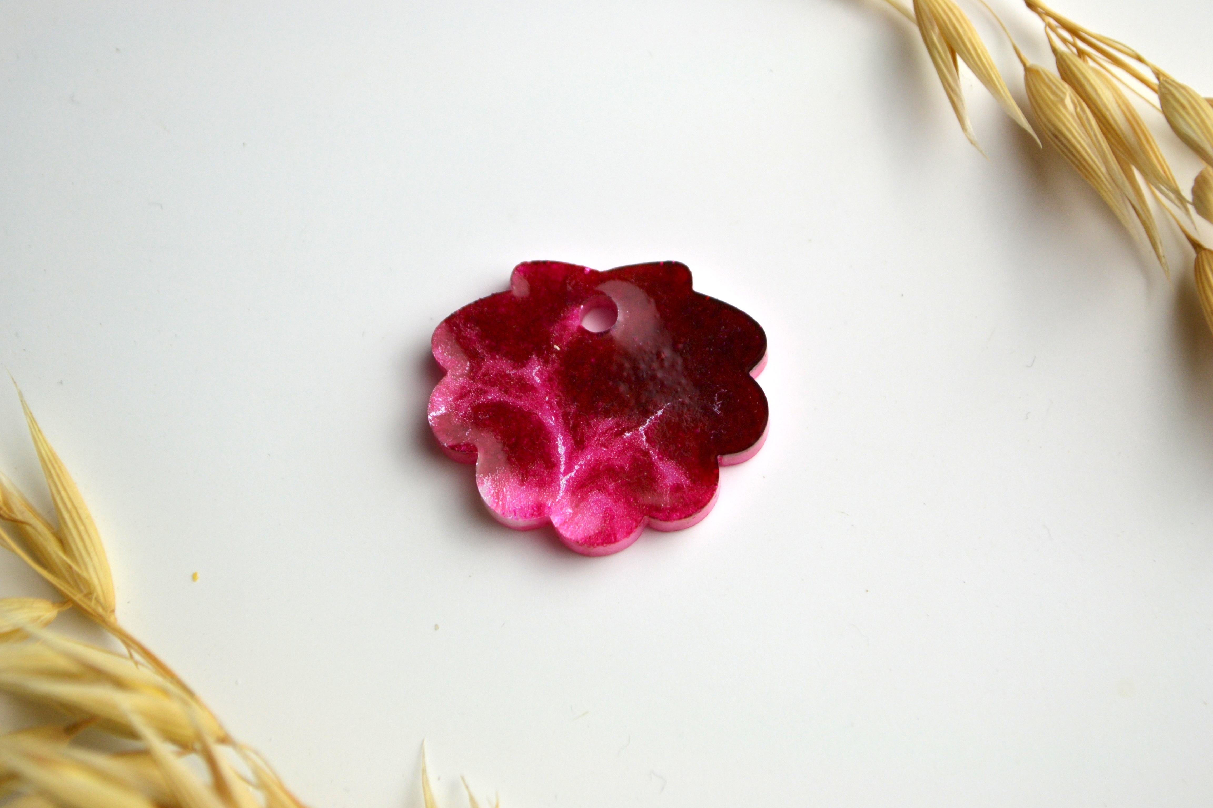 Hundetegn, lille musling, pink og hvid shimmer