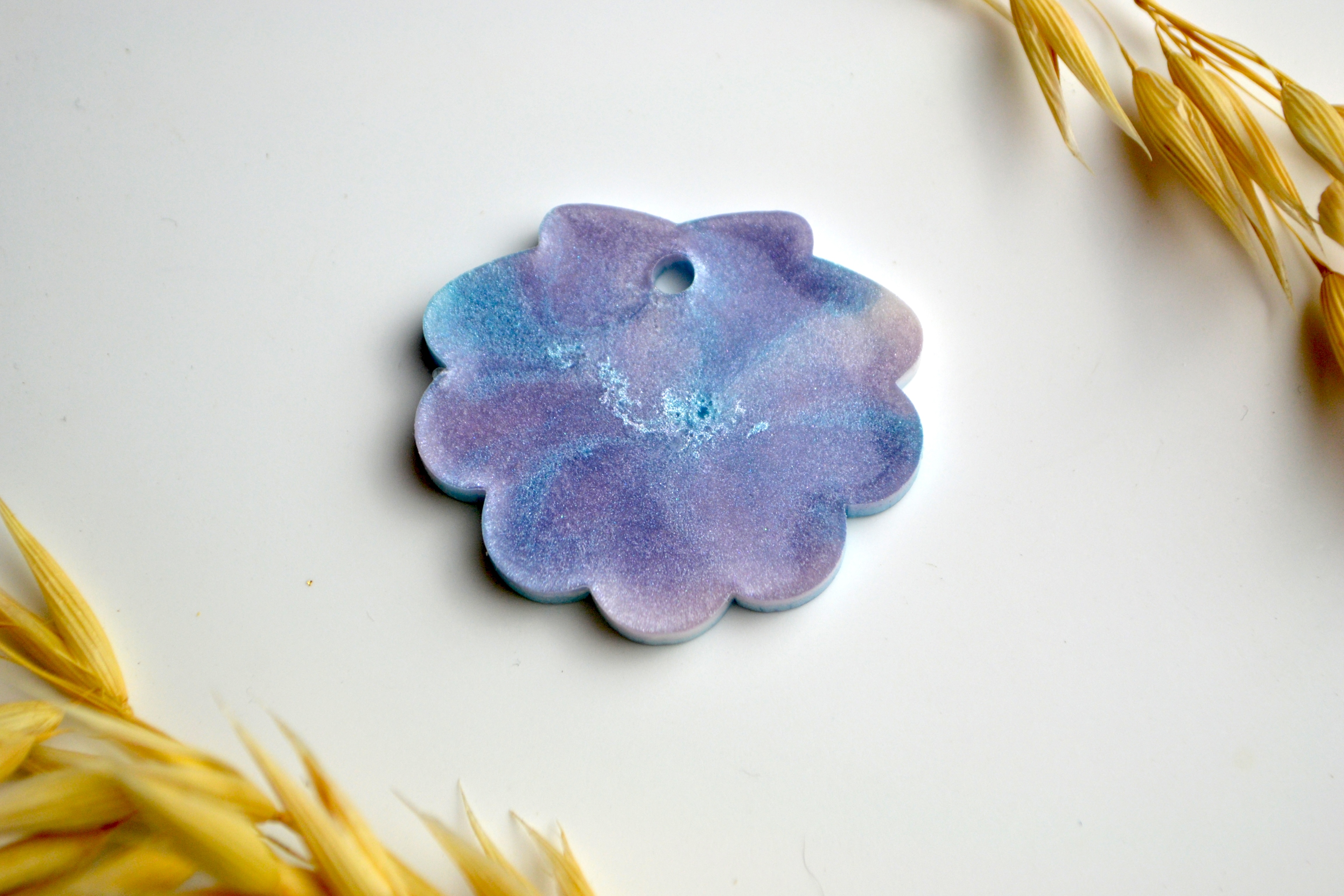 Hundetegn, stor musling, blå og lilla shimmer
