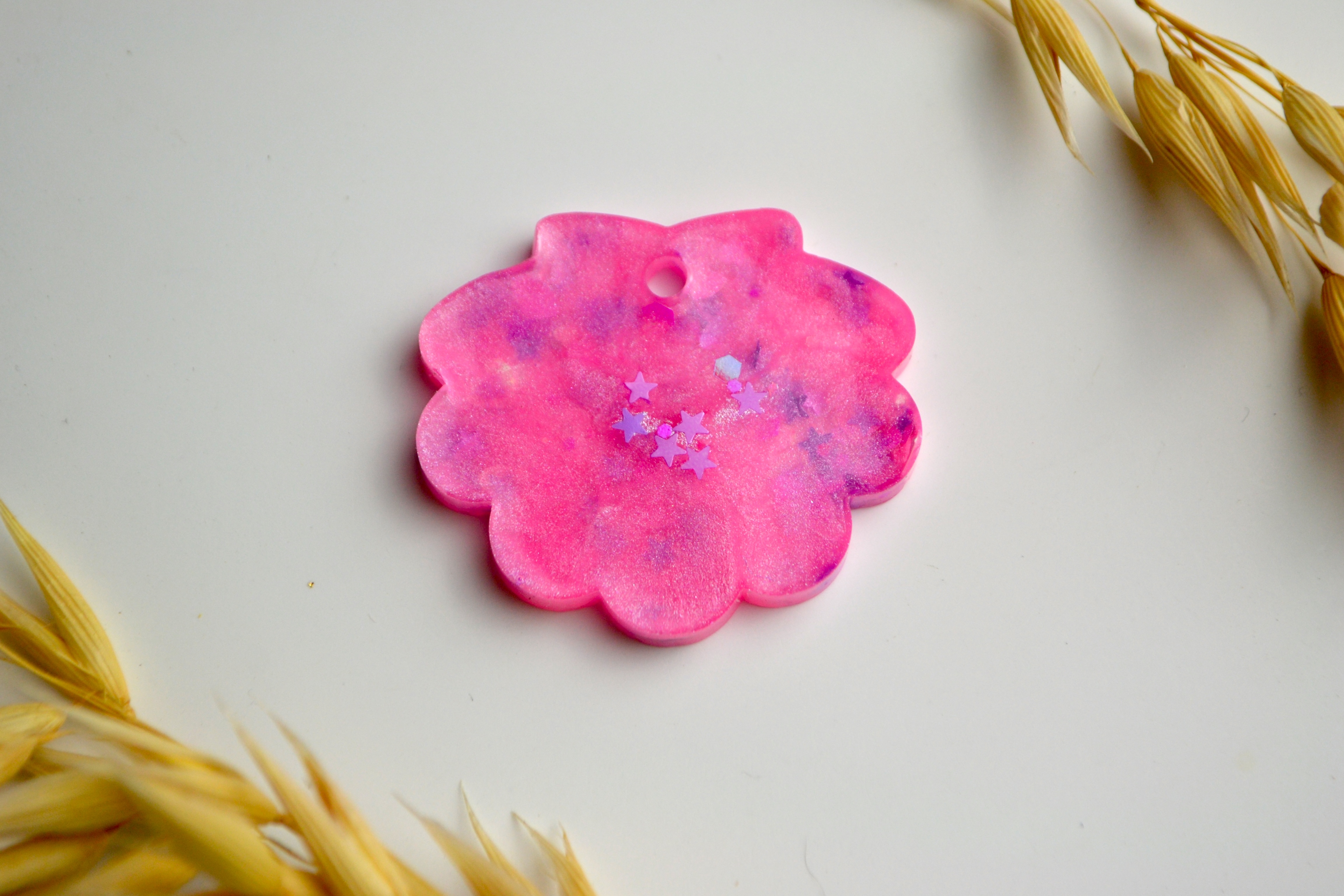 Hundetegn, stor musling, lyserød shimmer med glitter og hjerter