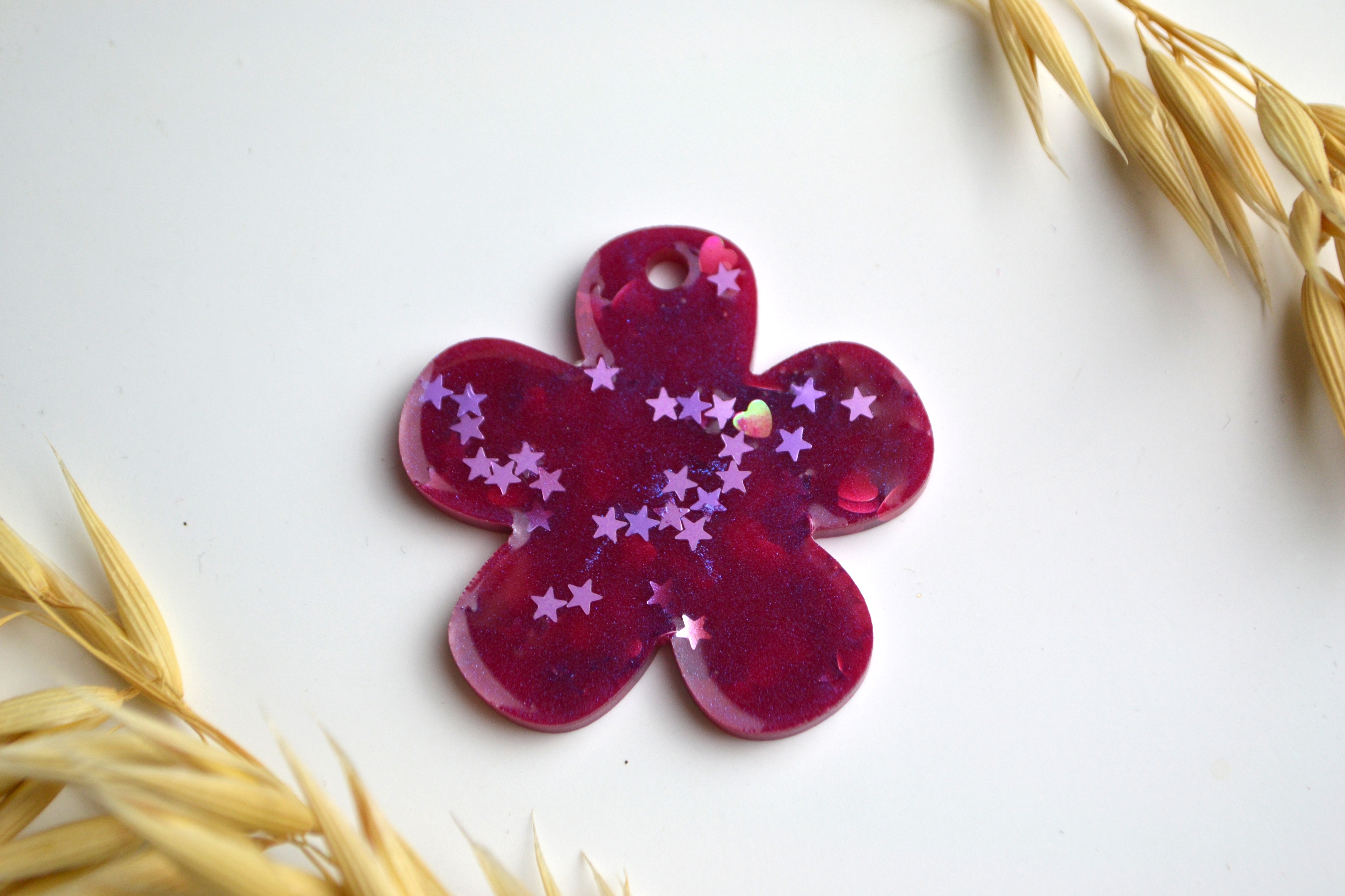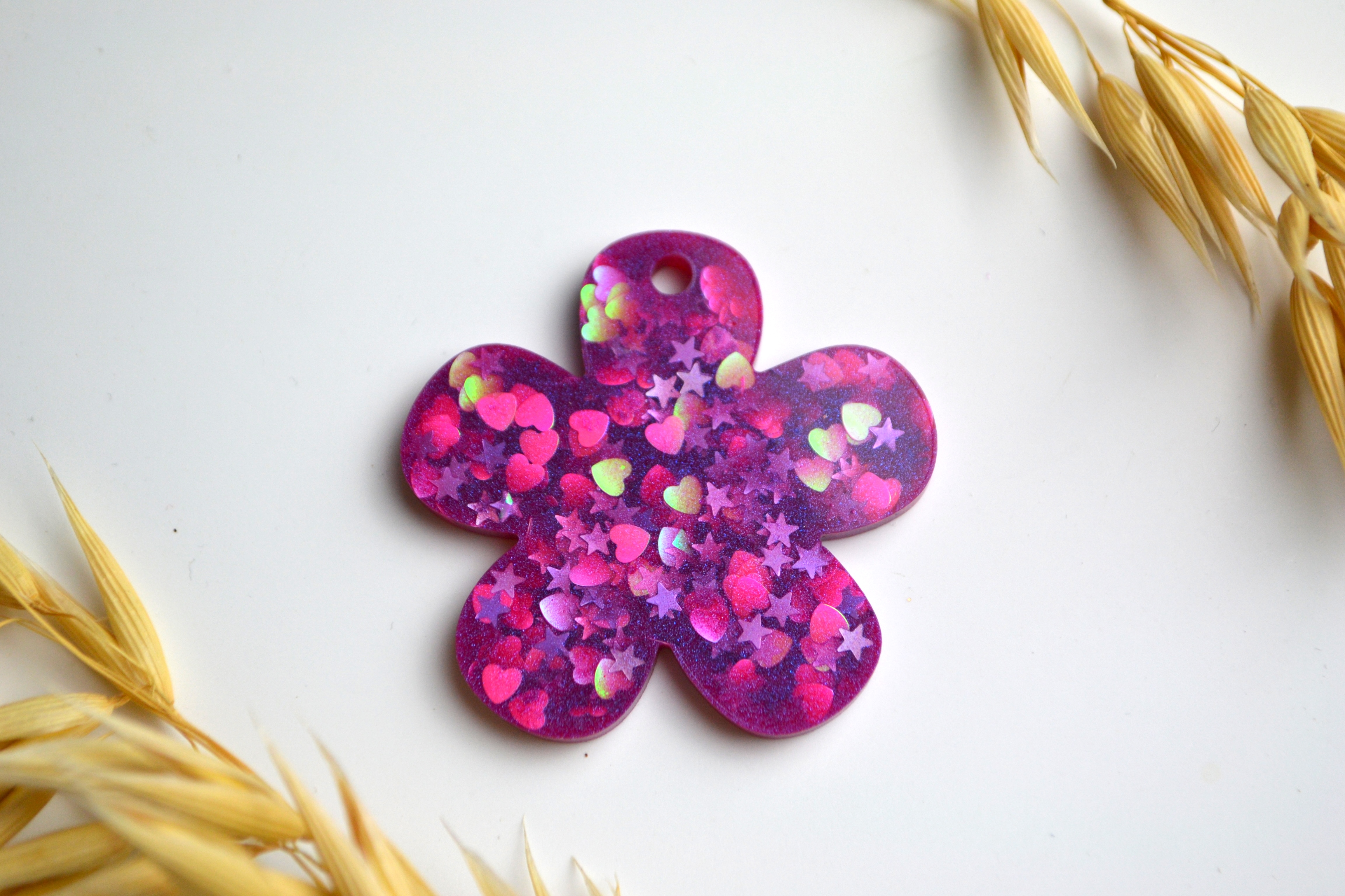 Hundetegn, stor blomst, rosa med hjerter og stjerner
