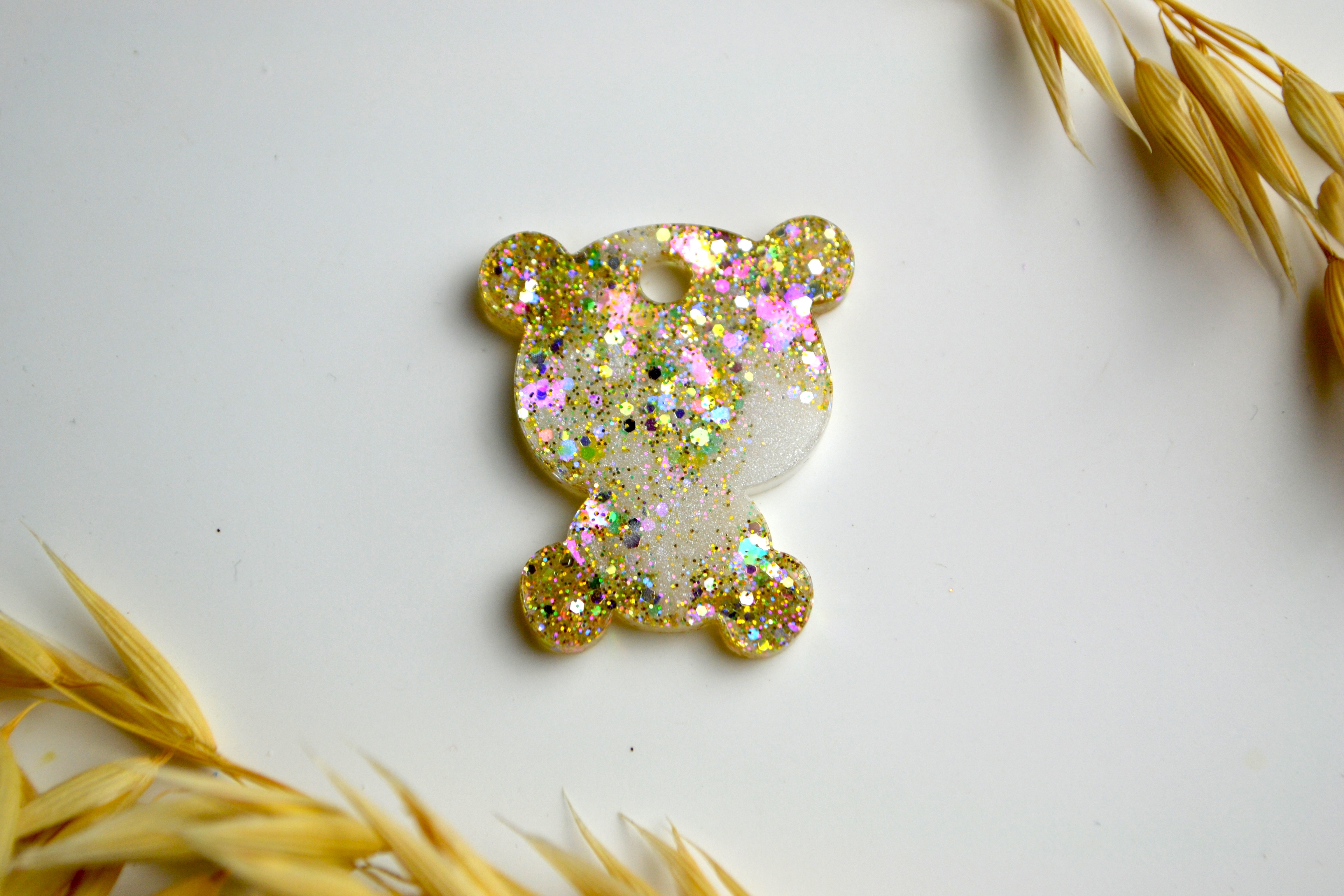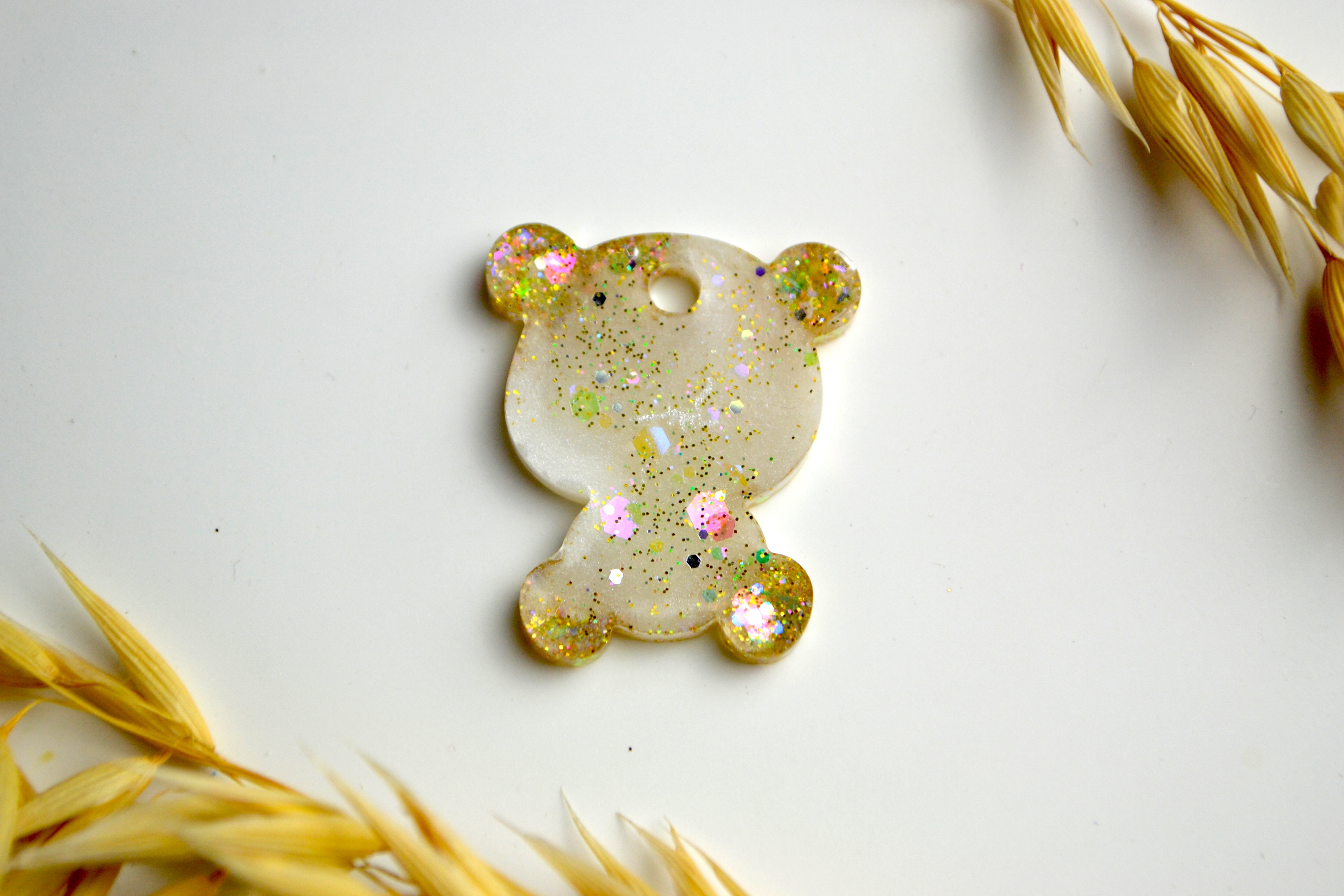 Hundetegn, lille bjørn, perlemor shimmer med glitter