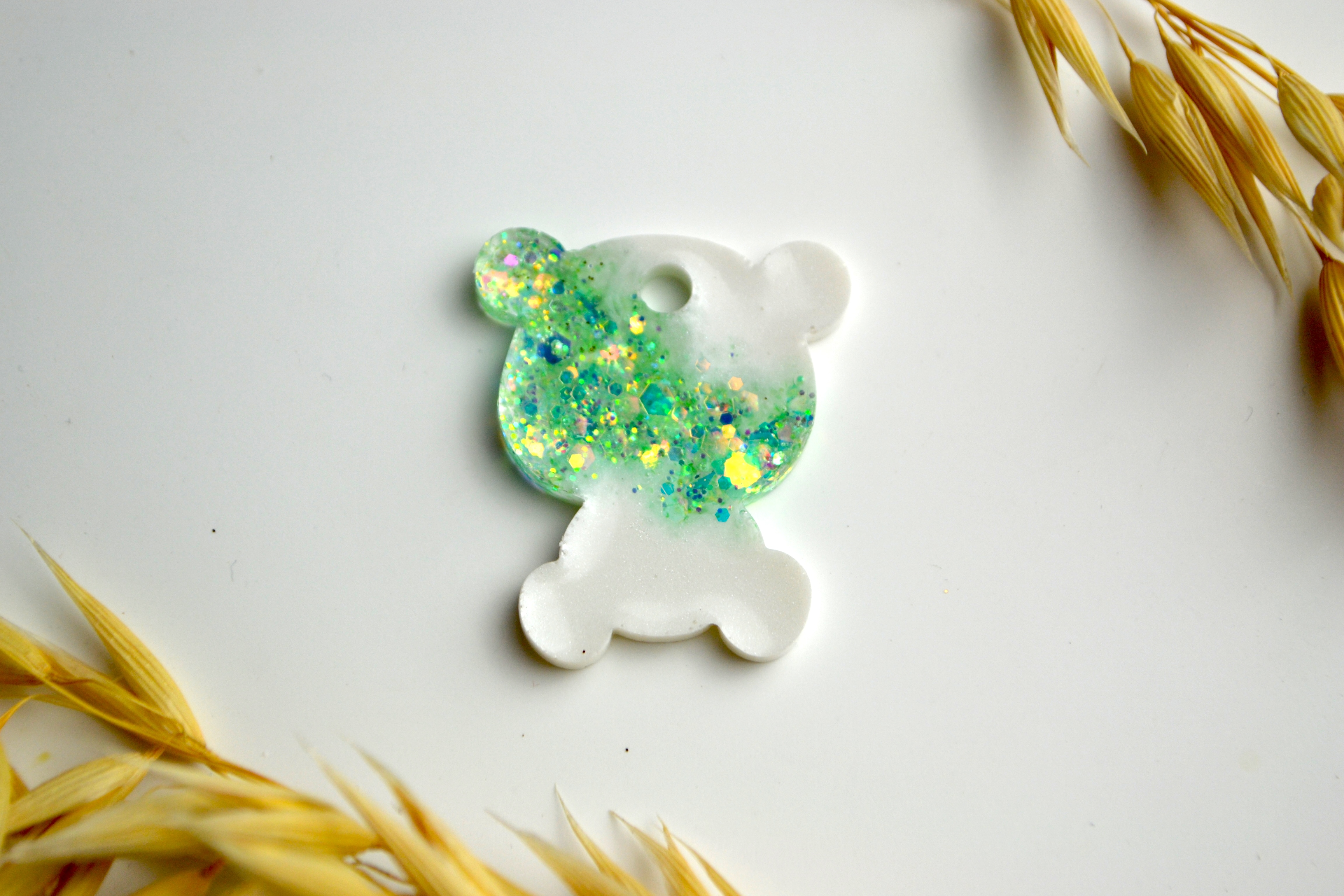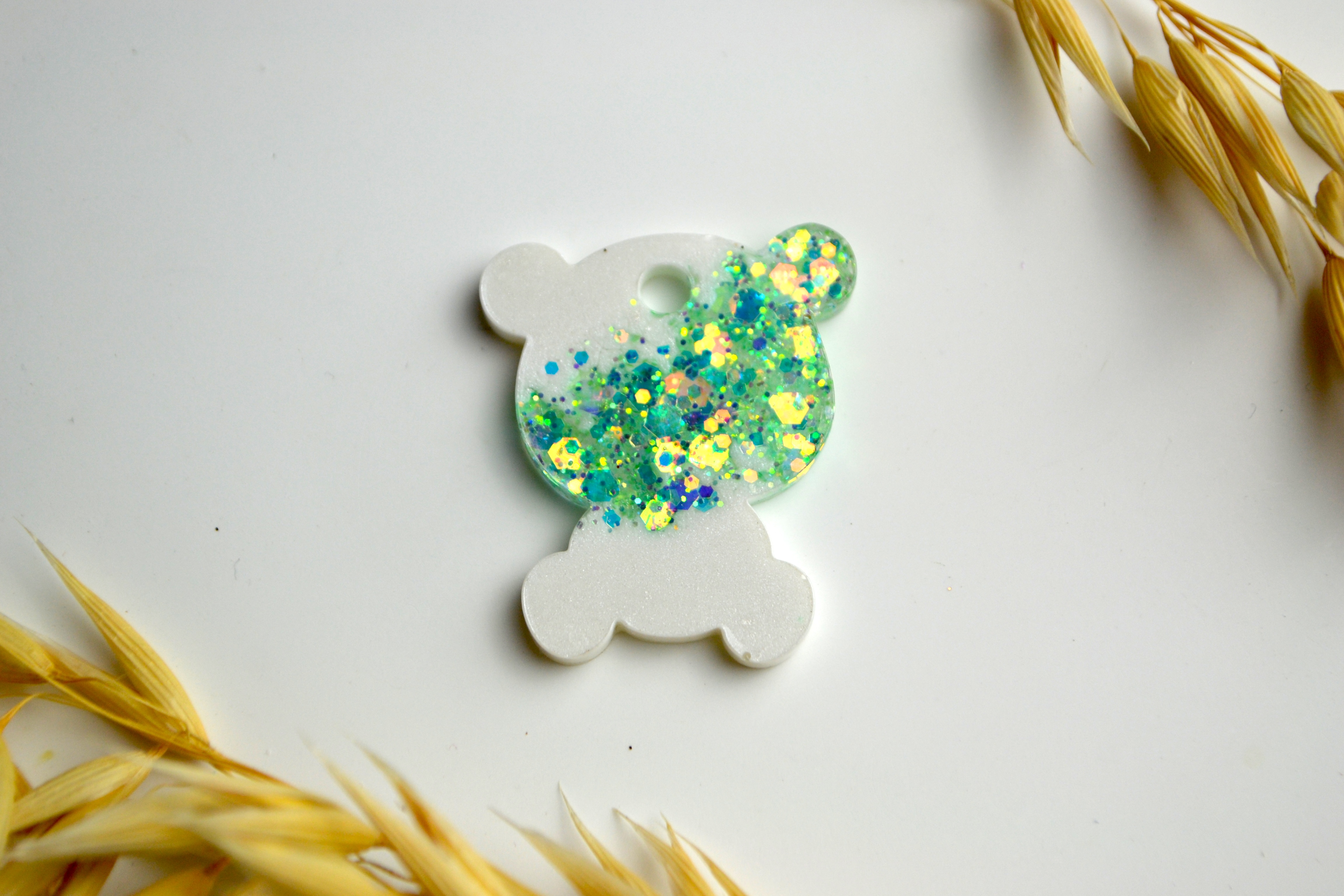 Hundetegn, lille bjørn,perlemor shimmer med glitter