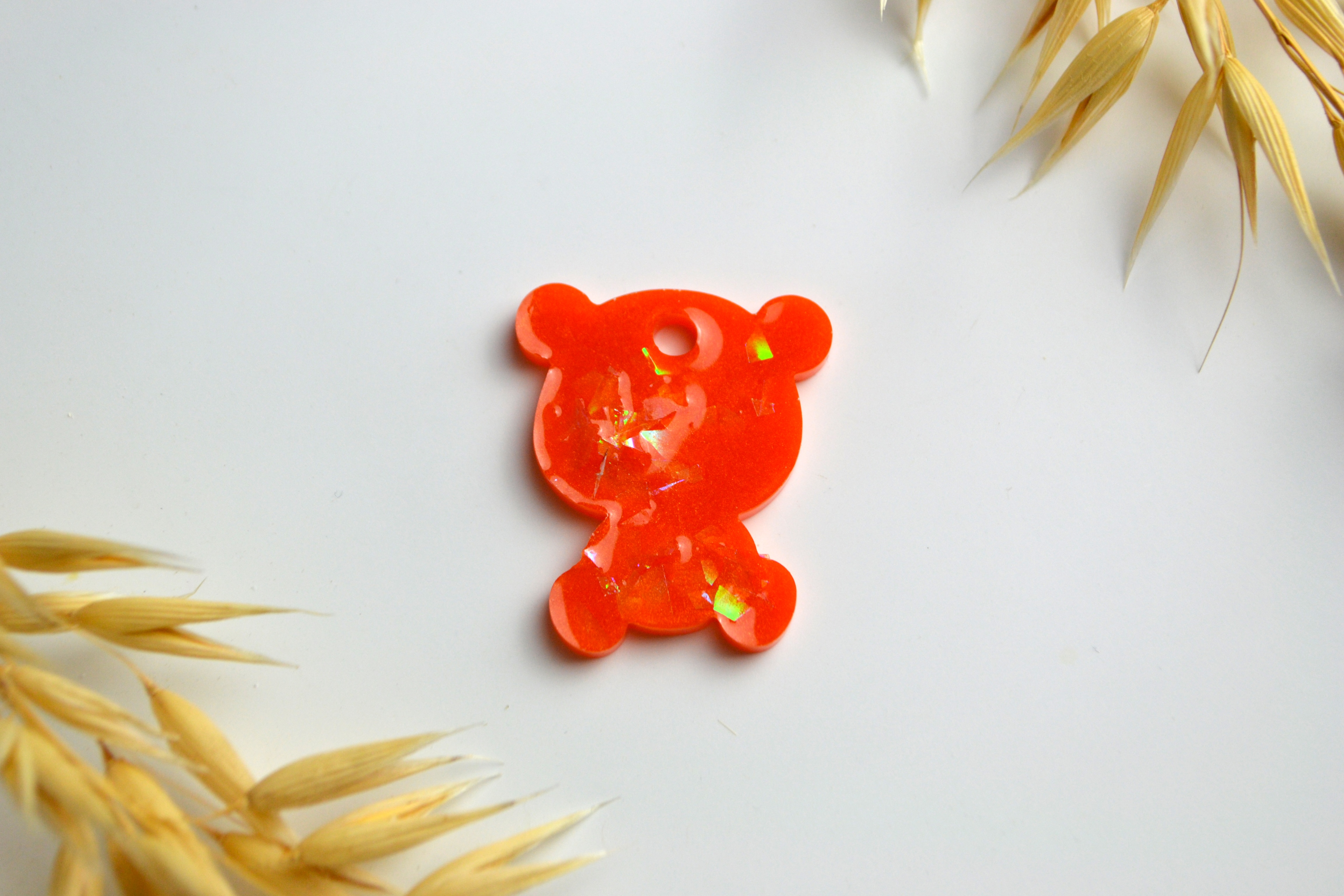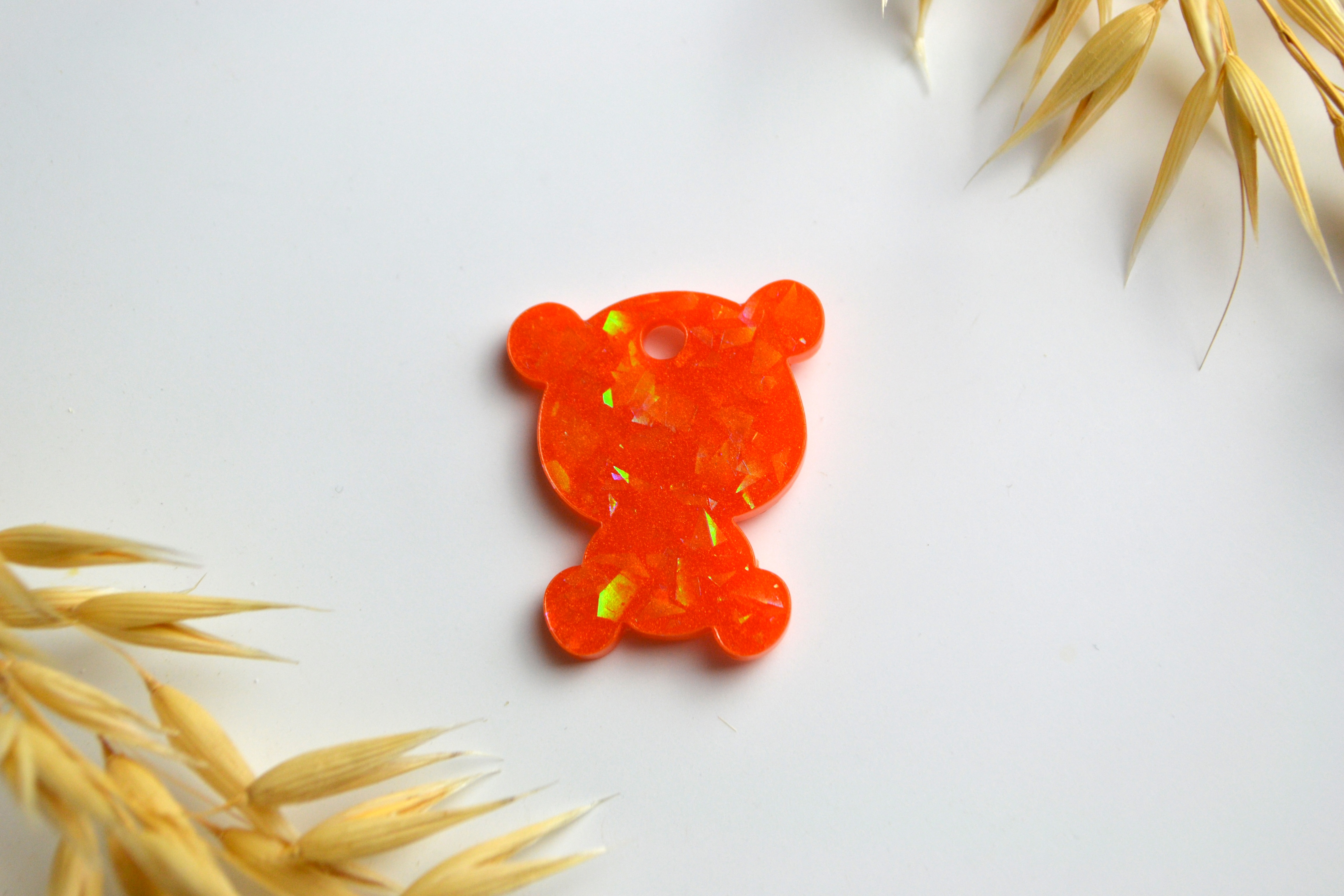 Hundetegn, lille bjørn, orange shimmer med holografiske flager