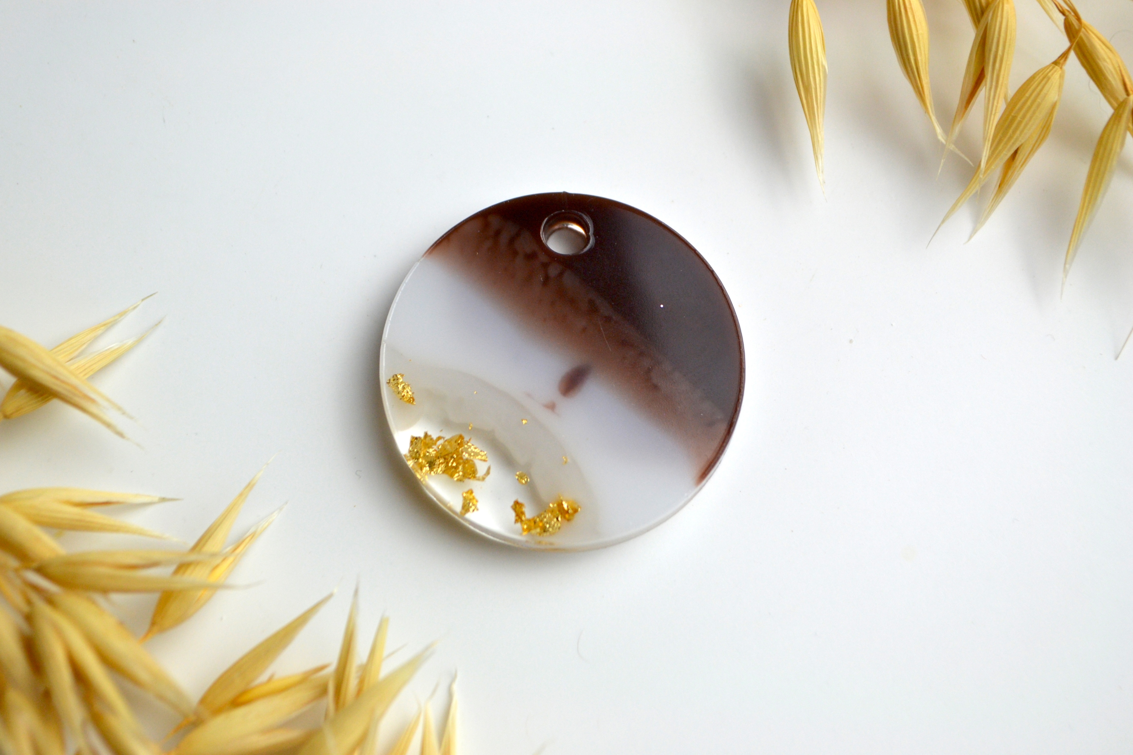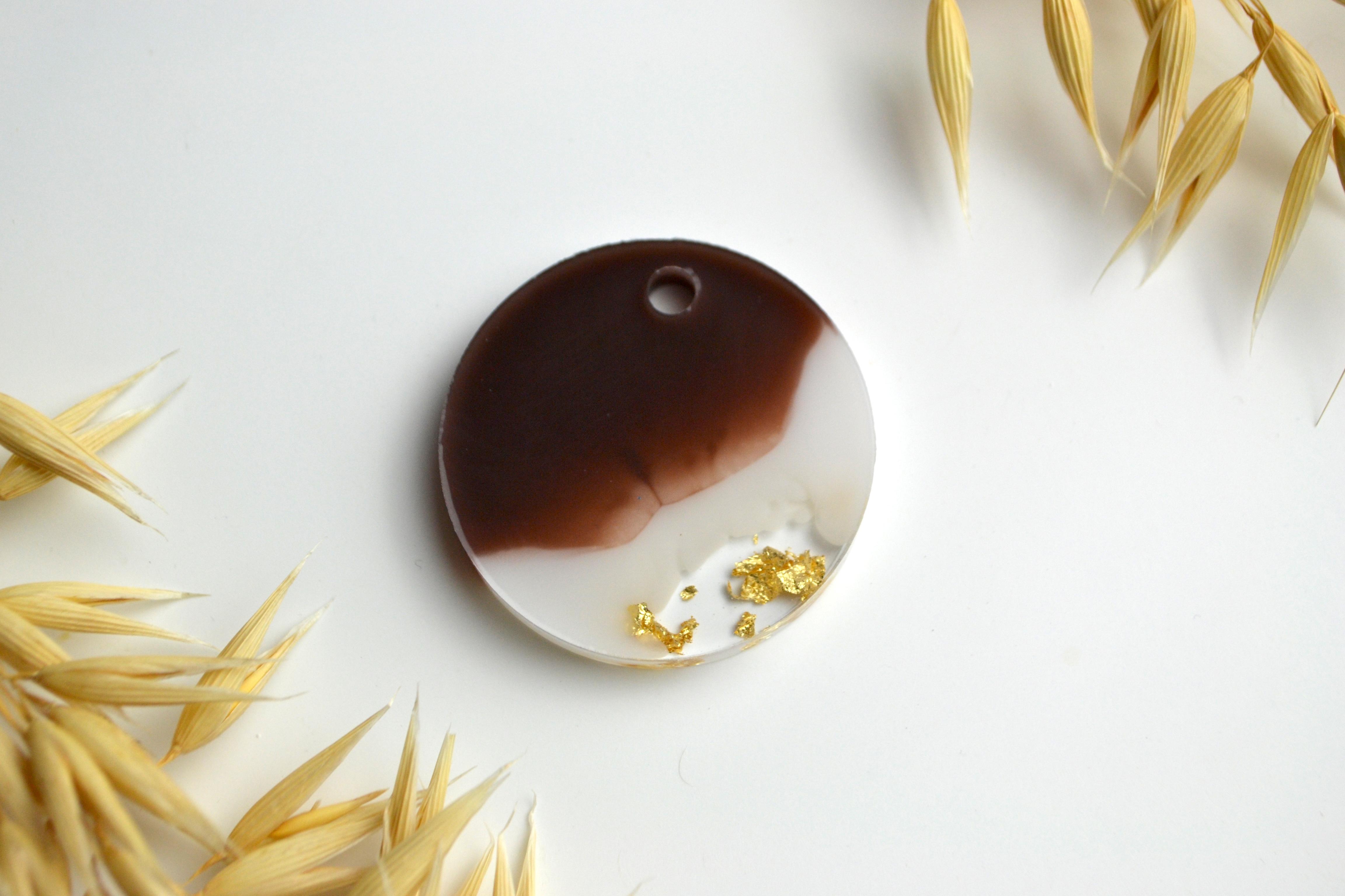 Hundetegn, stor rund, caramel, hvid, bladguld