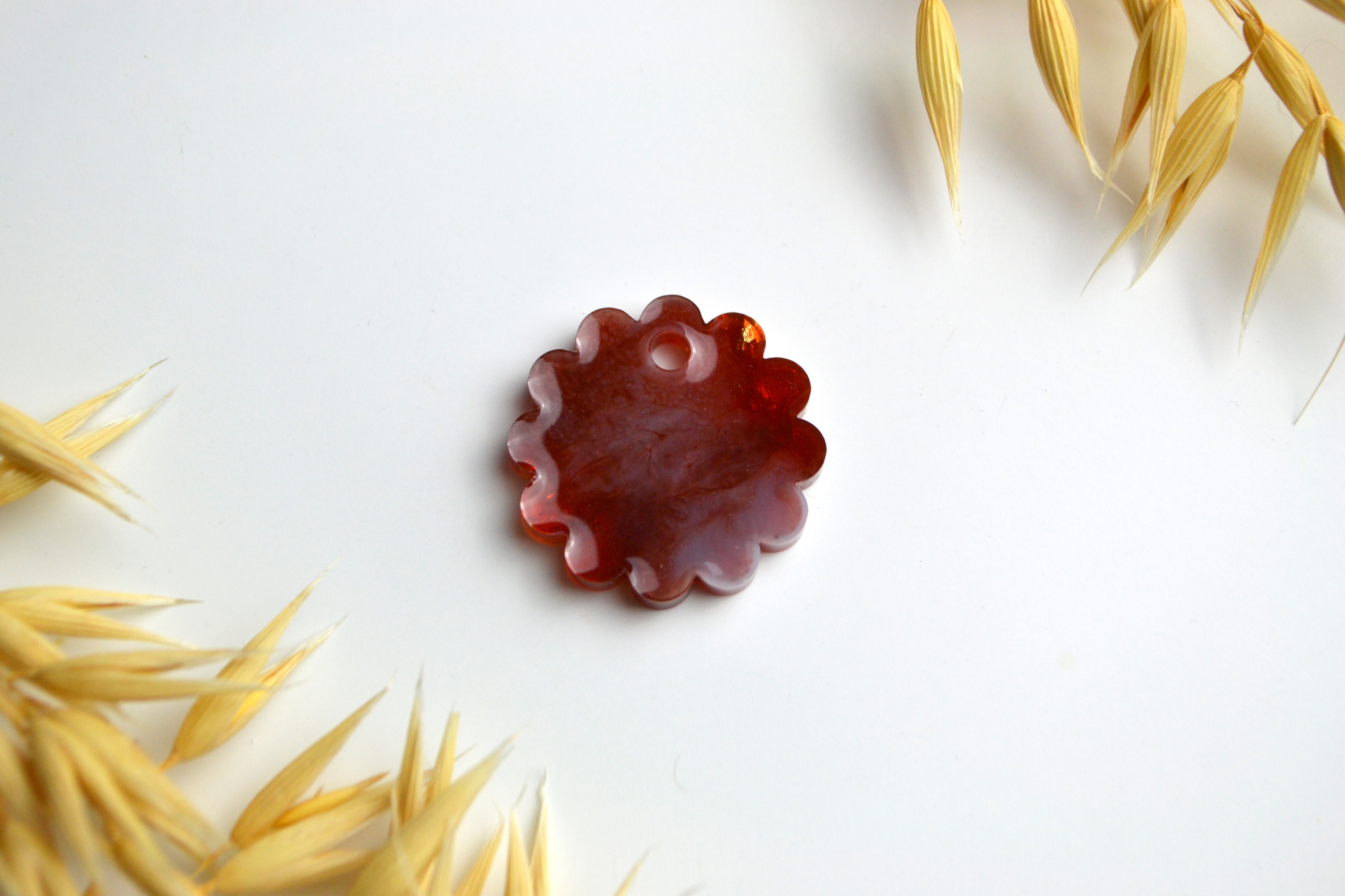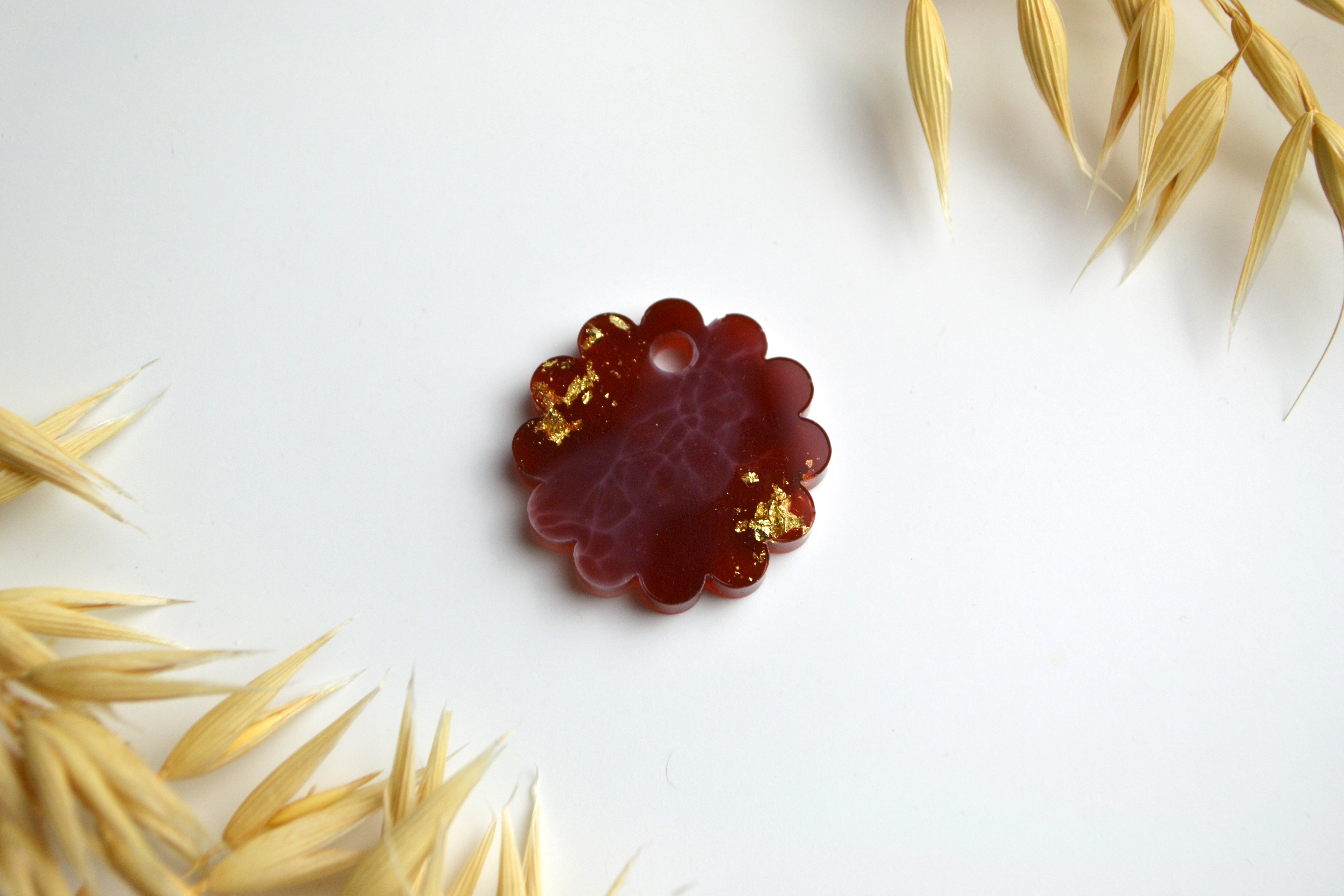 Hundetegn, lille bølget rund, caramel, hvid med bladguld