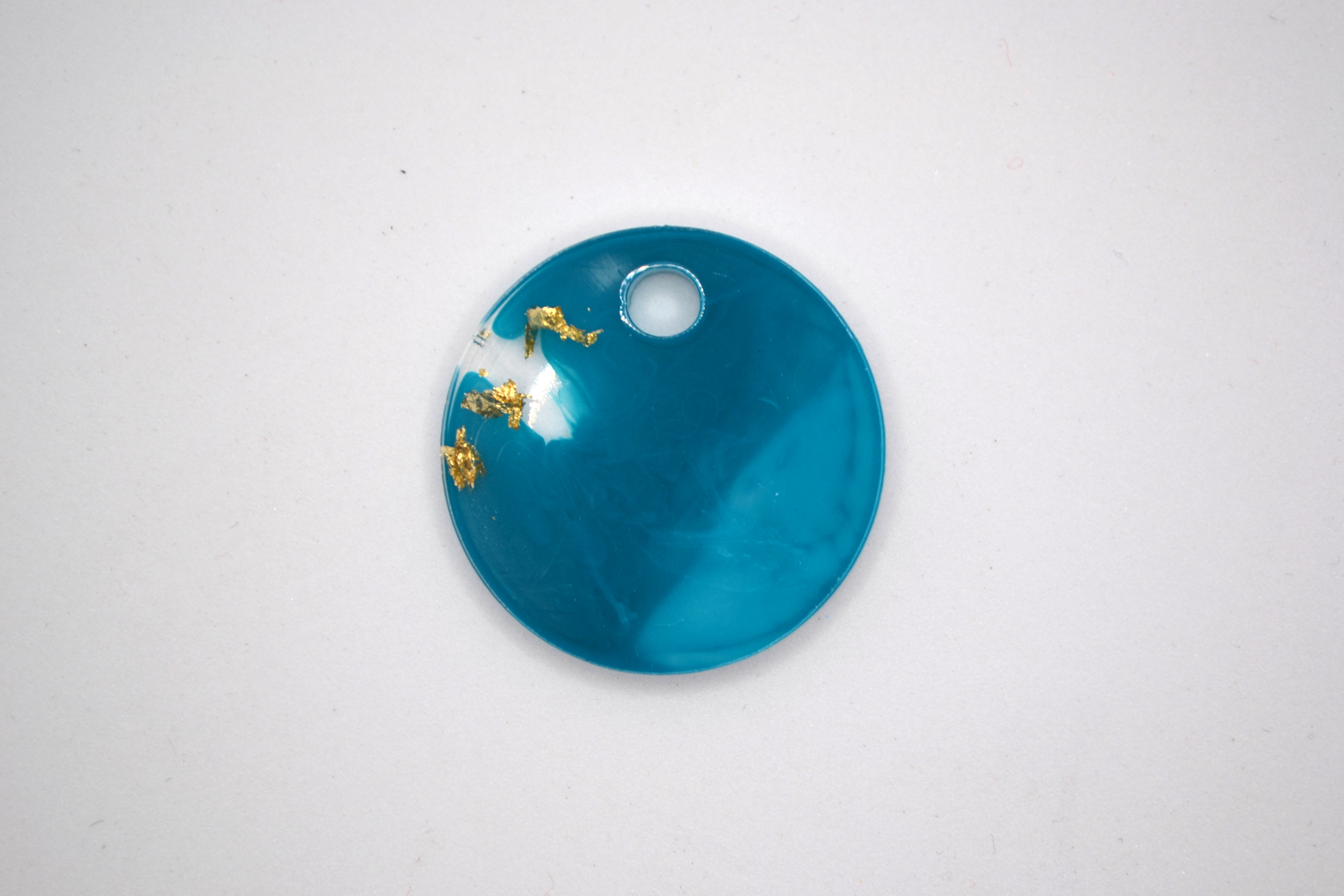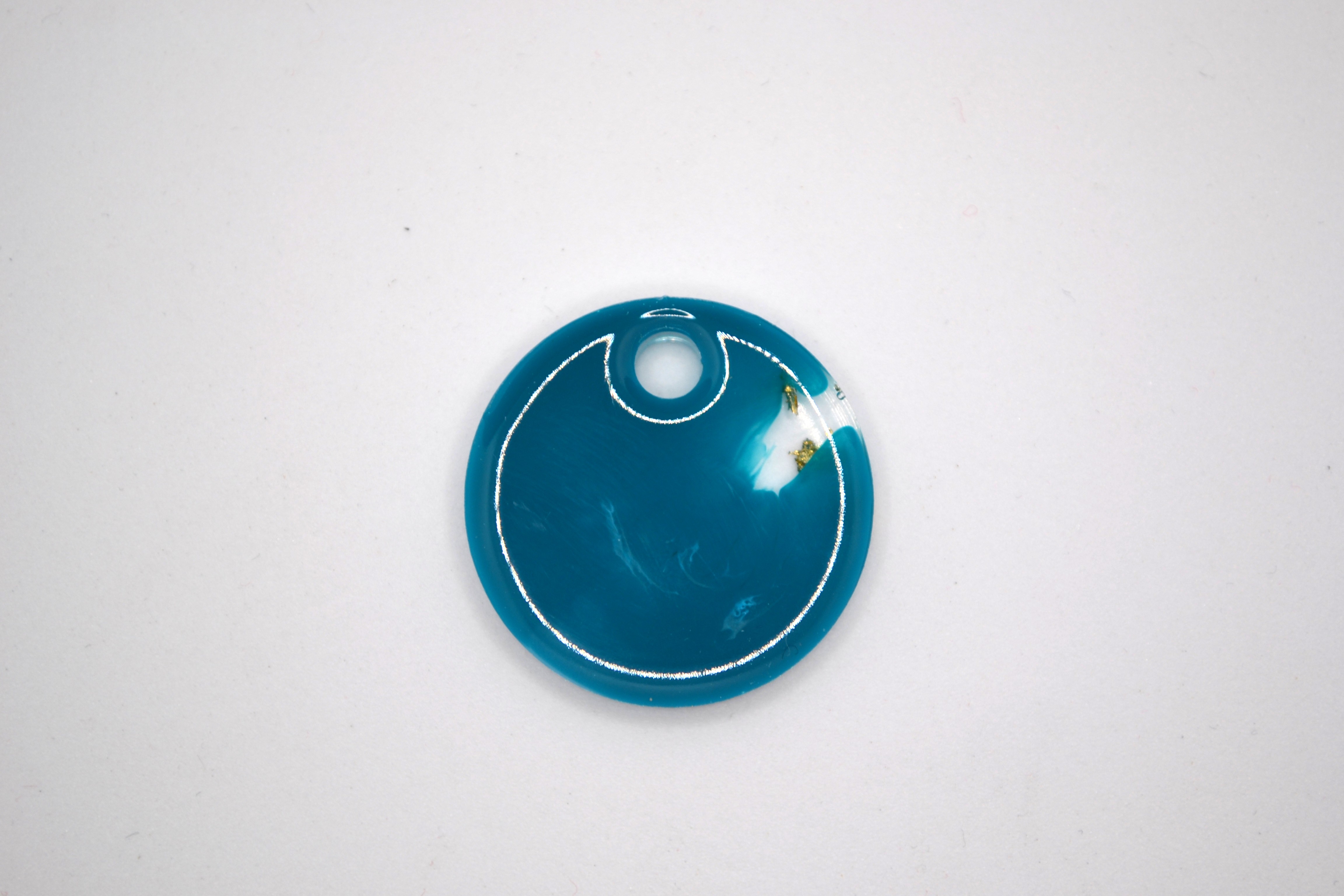 Hundetegn, mellem rund, grønlig blålig med bladguld