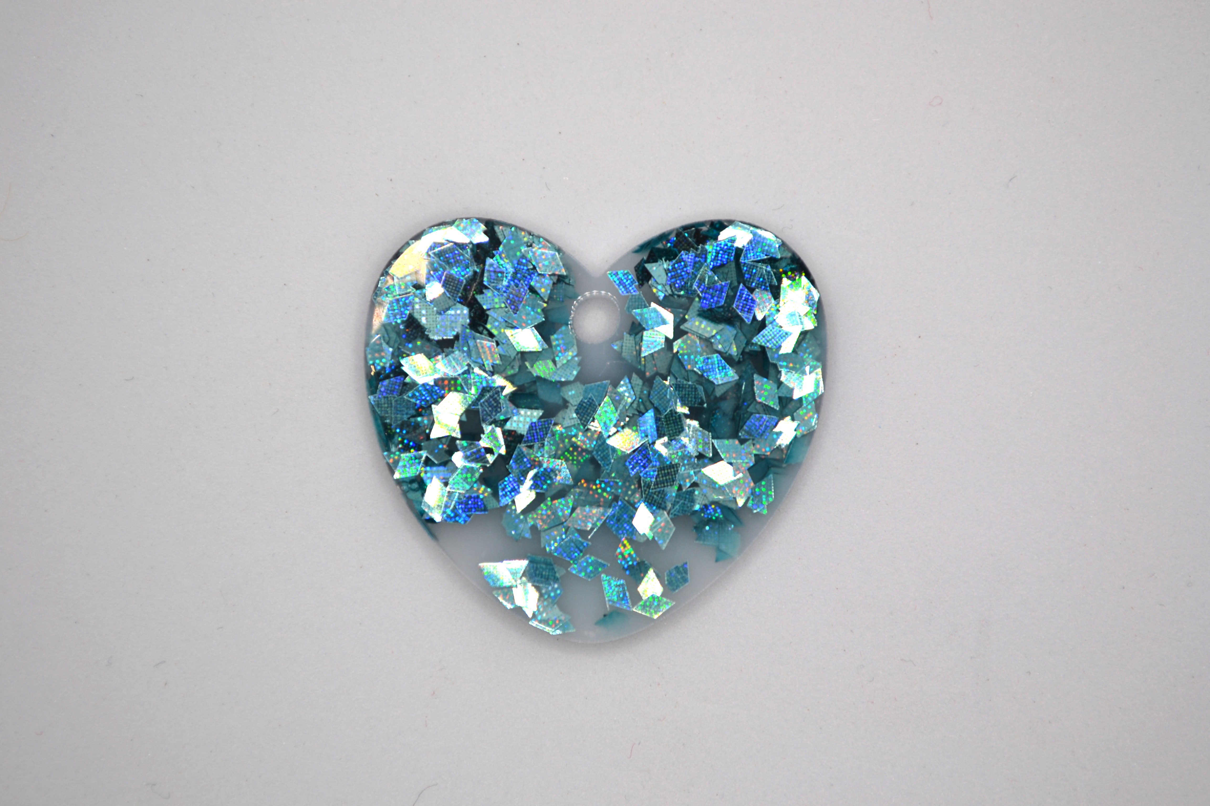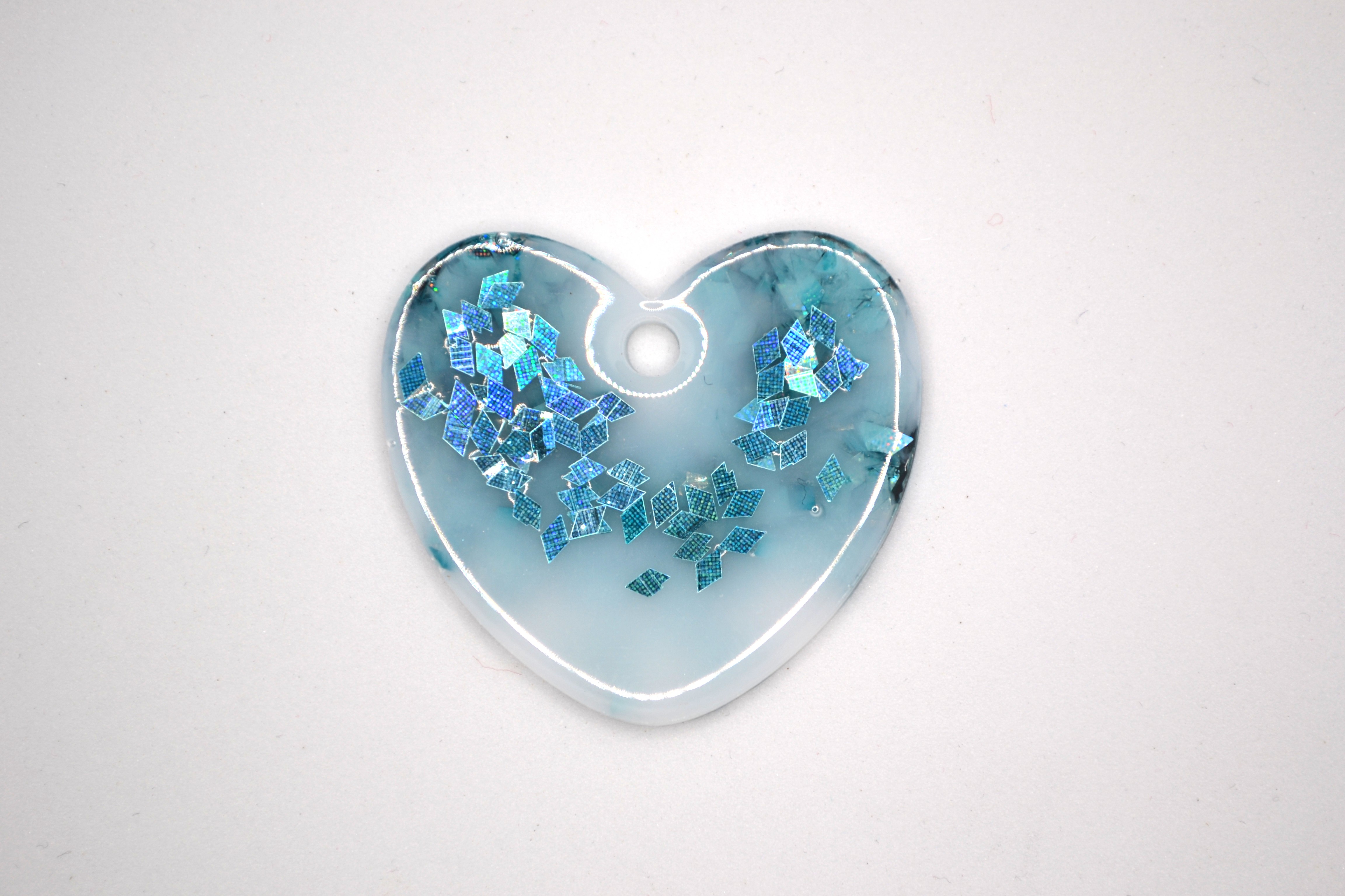Hundetegn, stort hjerte, hvid med grønlige blålige flager