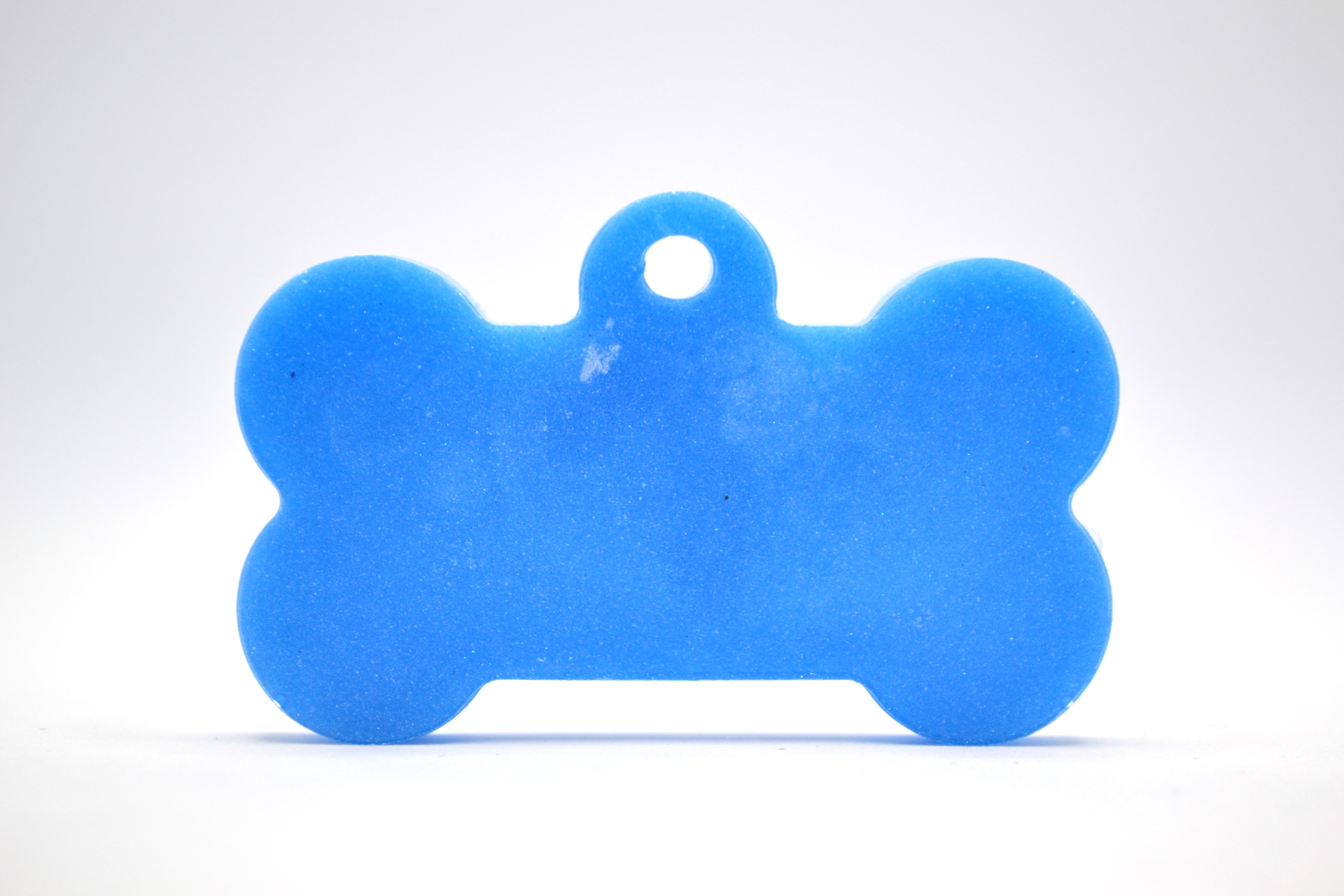 🔹 De fleste vælger at få hundens navn på forsiden – og ejers navn, adresse og telefonnummer på bagsiden.